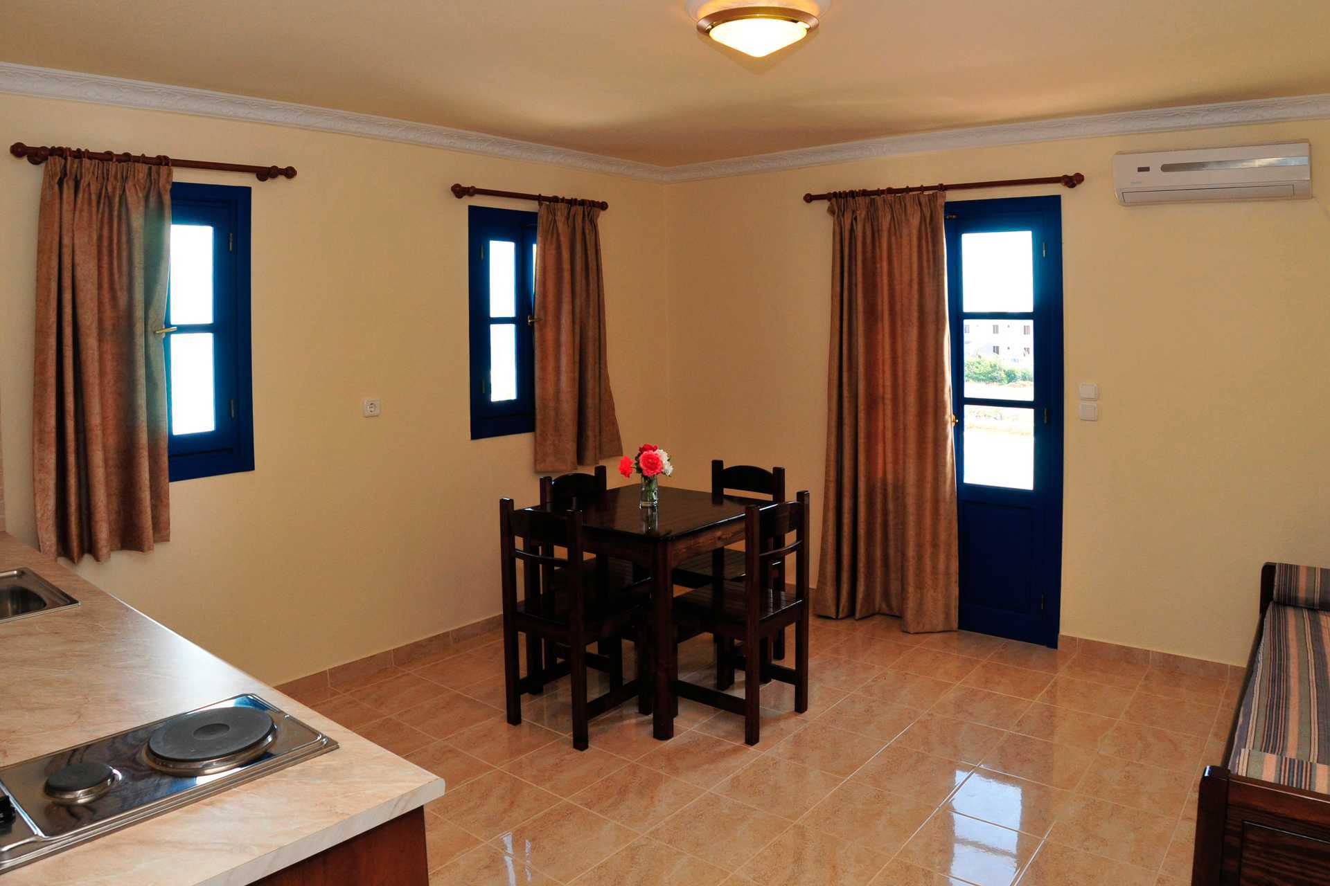 1-værelses lejlighed med balkon eller terrasse. Kombineret soveværelse med minikøkken. En dobbeltseng eller to enkeltsenge. Mulighed for ekstra opredninger i sovesofa. Minikøkken med køleskab, kogeplader og enkelt køkkenudstyr. Kaffemaskine. Gratis wifi. Aircondition og deponering mod betaling. Tv med internationale kanaler. Hårtørrer. Badeværelse med badekar eller bruser samt toilet. Rengøring 6 gange om ugen.