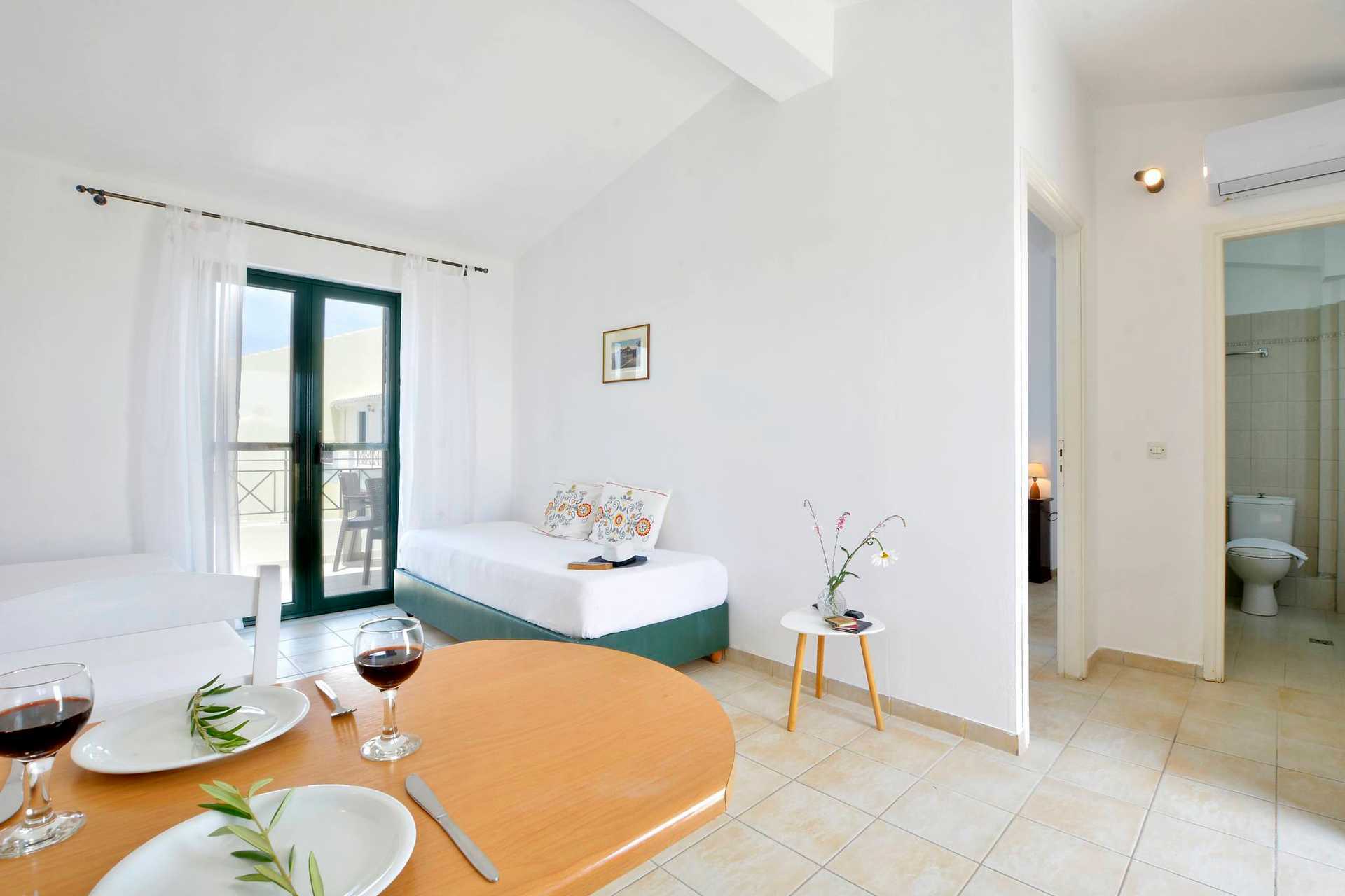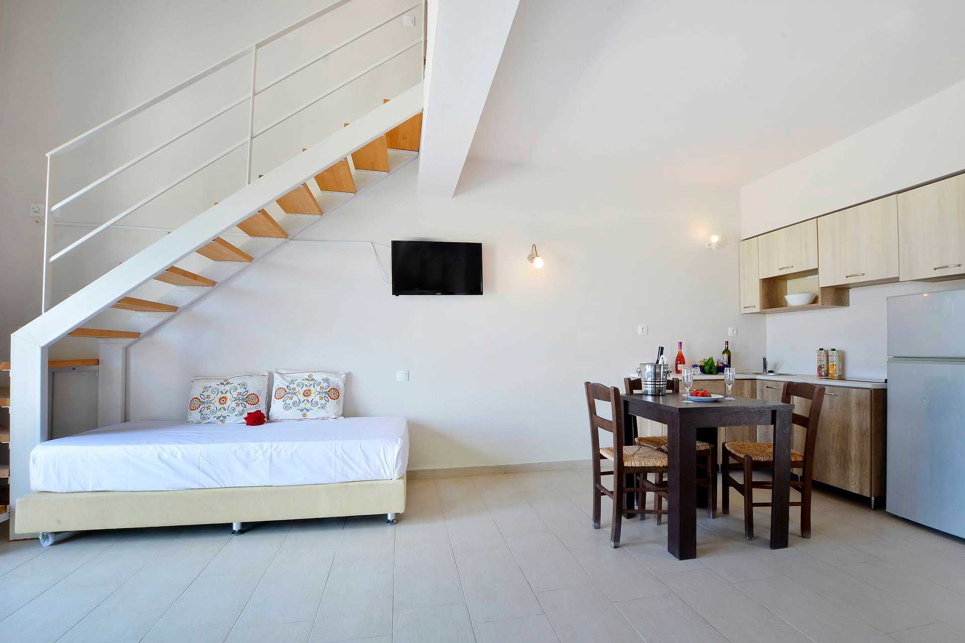 1-værelses lejlighed i etage med balkon. Lejlighederne er beliggende i hoteldelen fra 2015. I entréplan er der kombineret opholdsrum/minikøkken med kogeplader, køleskab, kaffemaskine og enkelt køkkenudstyr. Mulighed for ekstra opredning i enkeltseng eller sovesofa. Ovenpå er der en dobbeltseng. Gratis wifi. Aircondition og deponering mod betaling. Tv med internationale kanaler. Hårtørrer. Badeværelse med badekar eller bruser samt toilet. Rengøring 6 gange om ugen.