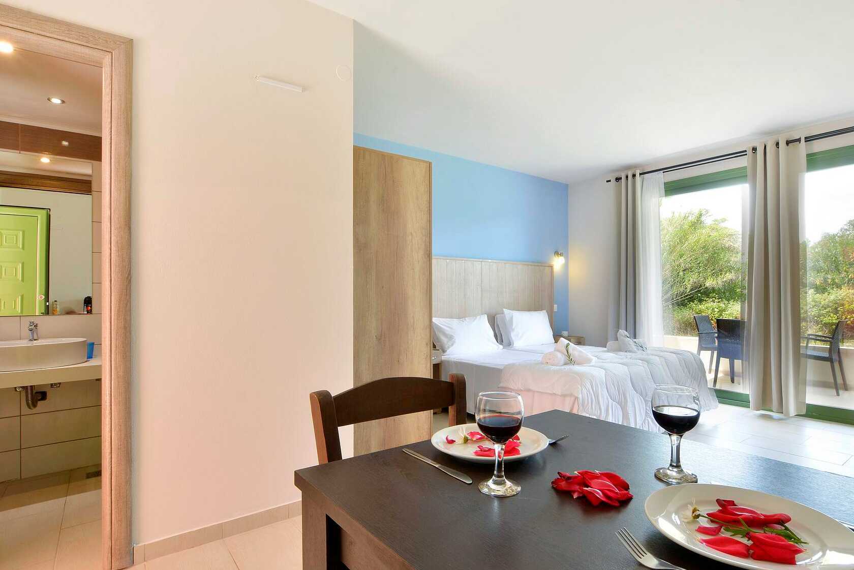 1-værelses lejligheder med terrasse. Kombineret soveværelse og minikøkken. To enkeltsenge. Mulighed for ekstra opredning i sovesofa. Minikøkken med kogeplader, køleskab, kaffemaskine og enkelt køkkenudstyr. Gratis wifi. Aircondition og deponering mod betaling. Tv med internationale kanaler. Hårtørrer. Badeværelse med badekar eller bruser samt toilet. Rengøring 6 gange om ugen.