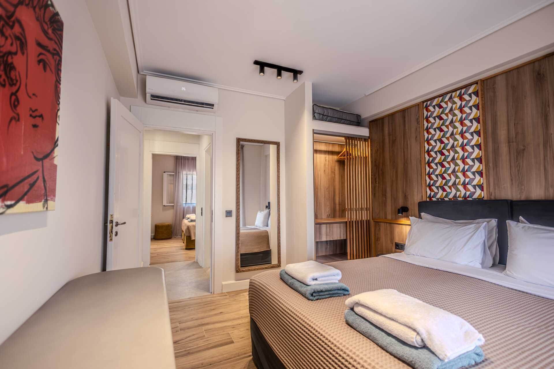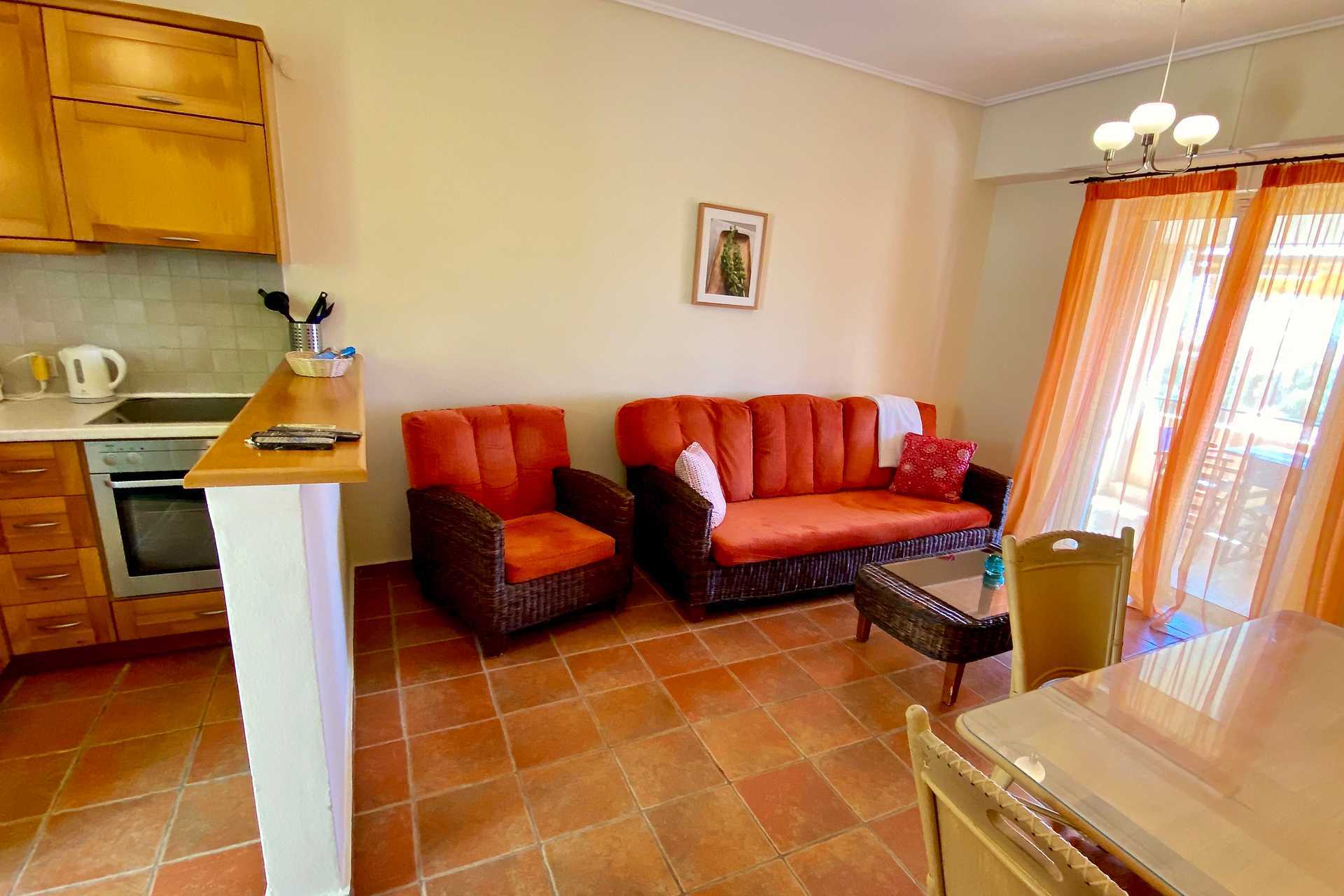 3-værelses lejlighed superior med balkon eller terrasse. Lejlighederne er beliggende nær stranden. Lejlighederne blev renoveret til sommeren 2023. To soveværelser, et med dobbeltseng og et med to enkeltsenge, samt kombineret opholdsrum og minikøkken. Mulighed for ekstra opredning i sovesofa. Gratis wifi, aircondition og deponering. Minikøkken med kogeplader, mikroovn, køleskab, kaffemaskine, el-kedel, brødrister og enkelt køkkenudstyr. Opvaskemaskine Vaskemaskine. Tv med lokale kanaler. Hårtørrer. Badeværelse med bruser og toilet. Rengøring 2 gange om ugen.