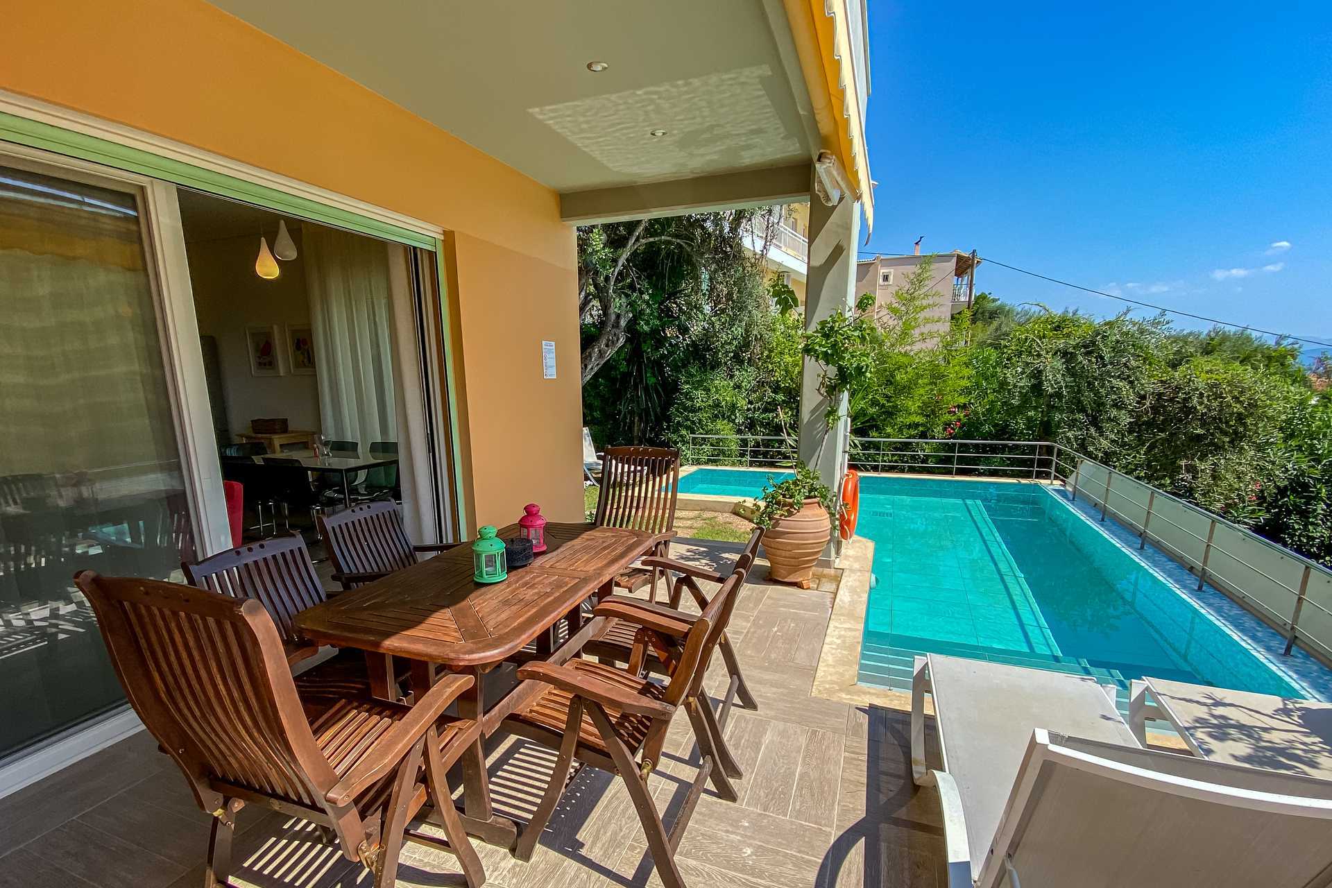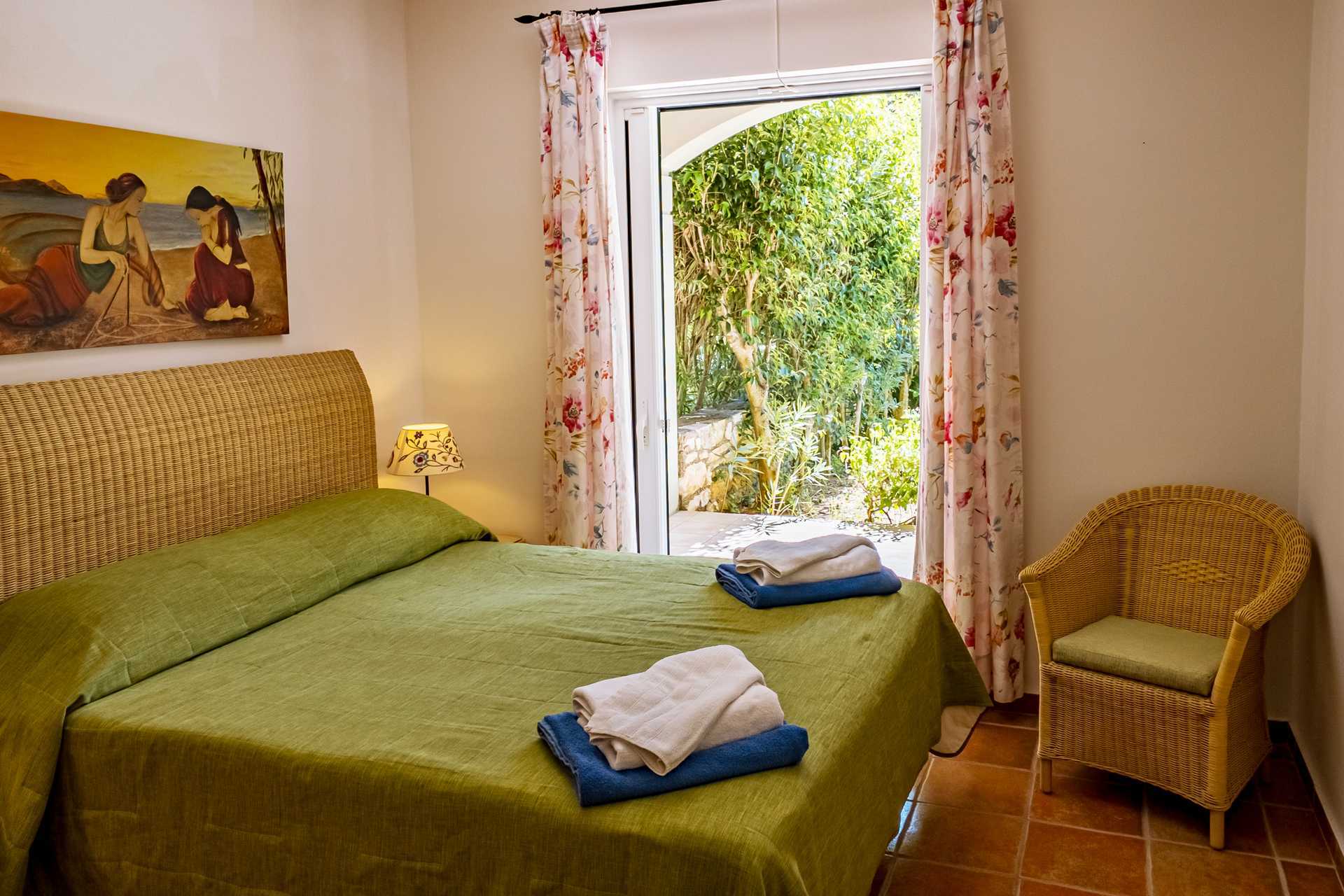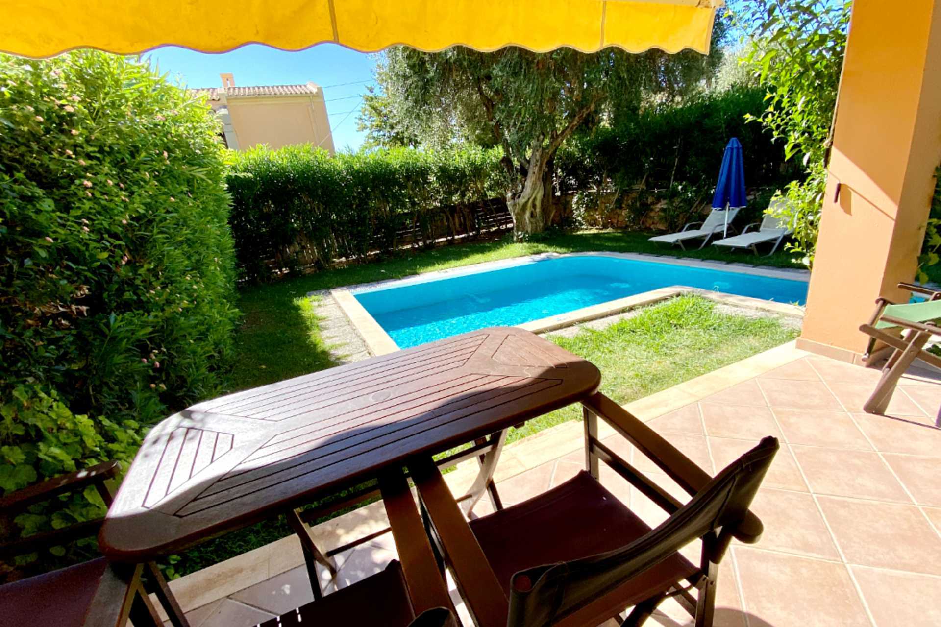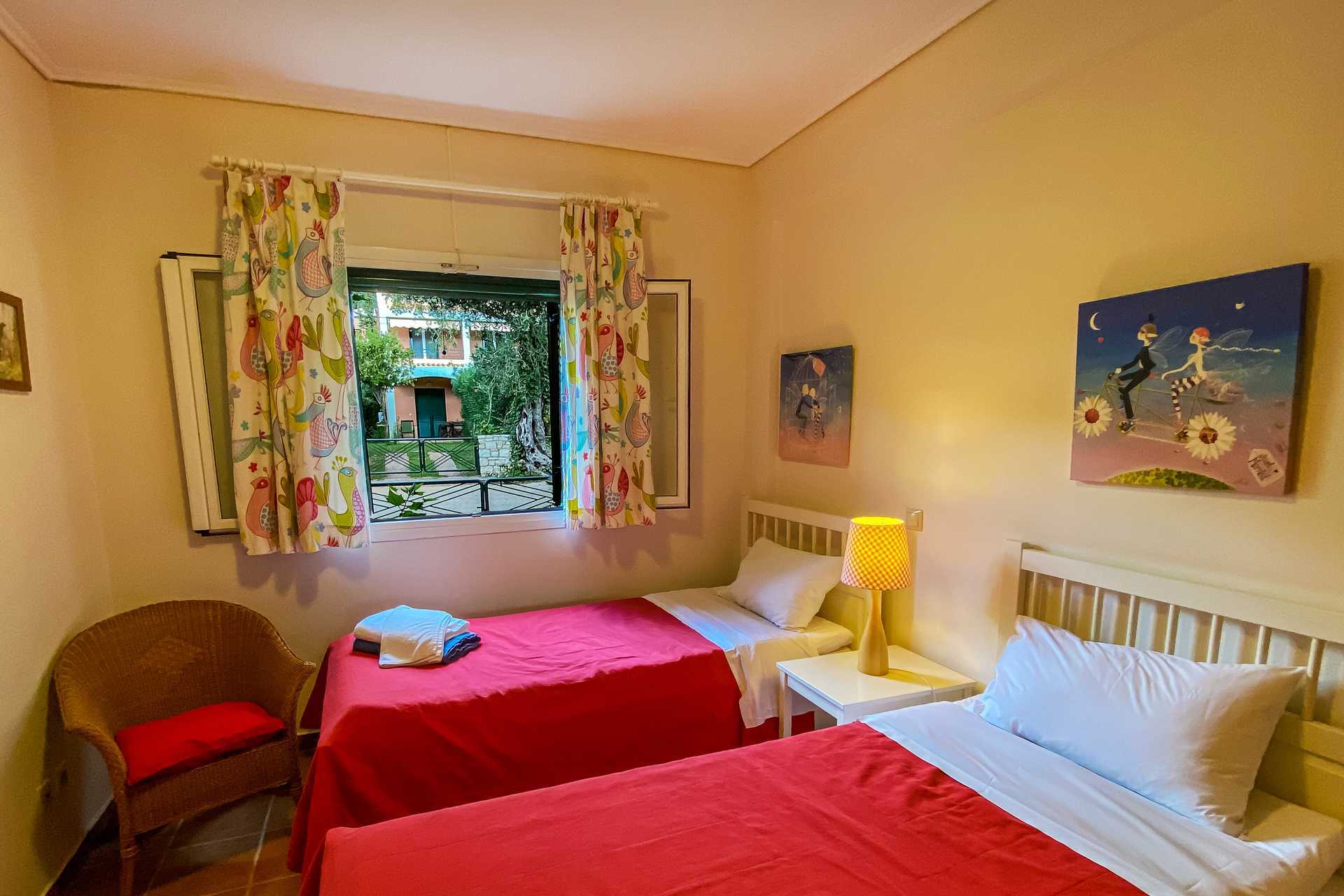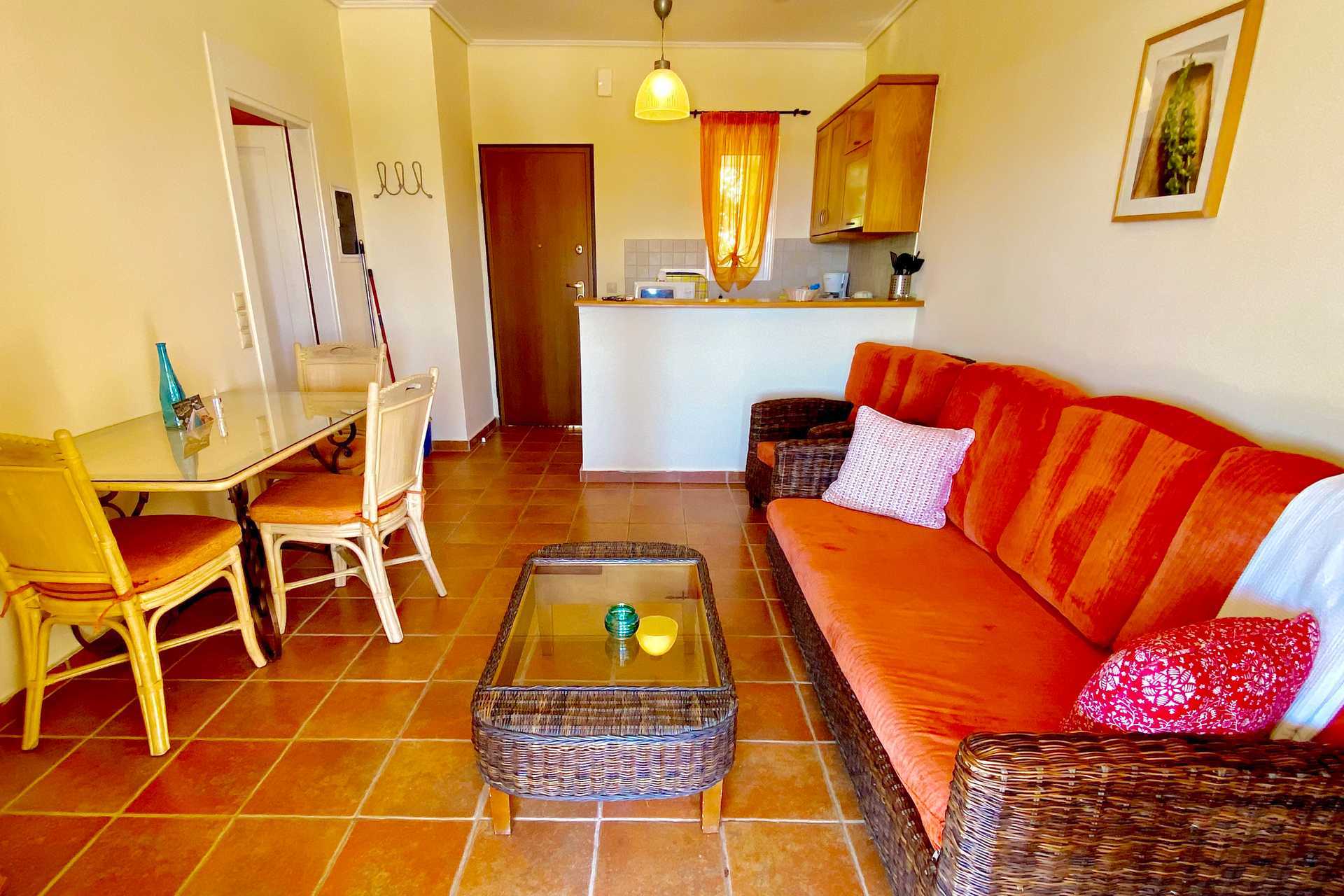3-værelses lejlighed i etage med terrasse og privat pool. På terrassen er der et bord og stole samt to solstole. Ovenpå er der to soveværelser, et med en dobbeltseng og et med to enkeltsenge. Der er også et badeværelse med bruser og toilet samt en balkon. I entréplan er der et kombineret minikøkken med opholdsrum og med mulighed for ekstra opredning på en sovesofa, samt et badeværelse med hårtørrer, bruser og toilet. Minikøkken med kogeplader, køleskab, kaffemaskine, el-kedel, brødrister og enkelt køkkenudstyr. Gratis wifi, aircondition og deponering. Vaskemaskine. Tv med lokale kanaler. Hårtørrer. Rengøring 2 gange om ugen.