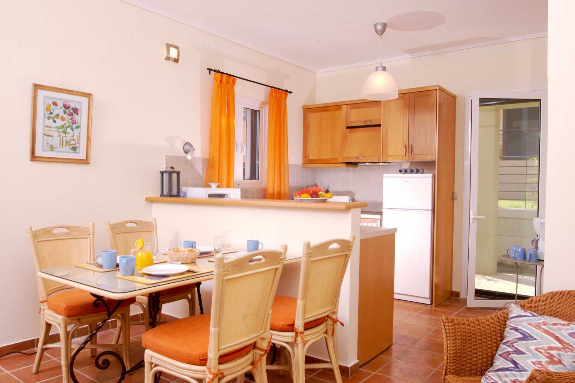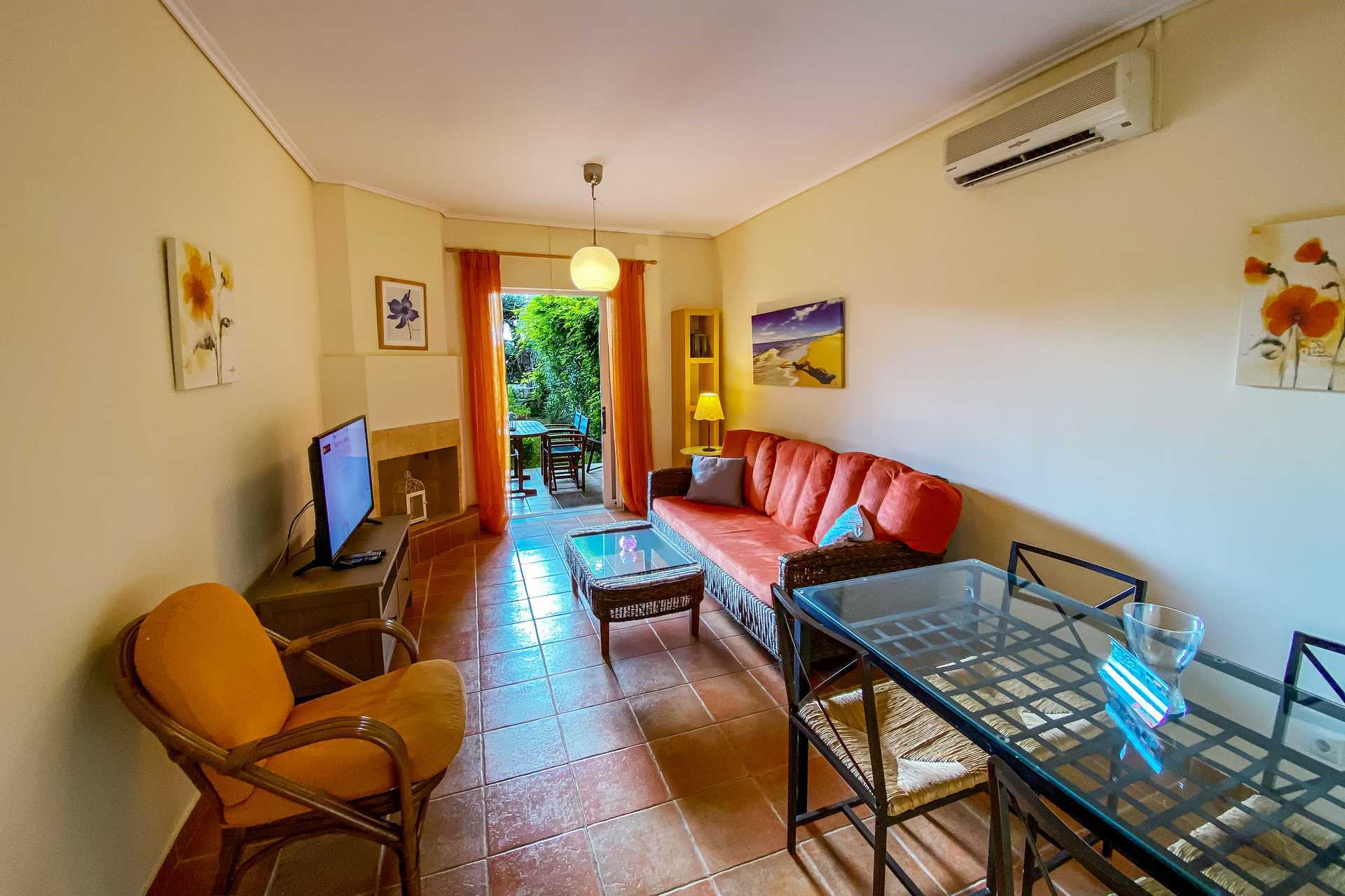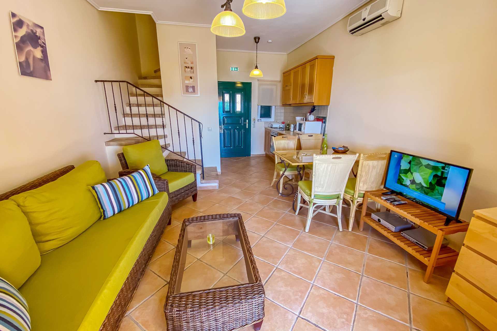 2-værelses lejligheder i etage med balkon eller terrasse. I stueetagen er der et kombineret opholdsrum med et minikøkken og et separat toilet og mulighed for ekstra opredning i en sovesofa. Ovenpå er der et soveværelse med en dobbeltseng, en balkon og et badeværelse med hårtørrer, bruser og toilet. Minikøkken med kogeplader og ovn, mikrobølgeovn, køleskab, kaffemaskine, el-kedel, brødrister og enkelt køkkenudstyr. Gratis wifi, aircondition og deponering. Tv med lokale kanaler. Vaskemaskine. Tv med lokale kanaler. Rengøring 2 gange om ugen.