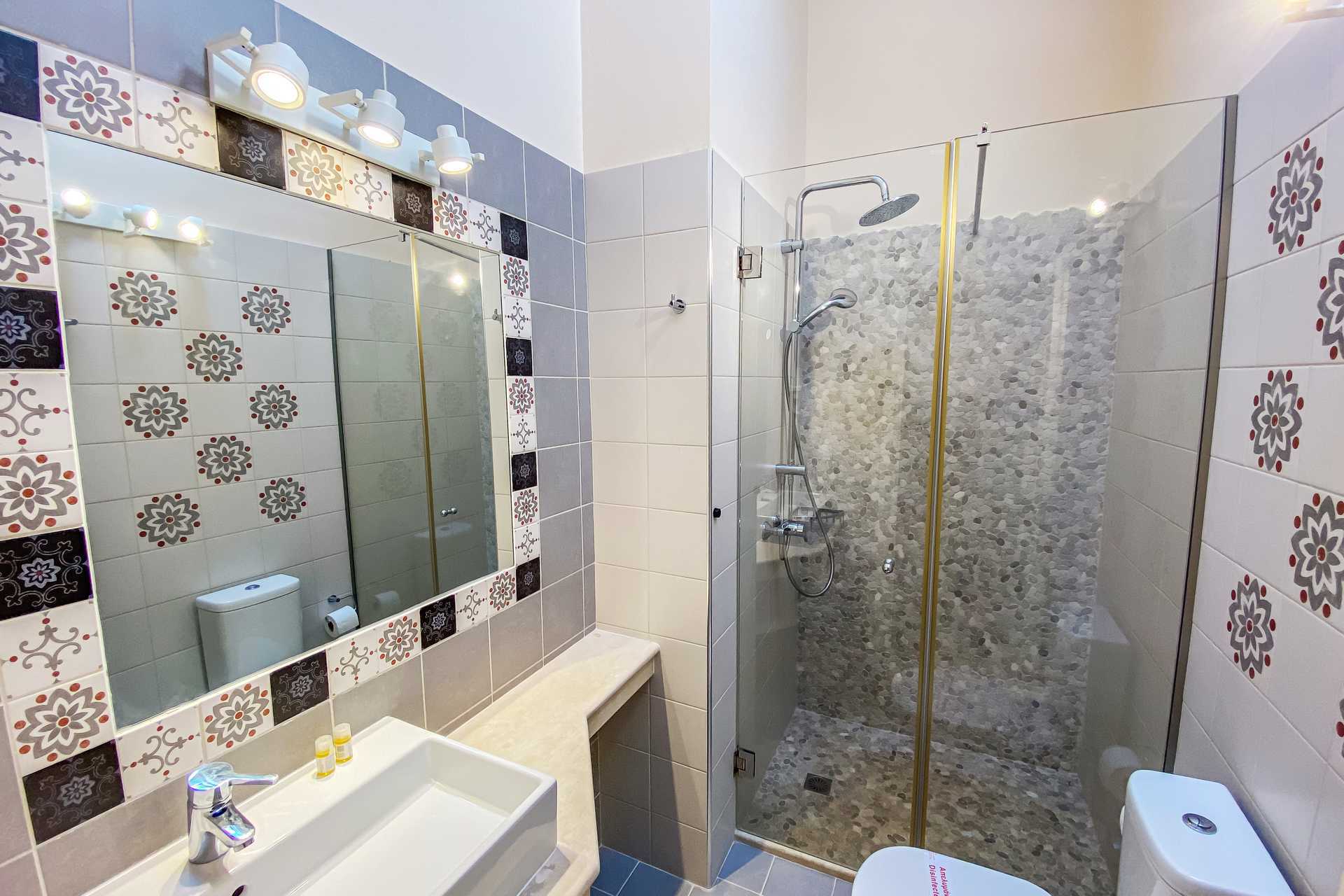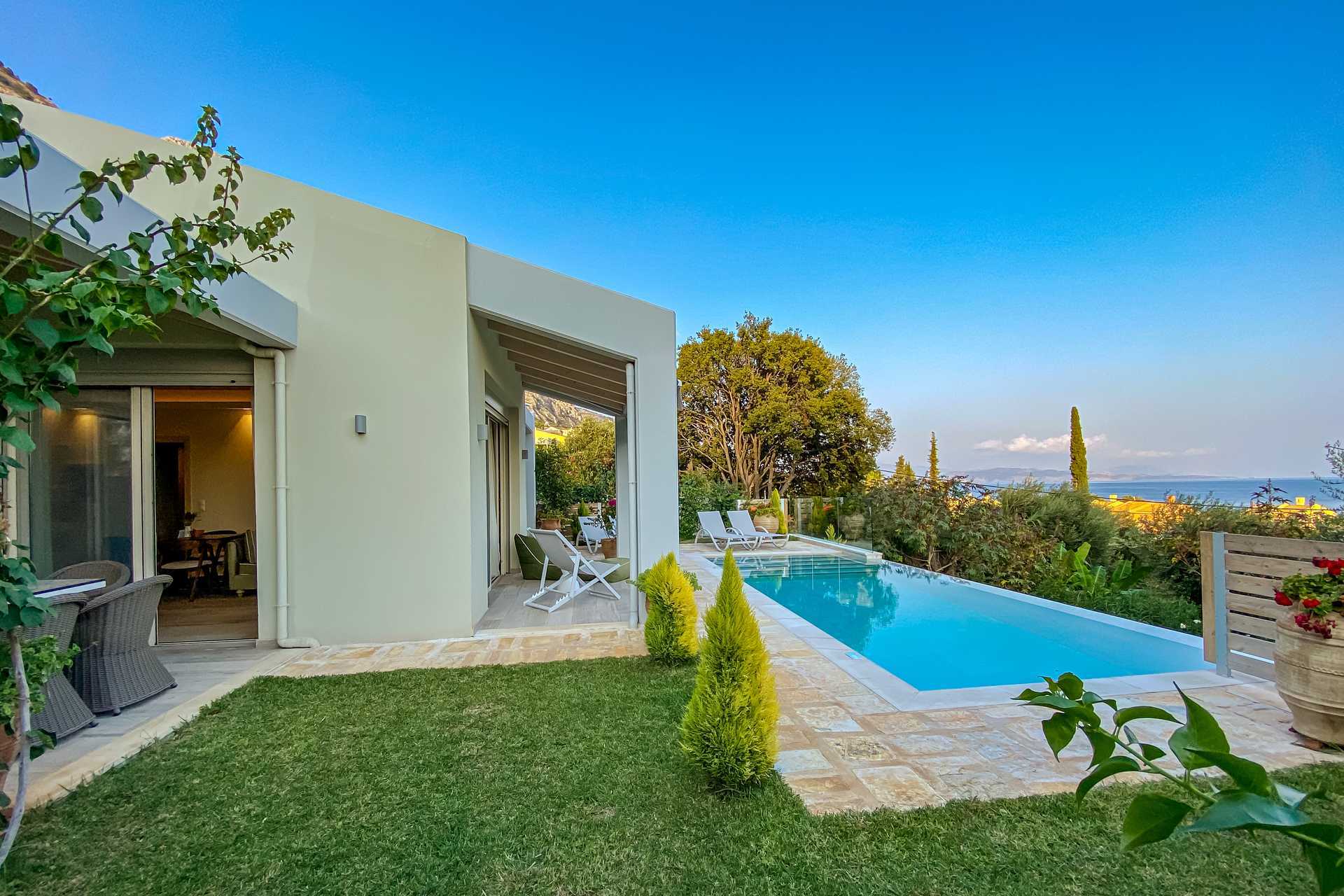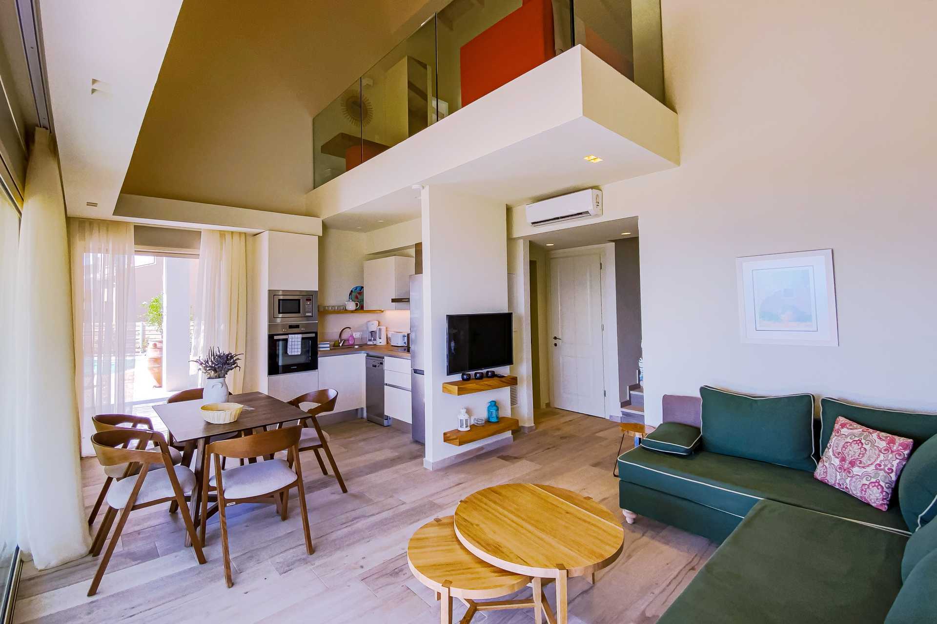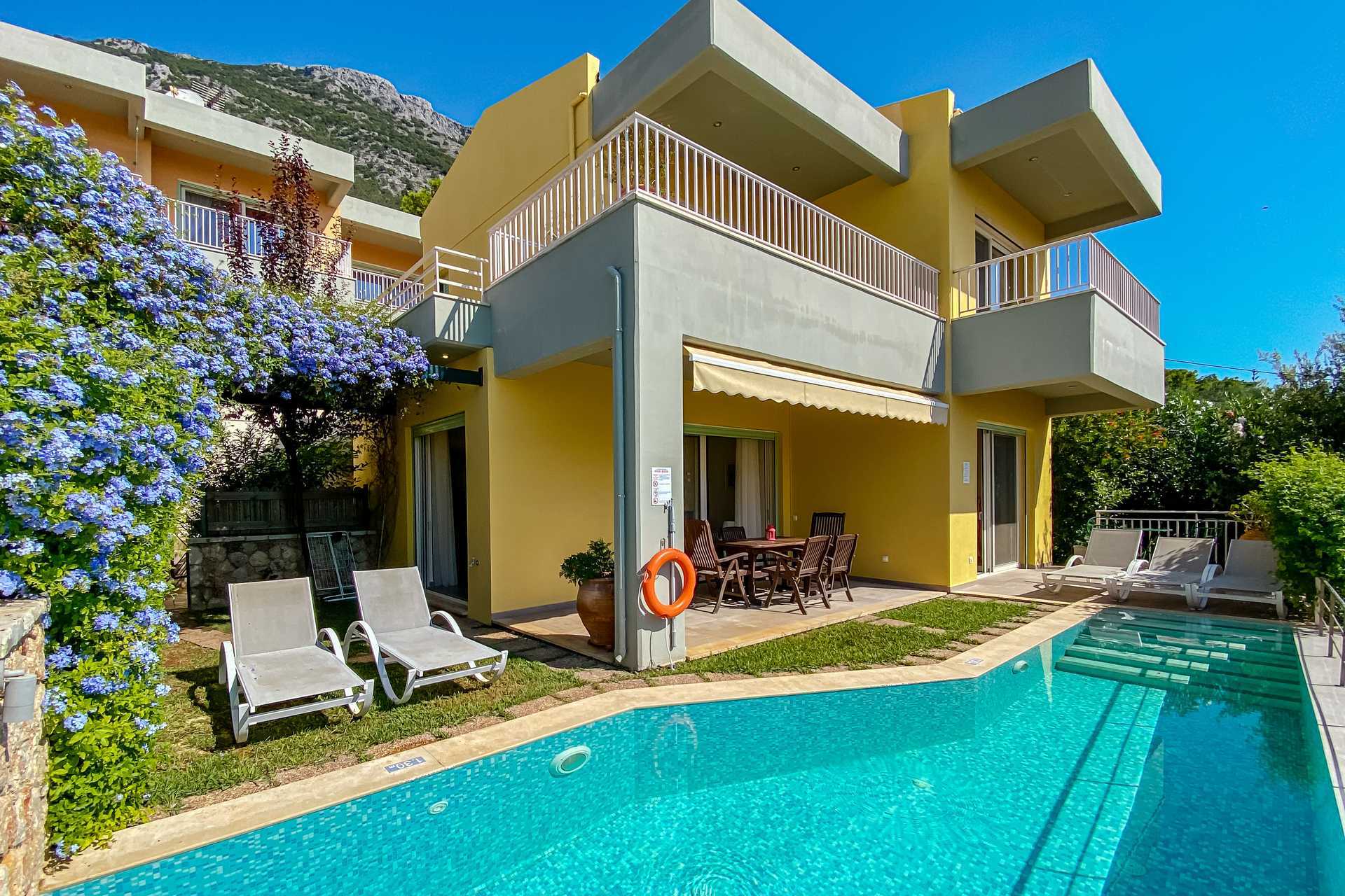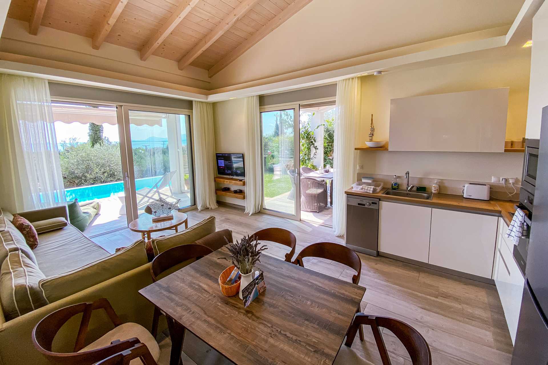 3-værelses villaer med udeplads og privat pool. På udepladsen er der borde og stole samt solstole. På stueplan er der kombineret opholdsrum med minikøkken og mulighed for ekstra opredning i sovesofa samt soveværelse med dobbeltseng og badeværelse med bruser og toilet. Ovenpå er der soveværelse med to enkeltsenge og badeværelse med bruser og toilet. Minikøkken med kogeplader og ovn, mikroovn, køleskab, kaffemaskine, el-kedel, brødrister og enkelt køkkenudstyr samt opvaskemaskine. Gratis wifi, aircondition og deponering. Vaskemaskine. Tv med lokale kanaler. Hårtørrer. Rengøring 2 gange om ugen.