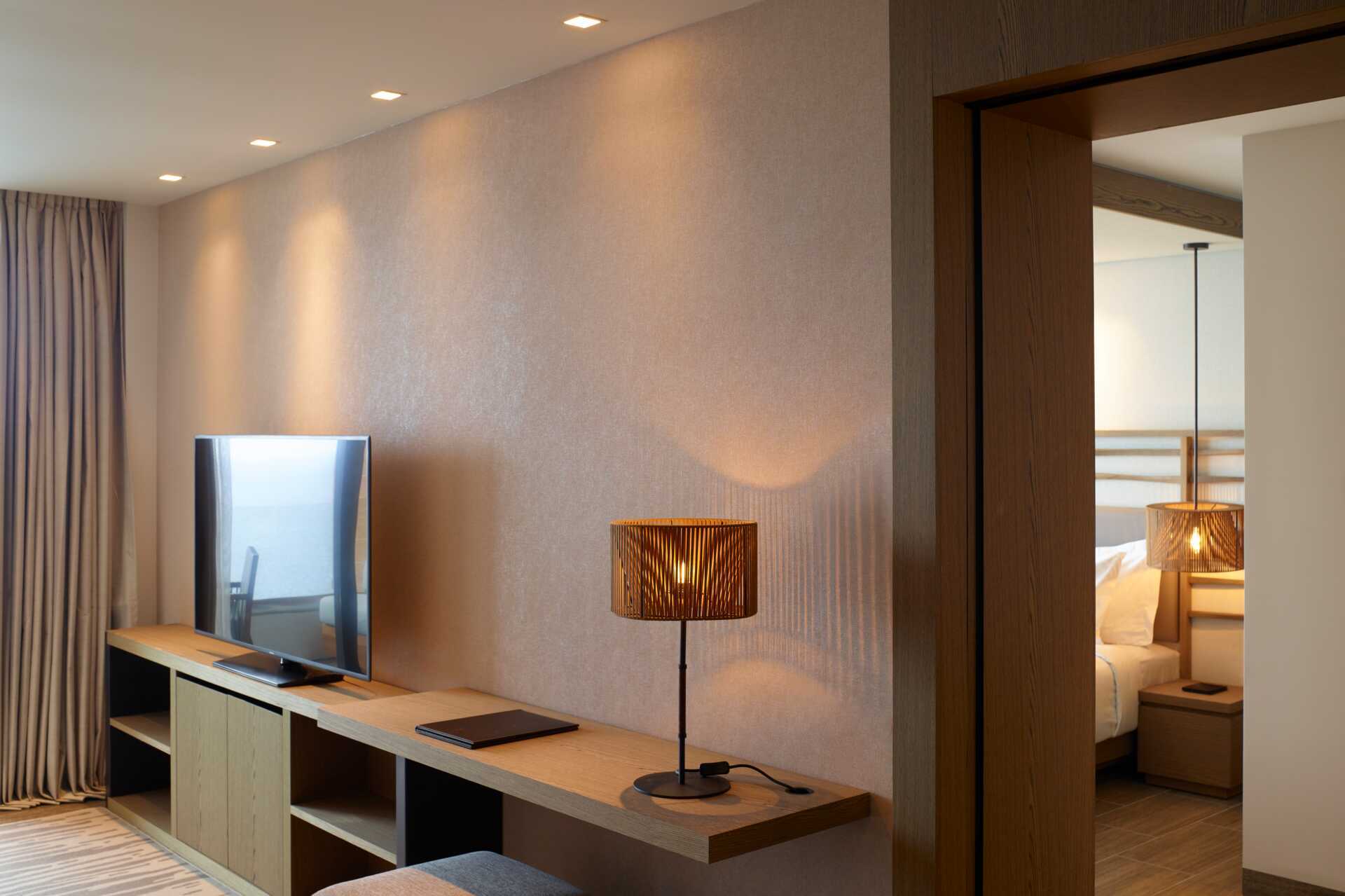 Familie-værelser med balkon og havudsigt. Et soveværelse og opholdsrum. Værelserne er adskilt af en skydedør. En dobbeltseng. Mulighed for ekstra opredning i sovesofa. Gratis wifi, aircondition og deponering. Minibar. Nespresso kaffemaskine - vand og 6 kapsler om dagen inkluderet. Tv med internationale kanaler. Badekåber og tøfler. Badeværelsesartikler. Åben planløsning til badekar og vask. Hårtørrer. Separat bruser og separat toilet. Rengøring 7 gange om ugen. Børn under to år tæller med i det maksimale antal personer på værelset.