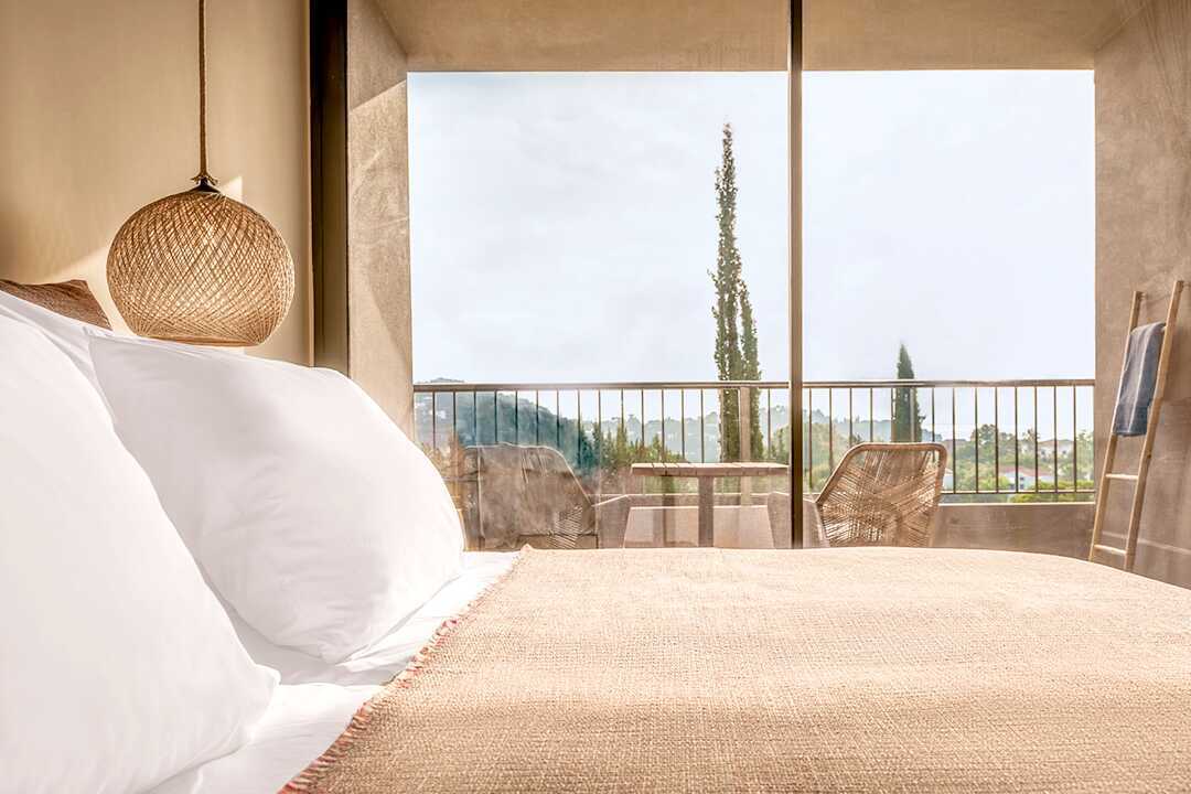 Værelse med balkon eller terrasse og udsigt over Kommeno-bugten. En dobbeltseng eller to enkeltsenge. Mulighed for ekstra opredning i sovesofa. Køleskab, en flaske vand er i køleskabet ved ankomst, genopfyldes hver dag. El-kedel og kaffe/te. Gratis wifi, aircondition og deponering. Tv med internationale kanaler. Badekåber og tøfler. Hårtørrer. Åben planløsning til badeværelse, bruser og toilet i matteret glas. Rengøring 7 gange om ugen.