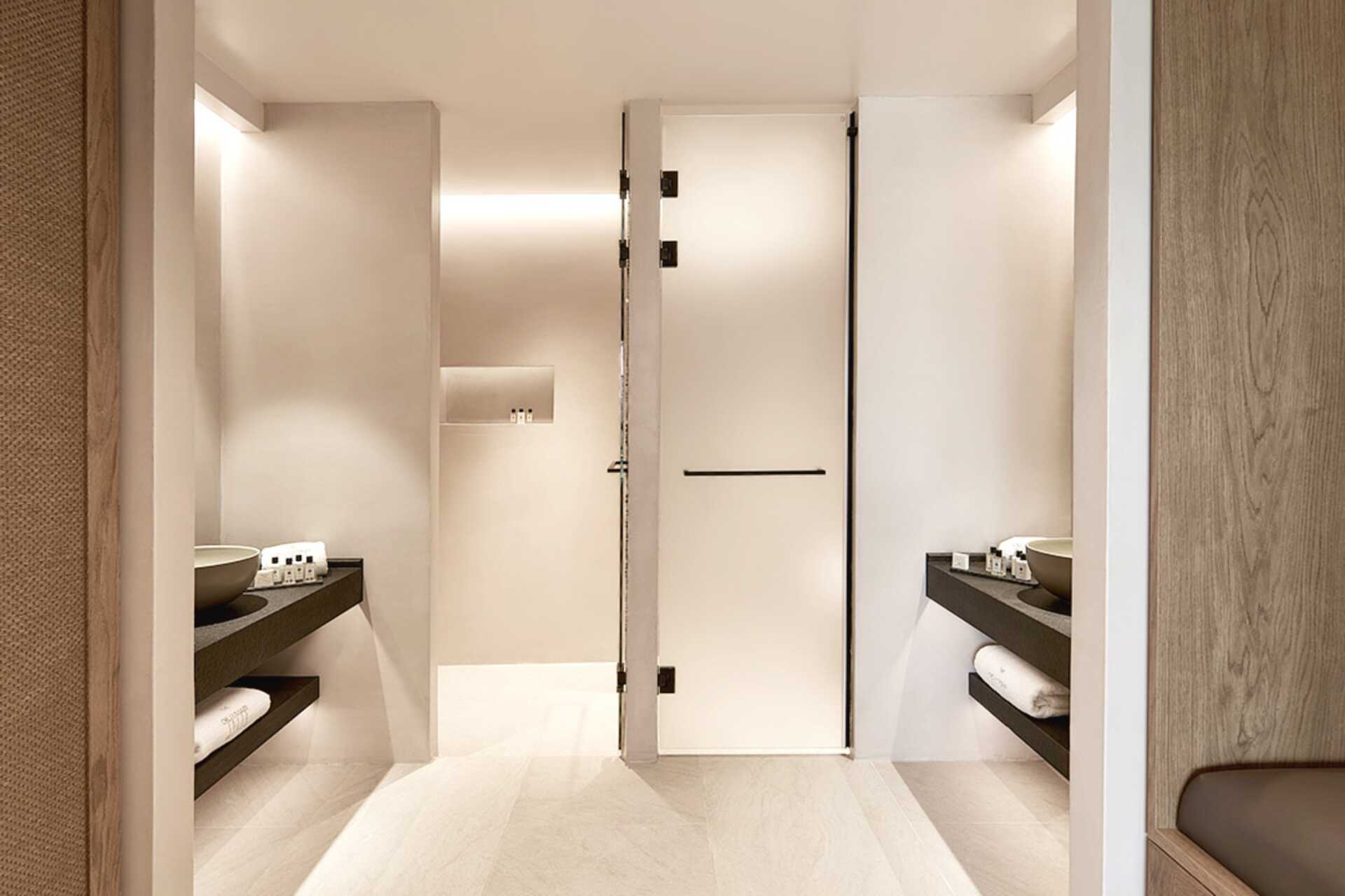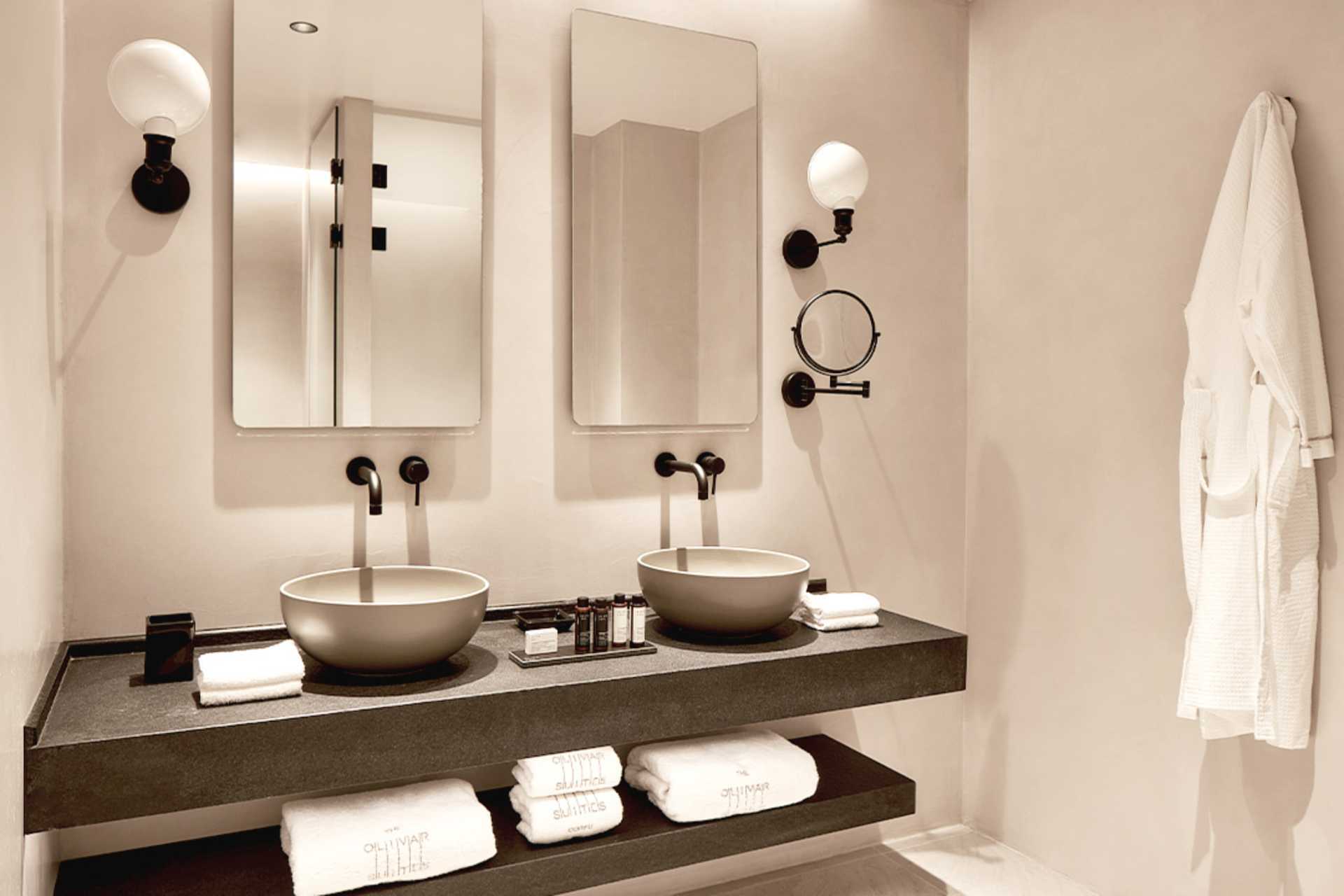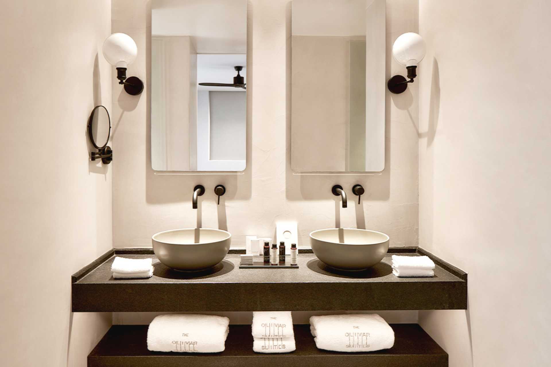 Suite med privat pool Suiten har to terrasser i stueetagen, en lille med privat pool med solstole og et bord og lænestole og en med et bord og lænestole. Suiterne består af to soveværelser, et med en dobbeltseng og et med en dobbeltseng eller to enkeltsenge, samt et fælles badeværelse. Gratis wifi, aircondition og deponering. Køleskab. El-kedel og kaffe/te. Nespresso kaffemaskine. Tv med internationale kanaler. Strygejern og strygebræt. Hårtørrer. Glattejern. Badekåber og tøfler. Badeværelse med bruser og toilet. Rengøring 7 gange om ugen.