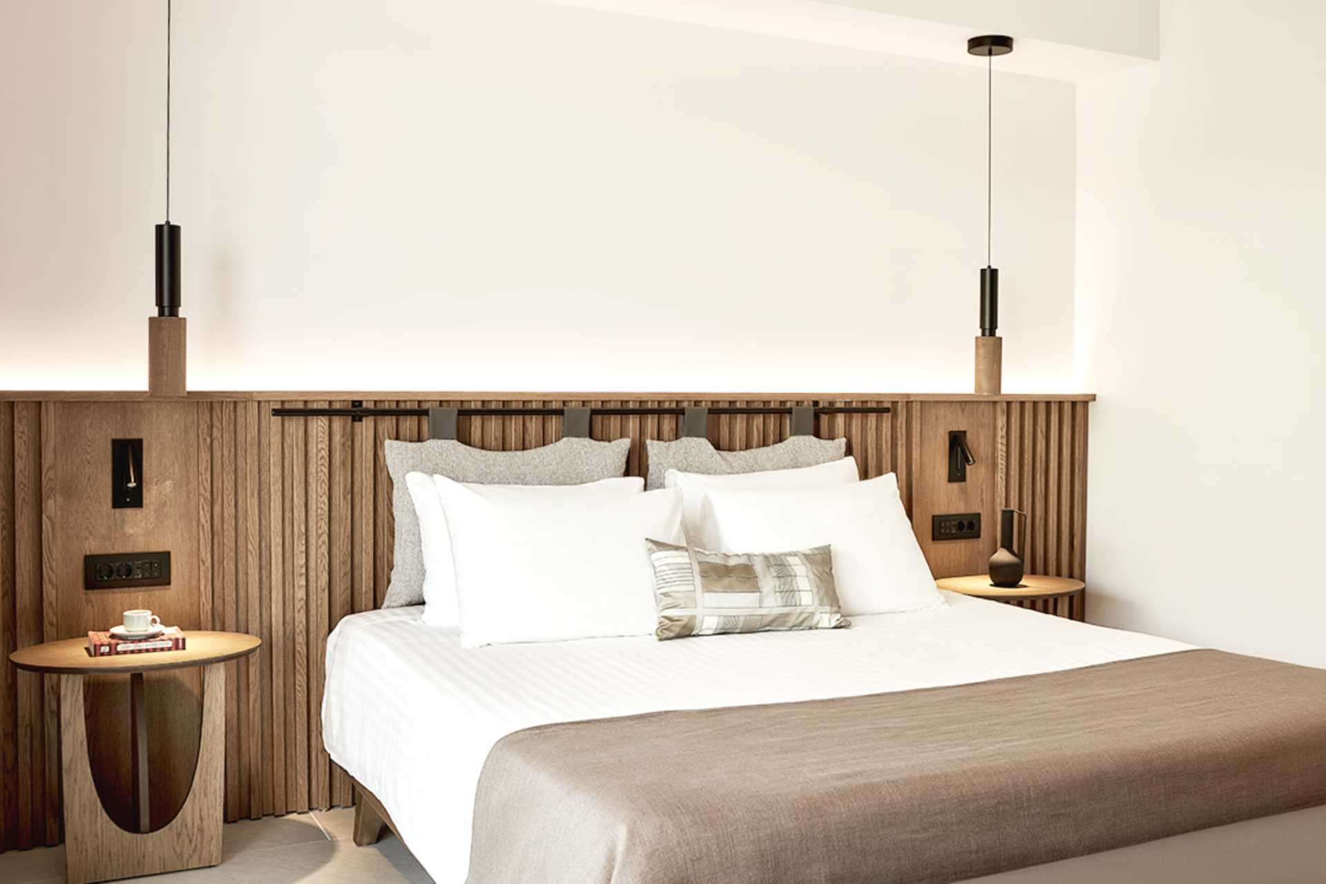 Junior-suite med balkon og udsigt til haven. En dobbeltseng. Gratis wifi, aircondition og deponering. Køleskab. El-kedel og kaffe/te. Nespresso kaffemaskine. Tv med internationale kanaler. Strygejern og strygebræt. Hårtørrer. Glattejern, badekåber og tøfler. Badeværelse med bruser og toilet. Rengøring 7 gange om ugen.