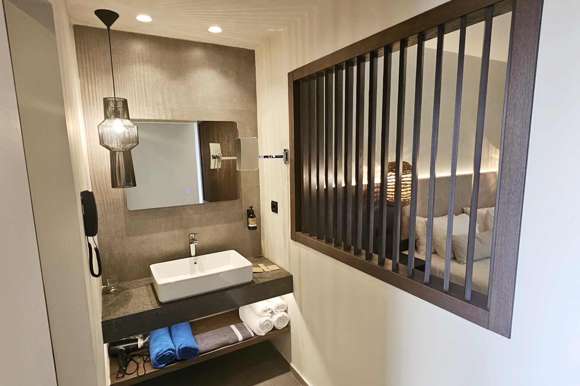 Junior-suite med direkte adgang til Delt pool. Junior-suiterne ligger i bygningen fra 2024. En dobbeltseng eller to enkeltsenge. Mulighed for ekstra opredning i enkeltseng. Gratis wifi, aircondition og deponering. Køleskab. El-kedel og kaffe/te. Espressomaskine, kapsler mod betaling. Tv med internationale kanaler. Hårtørrer. Badeværelse med bruser og toilet. Rengøring 7 gange om ugen. Aldersgrænsen er 16 år for at bo på denne værelsestype.