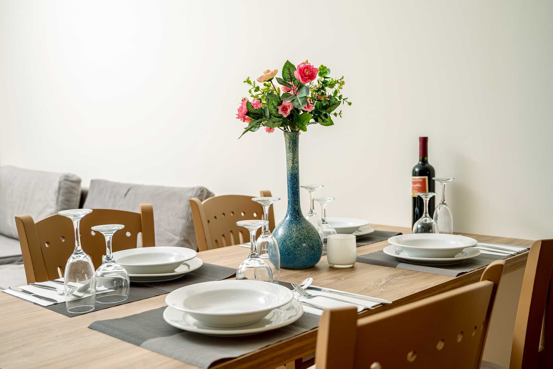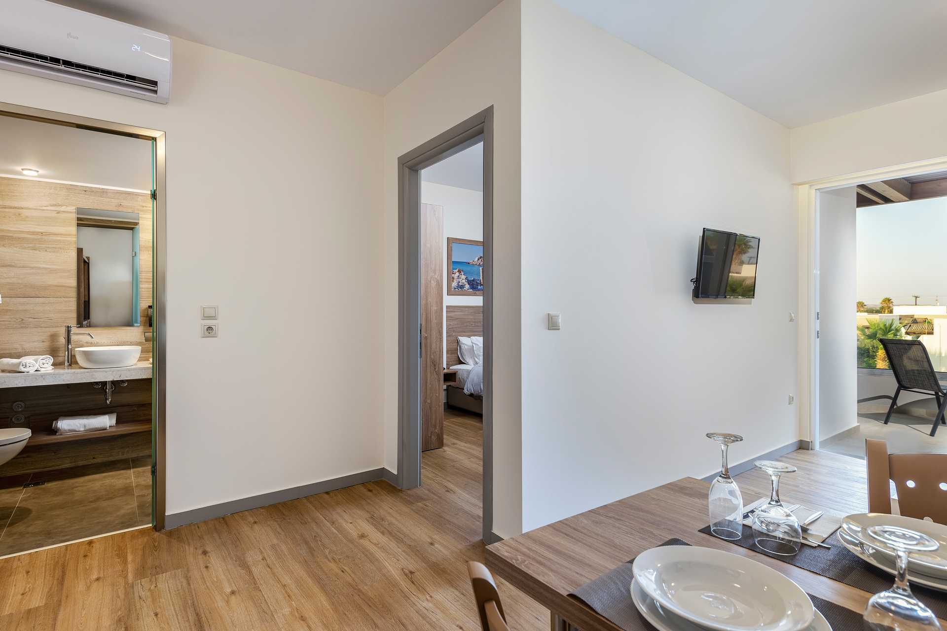 2-værelses lejligheder med balkon eller terrasse, nogle med pooludsigt. Et soveværelse og et kombineret opholdsrum med minikøkken. En dobbeltseng eller to enkeltsenge. Mulighed for ekstra opredninger i to sovesofaer. Minikøkken med køleskab, kogeplader, kaffemaskine, mikrobølgeovn og enkelt køkkenudstyr. Gratis wifi, aircondition og deponering. Hårtørrer. Badeværelse med bruser og toilet. Rengøring 6 gange om ugen.