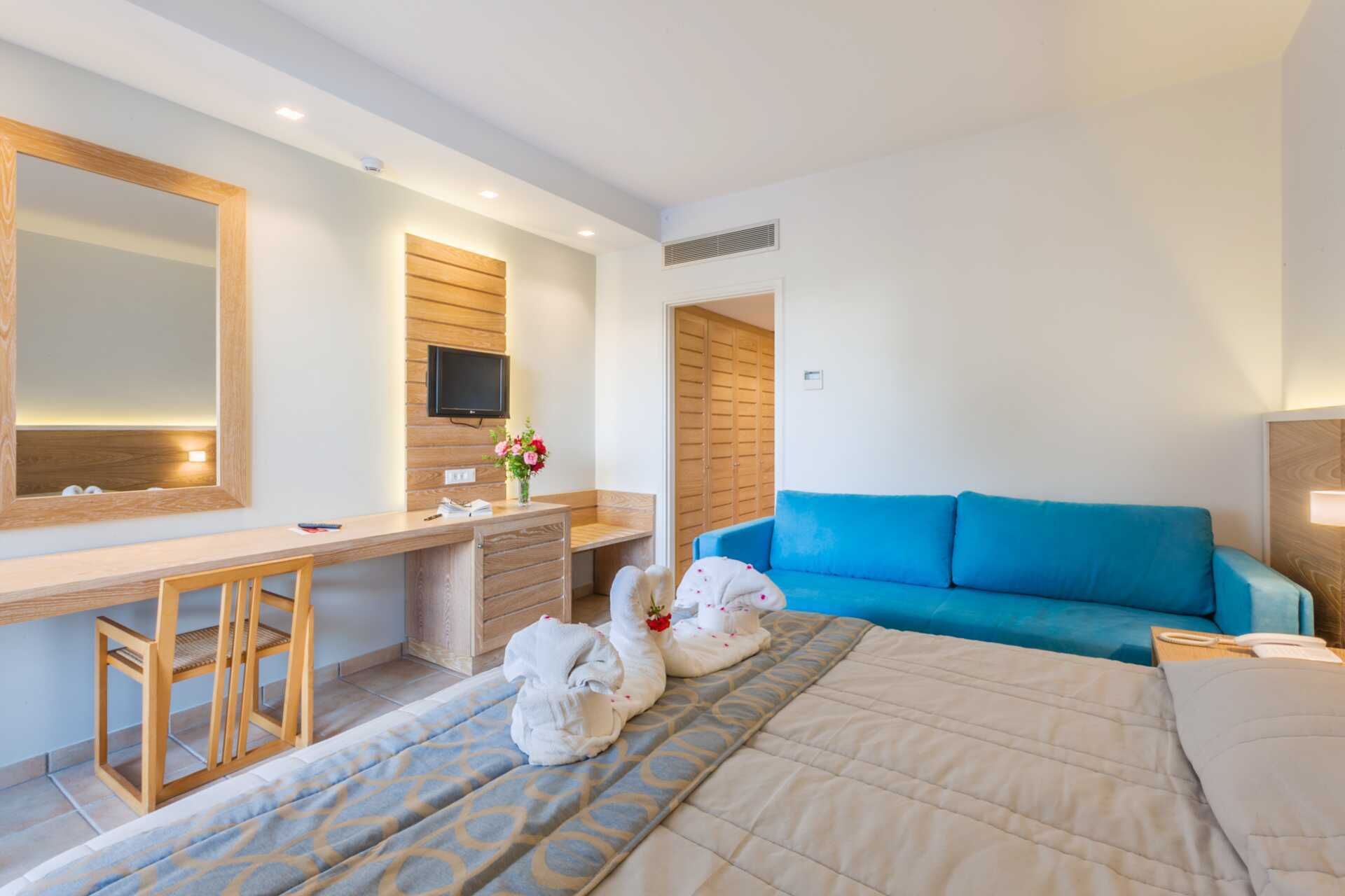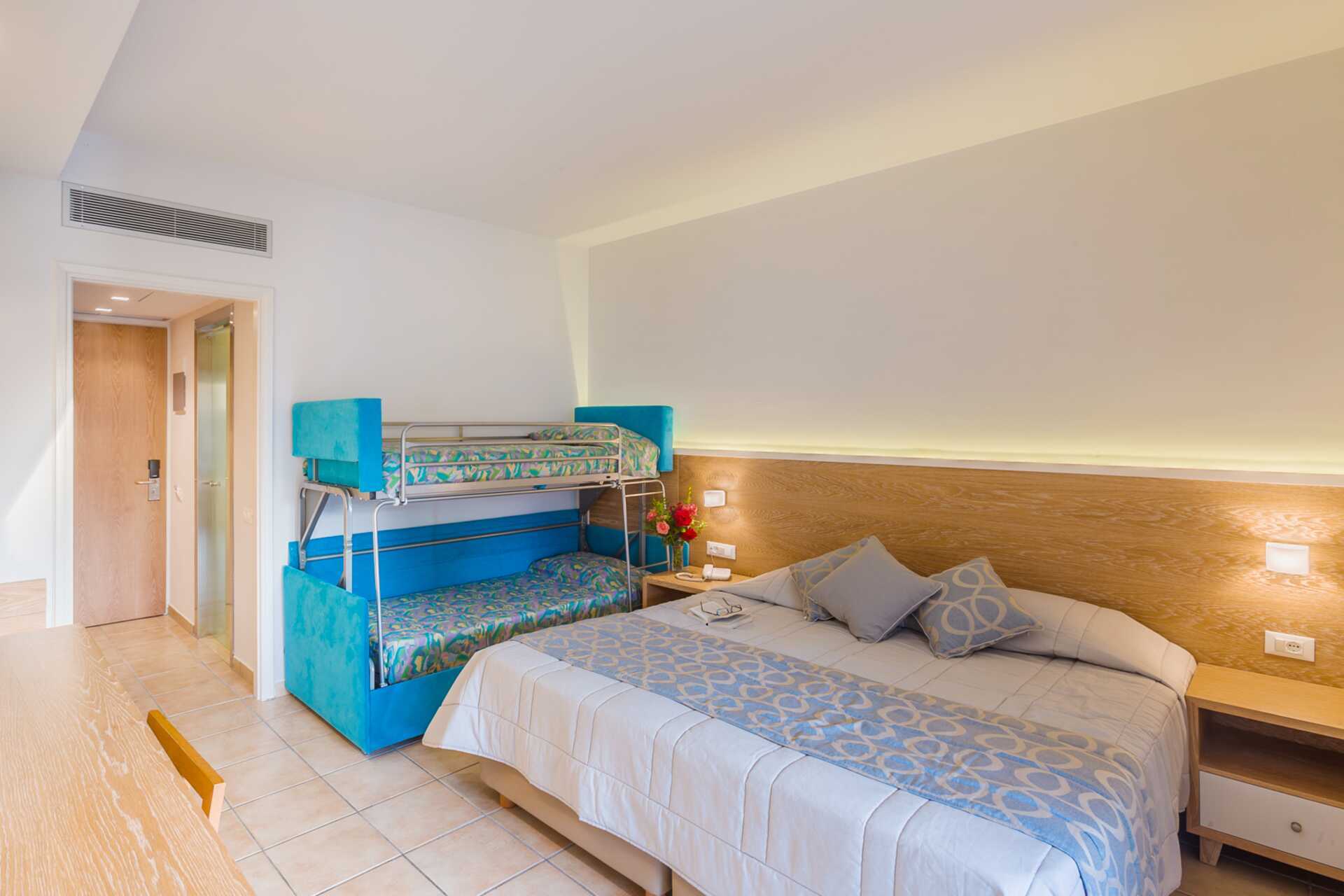 Dobbeltværelser med balkon eller terrasse, nogle med havudsigt. Værelserne er beliggende i hovedbygningen. Dobbeltseng eller to enkeltsenge. Mulighed for ekstra opredning i fold ud-seng eller ordinær seng. I værelser for op til 4 personer er ekstra opredning i køjeseng. Gratis wifi og aircondition. Deponering mod betaling. Køleskab. Tv med internationale kanaler. Hårtørrer. Badeværelse med bruser og toilet. Rengøring 6 gange om ugen.