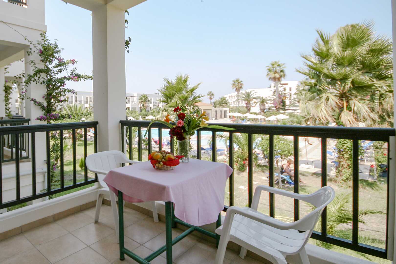 Dobbeltværelser i sidebygning med balkon eller terrasse. To enkeltsenge. Mulighed for ekstra opredning i sovesofa. Gratis wifi og aircondition. Deponering mod betaling. Køleskab. El-kedel og kaffe/te. Tv med internationale kanaler. Hårtørrer. Badeværelse med badekar og toilet. Rengøring 6 gange om ugen.