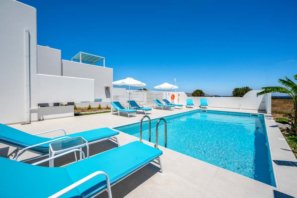 Indenfor er der en atmosfære af elegance og komfort, med en blanding af moderne design og tidløs charme. De rummelige opholdsområder indbyder til afslapning med stil, med moderne møbler og et førsteklasses køkken, der inspirerer til kulinariske lækkerier. Efter en lang dag med udforskning er der fire hyggelige soveværelser, at synke ned i. Hvis du kan rive dig løs, ligger Tigakis fejende hvide sandstrand kun en gåtur væk, oversået med liggestole og naturskønne kyststier. Aftenerne her går i et langsommere tempo, med en række familiedrevne græske tavernaer og barer med livemusik. For lidt liv og røre ligger Kos by tyve minutter væk, med sin havn, der sprængfyldt med liv og elegante barer og klubber.