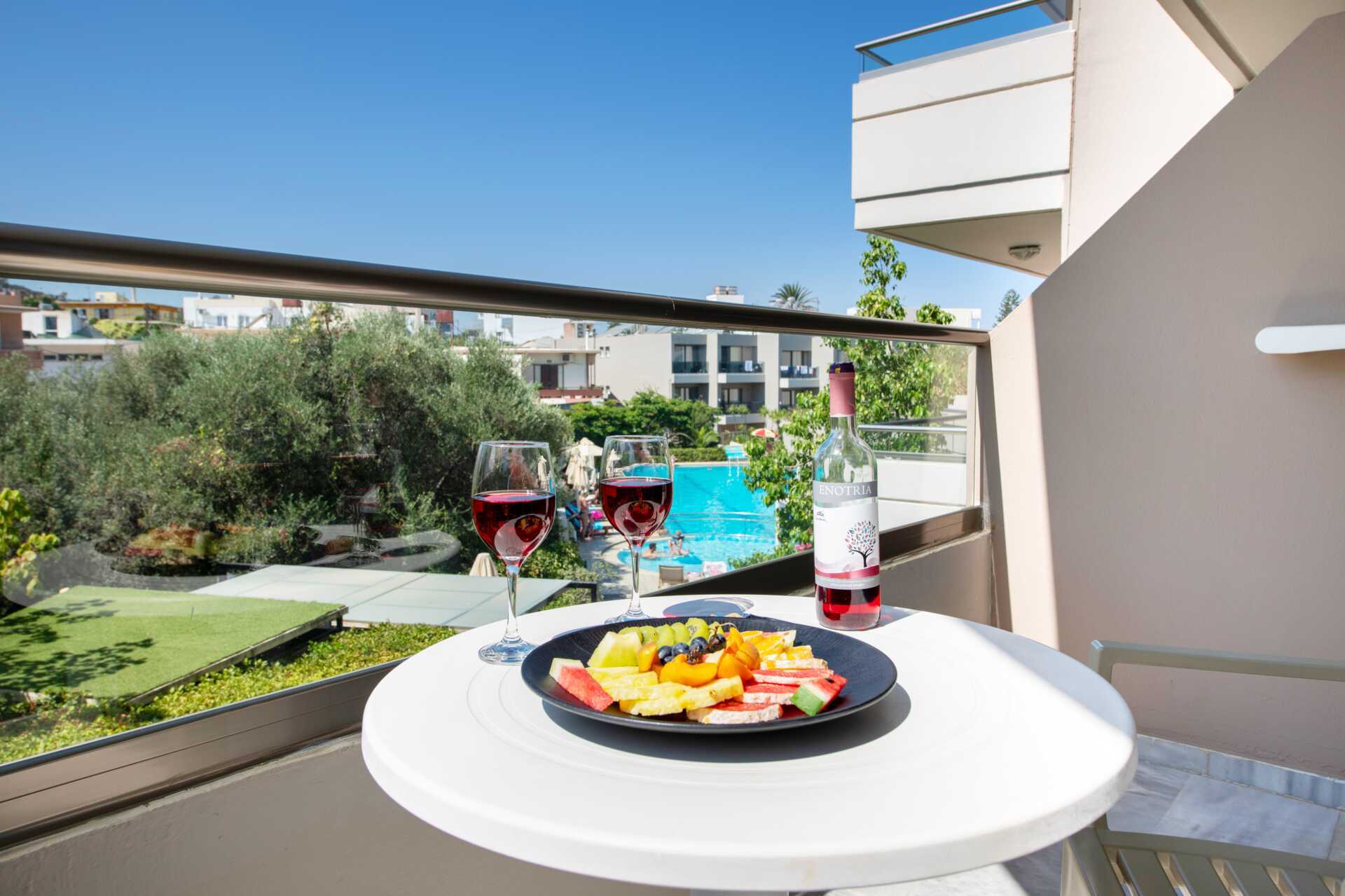 Superior-værelse med balkon eller terrasse. En dobbeltseng. Mulighed for ekstra opredning i sovesofa. Gratis wifi, aircondition og deponering. Køleskab. Nespresso-maskine, kapsler medfølger og genopfyldes i løbet af ugen. Tv med internationale kanaler. Tøfler. Hårtørrer. Badeværelse med bruser og toilet. Rengøring 6 gange om ugen.