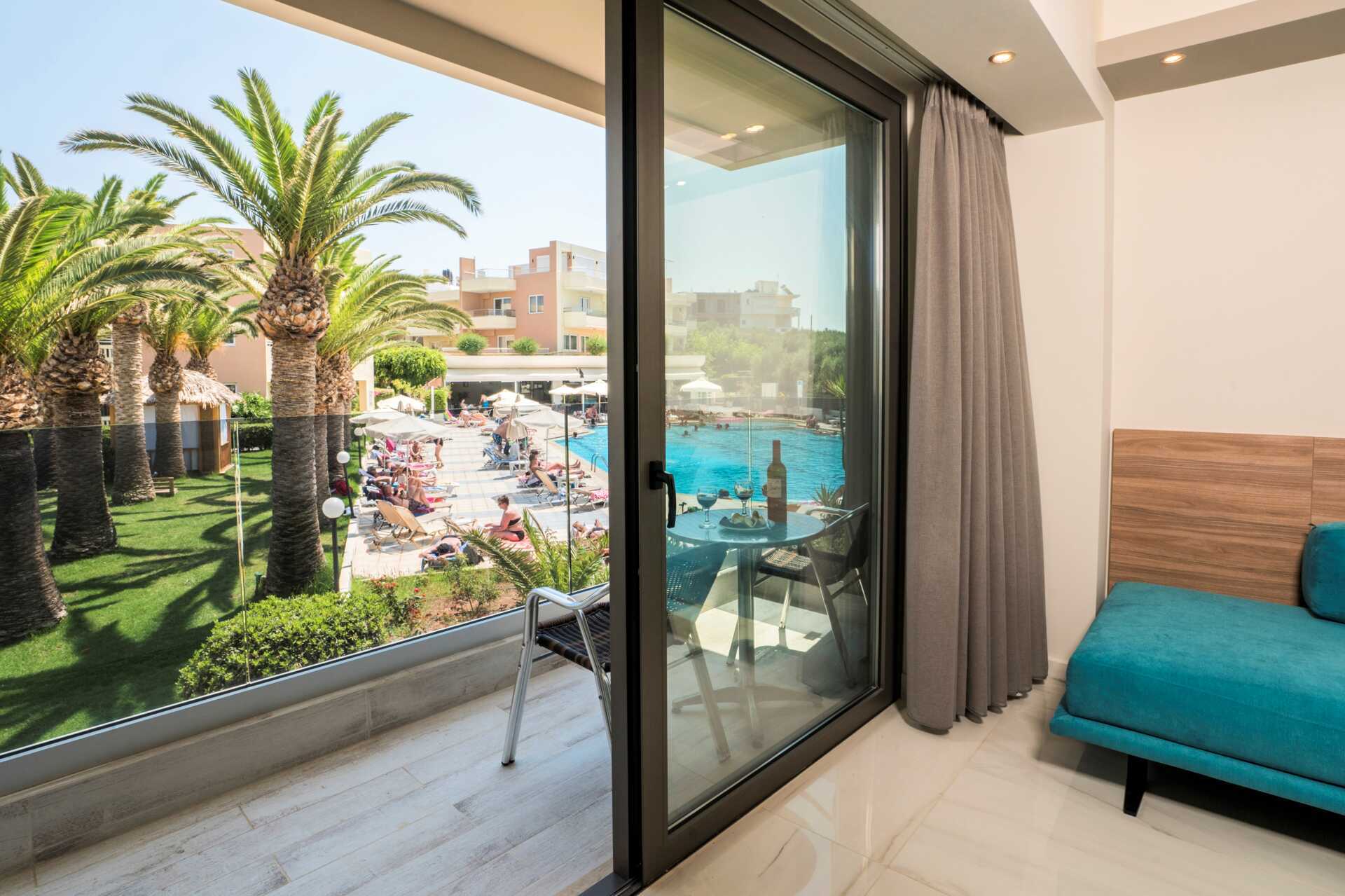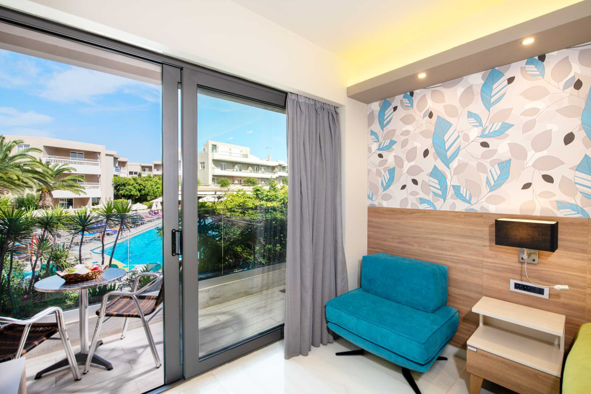 2-værelses lejligheder med balkon eller terrasse i stueplan, nogle med pooludsigt. Soveværelse og kombineret opholdsrum med minikøkken. En dobbeltseng eller to enkeltsenge. Mulighed for ekstra opredninger i sovesofaer eller i enkeltsenge. Minikøkken med kogeplader, el-kedel, kaffemaskine, køleskab, mikroovn og enkelt køkkenudstyr. Gratis wifi, aircondition og deponering. Tv med internationale kanaler. Hårtørrer. Badeværelse med bruser og toilet. Rengøring 6 gange om ugen.