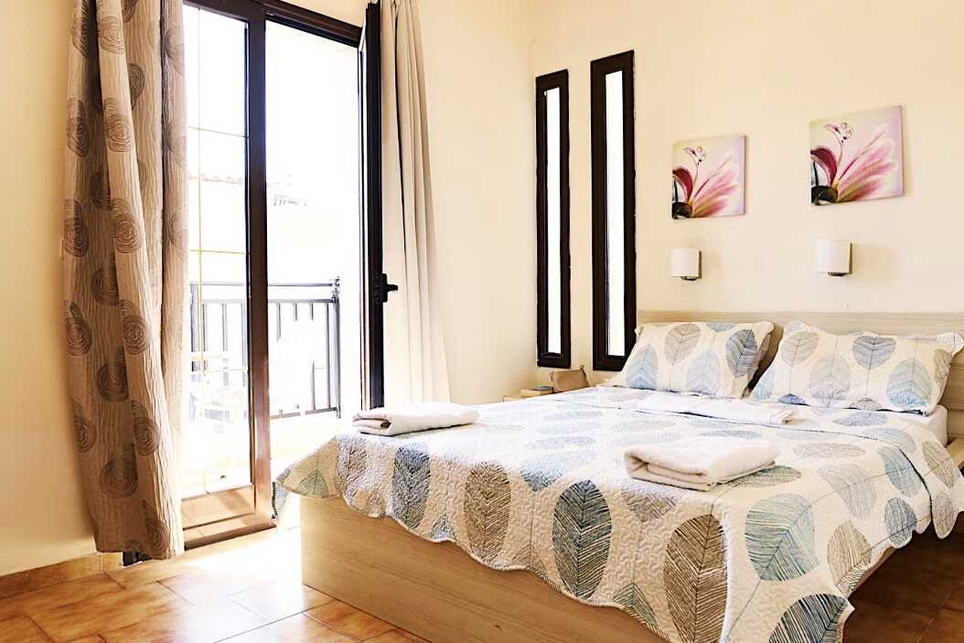 Der er et dejligt poolområde med pool samt solstole og parasoller. Vil du tage det roligt på hotellet, kan du lave frokost og middag i lejligheden og nyde det på udepladsen. Dagligvarebutikker ligger langs hovedgaden, og det er også der, den lokale bus kører, hvis du vil vestpå mod Platanias og østpå mod Chania by.