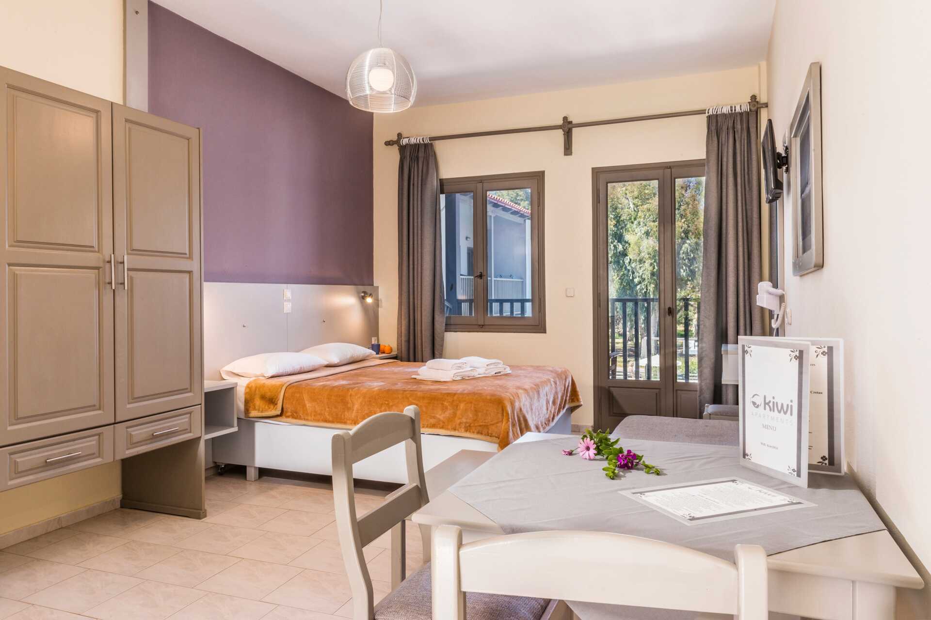 Hotel Kiwi på Kreta har fine lejligheder, tæt på stranden i Agii Apostoli på Kreta. Nyd et dejligt poolområde med solstole og et par parasoller samt en poolbar, der serverer drikkevarer og lettere snacks. Hotellet ligger nær de smukke badebugter i Agii Apostoli, og stranden ligger kun et stenkast væk. På stranden er der solstole og parasoller at leje.