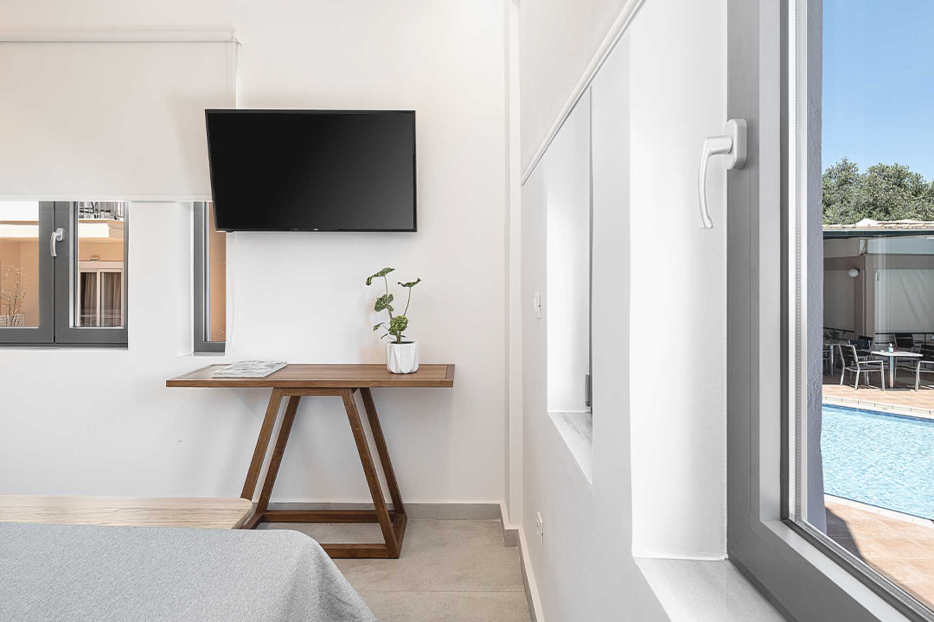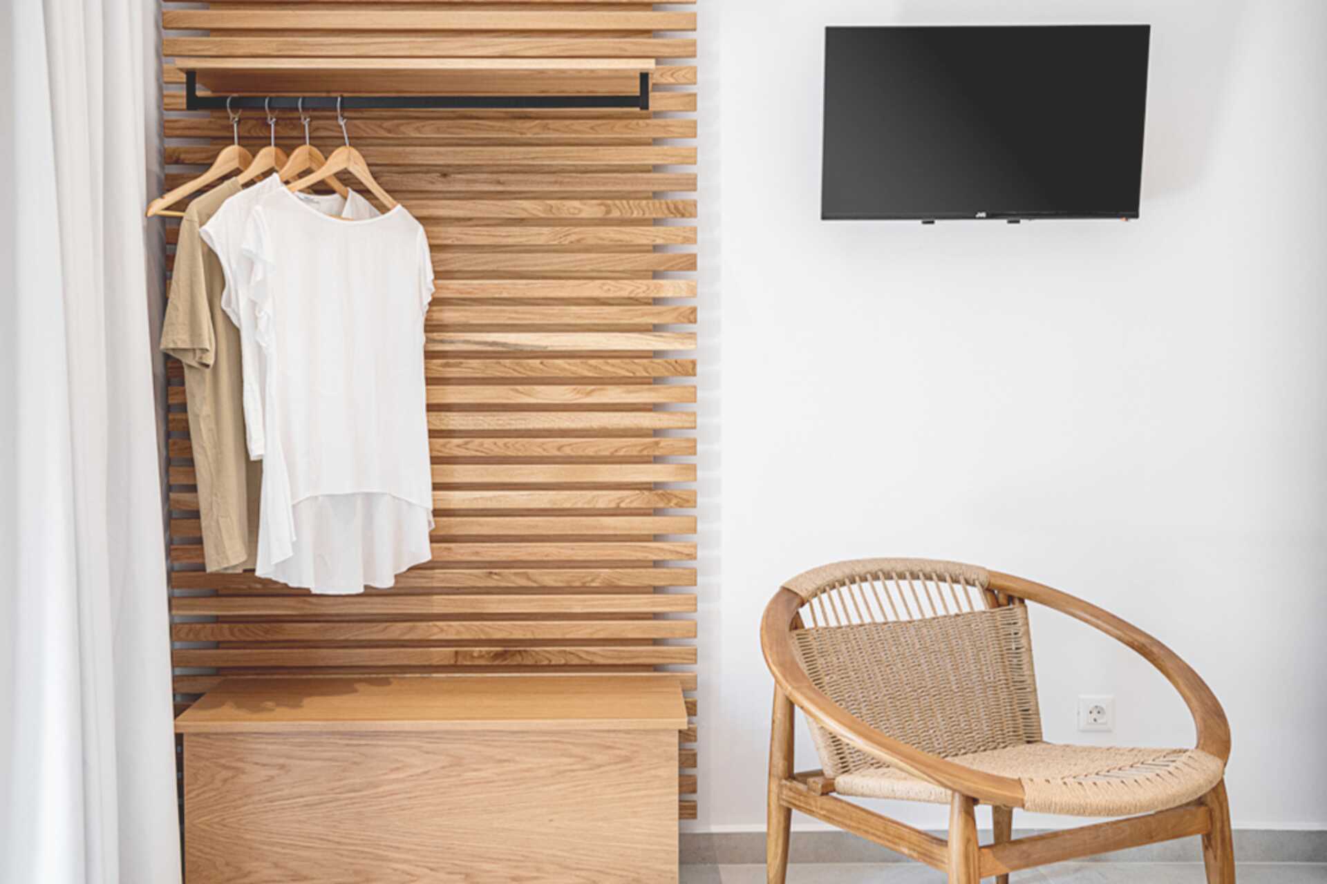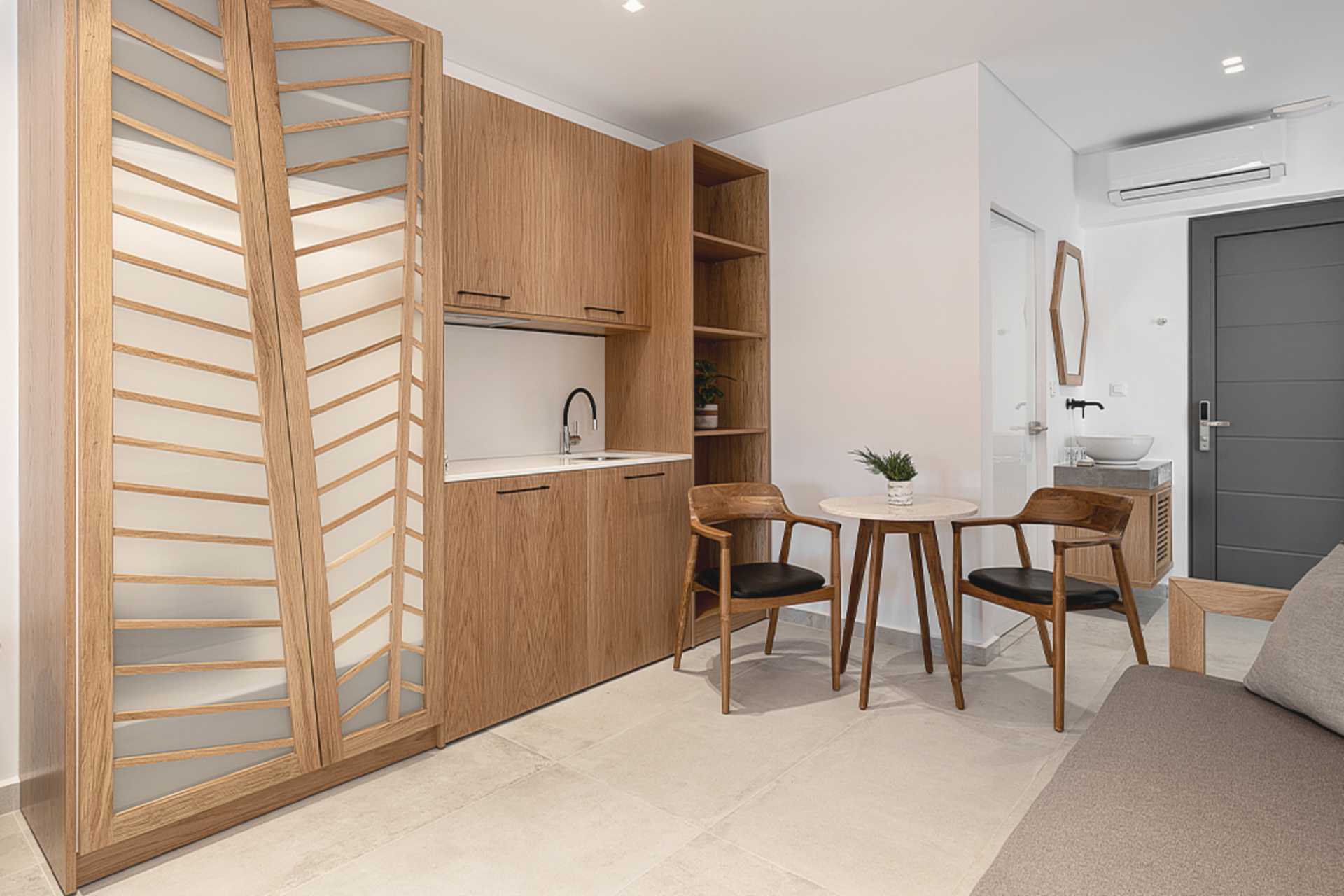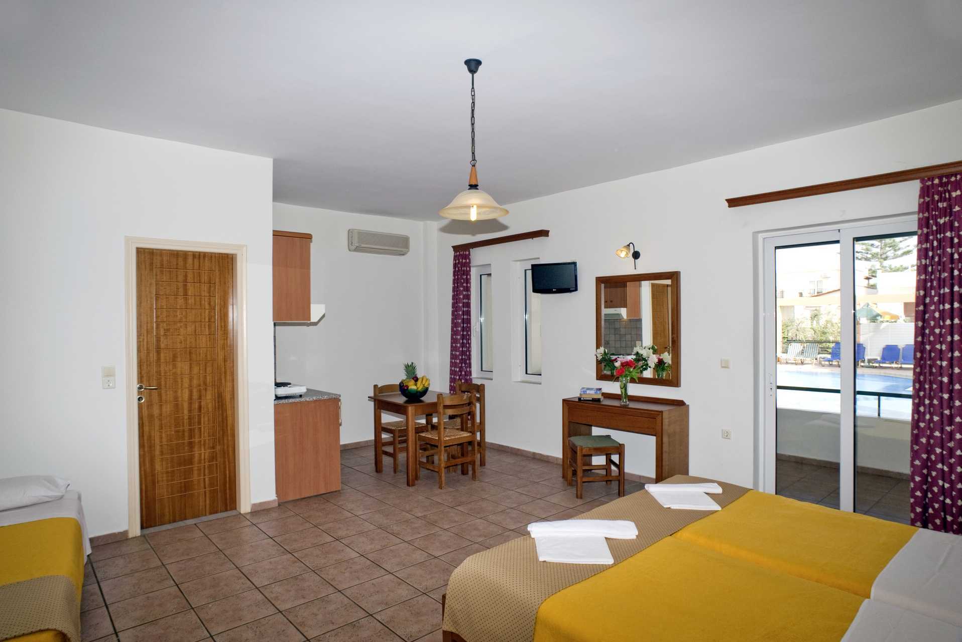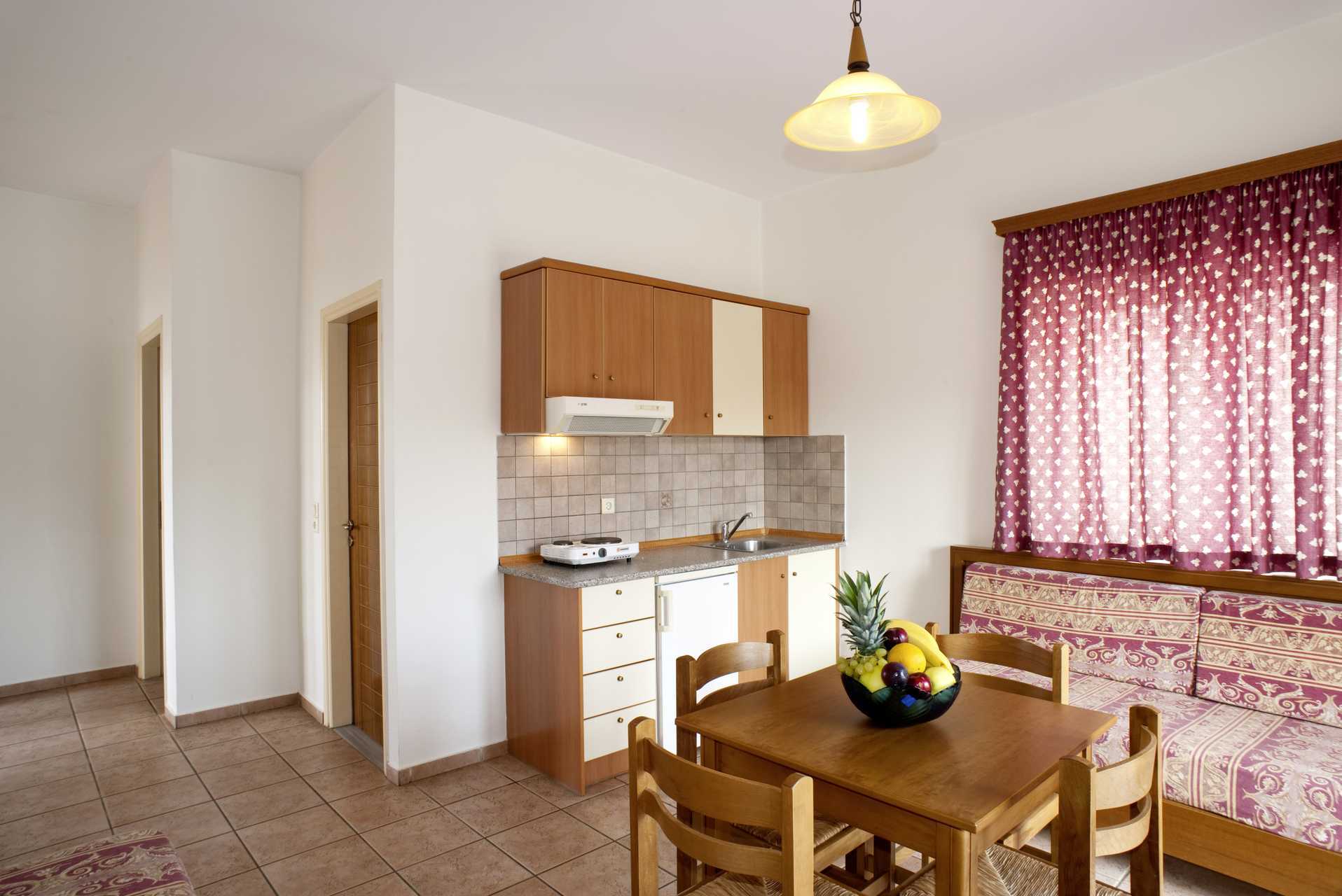 1-værelses lejligheder med balkon eller terrasse. Kombineret soveværelse og minikøkken. To enkeltsenge. Mulighed for ekstra opredning i sovesofa. Gratis wifi. Aircondition og deponering mod betaling. Minikøkken med kogeplader, køleskab, kaffemaskine, el-kedel og enkelt køkkenudstyr. Tv med internationale kanaler. Badeværelse med bruser og toilet. Rengøring 6 gange om ugen.