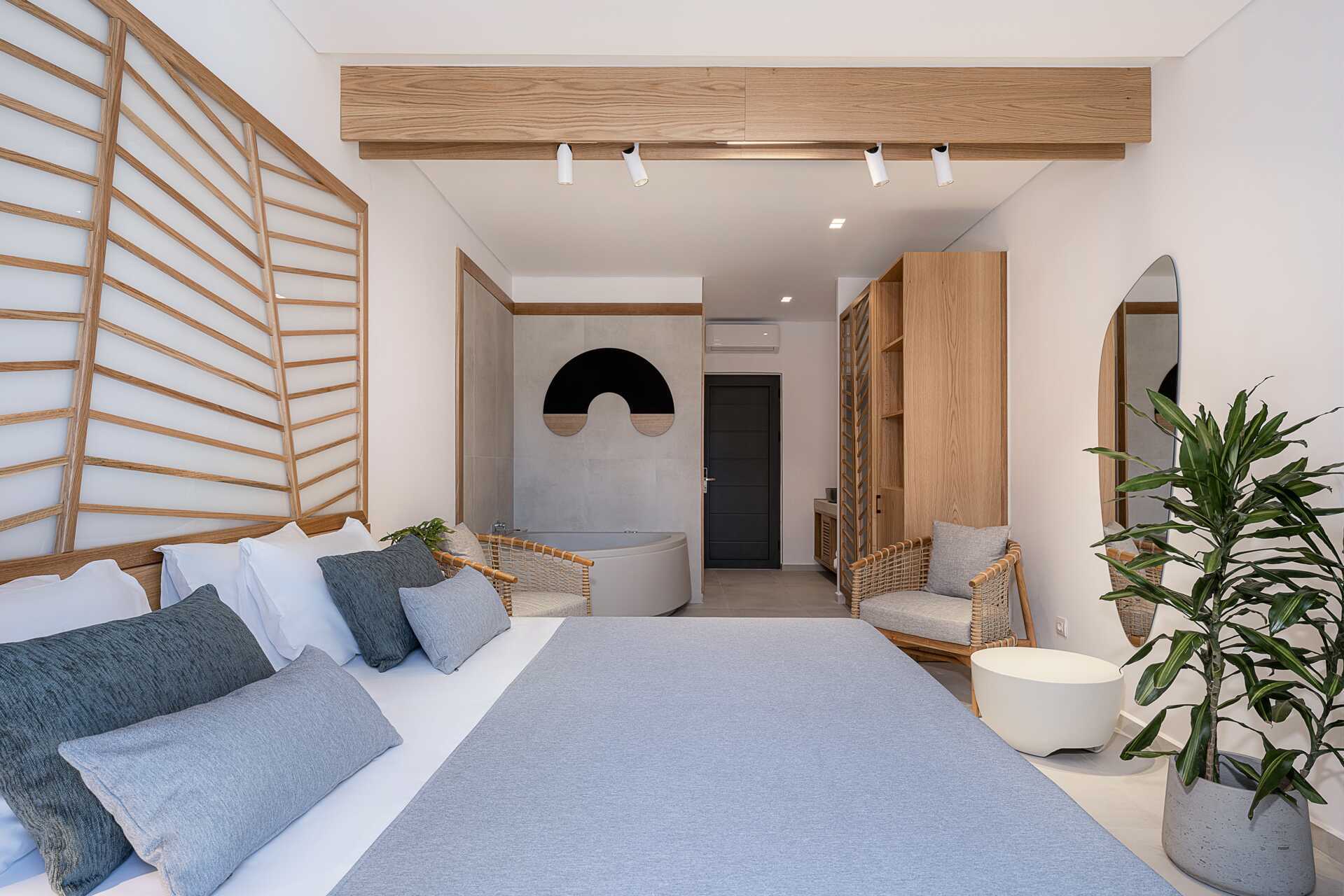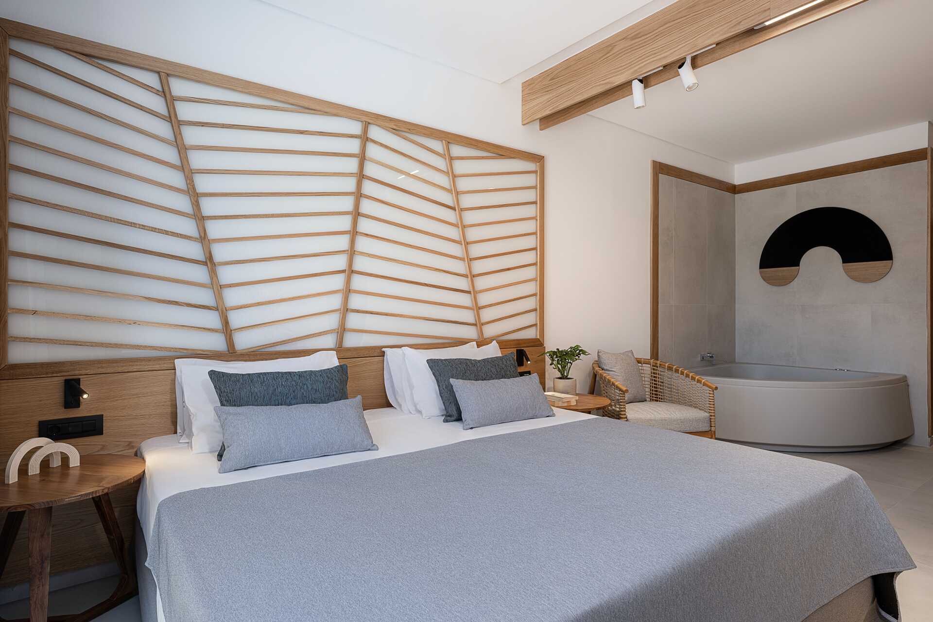 Deluxe-værelse med balkon og jacuzzi på værelset. En dobbeltseng. Gratis wifi. Aircondition og deponering mod betaling. Lille køleskab. Kaffemaskine og el-kedel. Tv med internationale kanaler. Badekåber og tøfler. Hårtørrer. Badeværelse med bruser og toilet. Rengøring 6 gange om ugen.