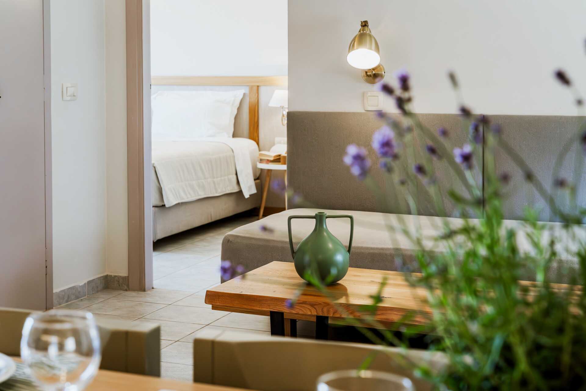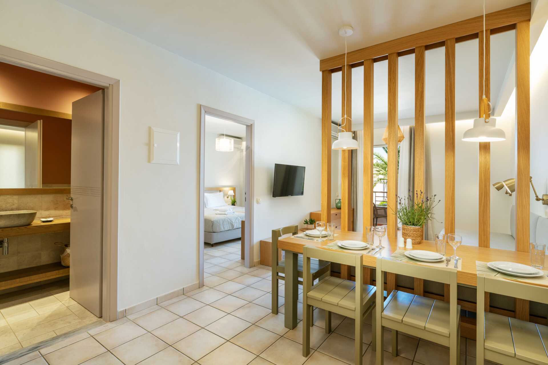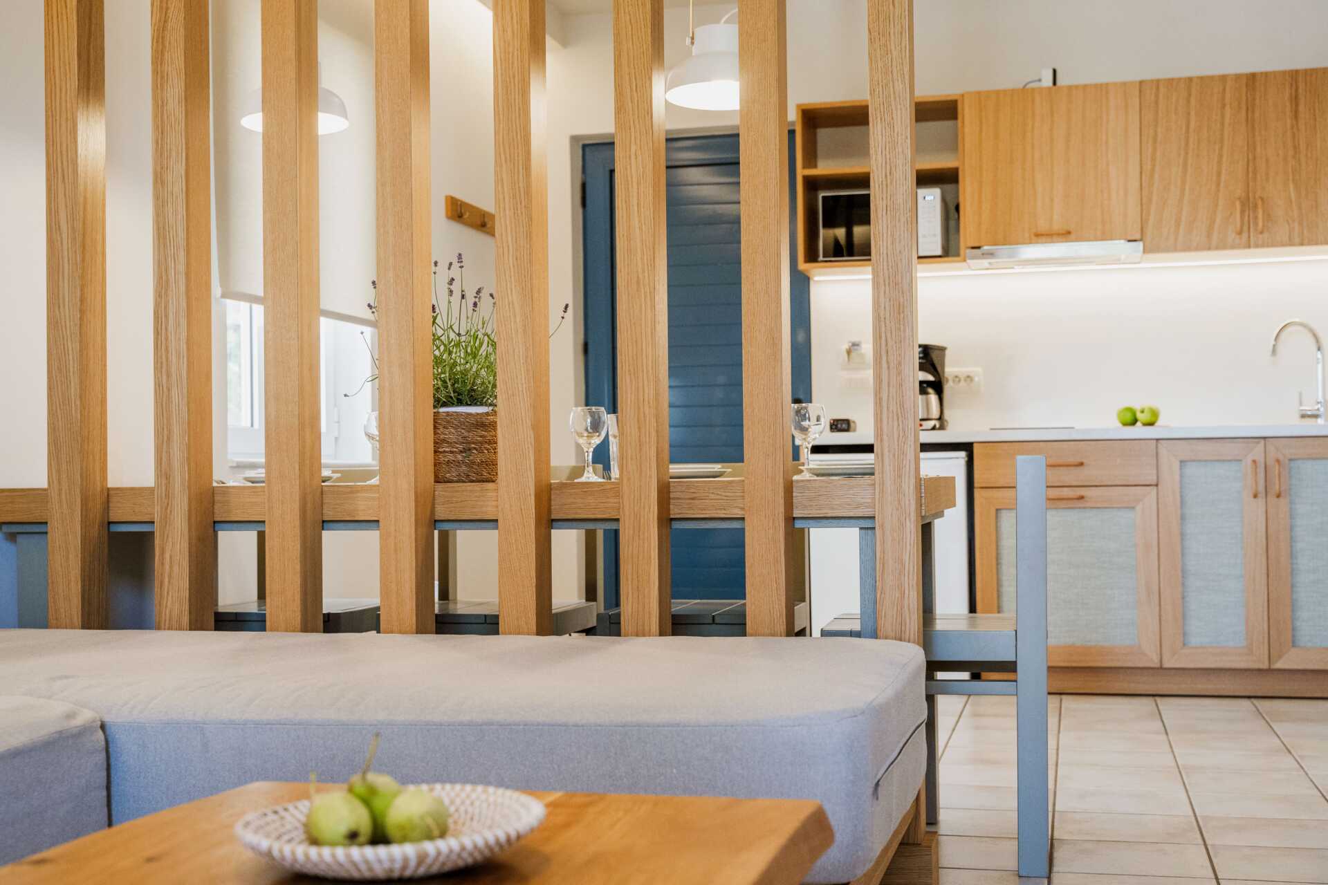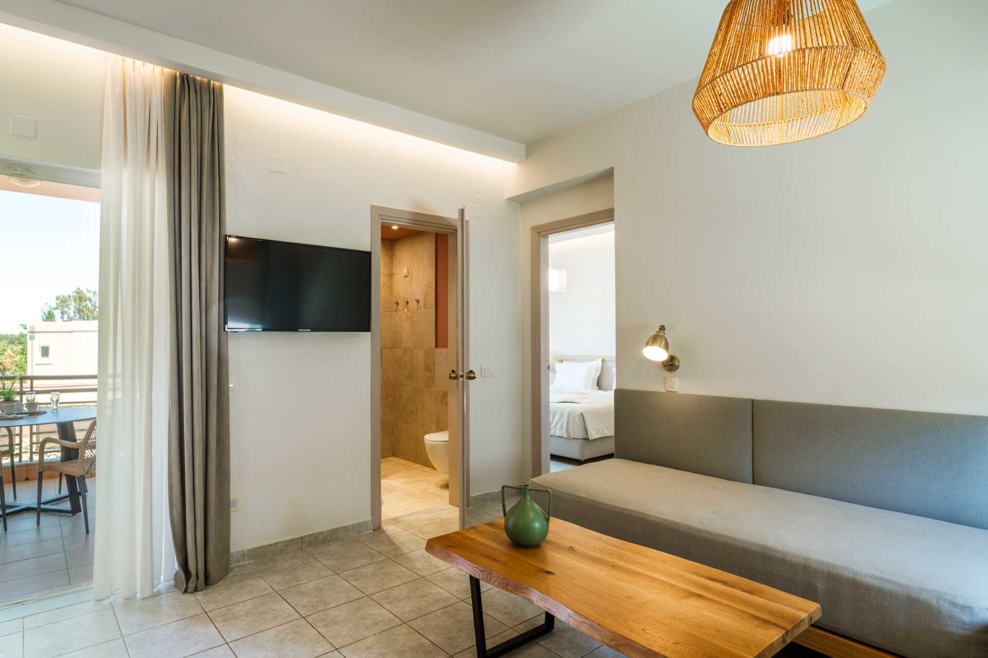1-værelses lejligheder med balkon eller balkon i stueplan, nogle med pooludsigt. To enkeltsenge. Kombineret opholdsrum og minikøkken med kogeplader, køleskab, kaffemaskine, toaster og enkelt køkkenudstyr. Mulighed for ekstra opredning i sovesofa. Gratis wifi, aircondition og deponering. Tv med lokale kanaler. Hårtørrer. Badeværelse med bruser og toilet. I lejlighederne med pooludsigt skal 3. person være et barn. Rengøring 6 gange om ugen.