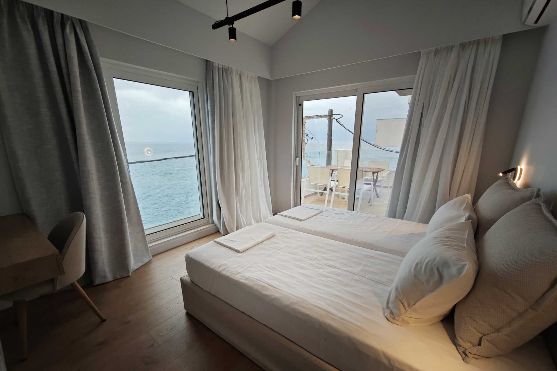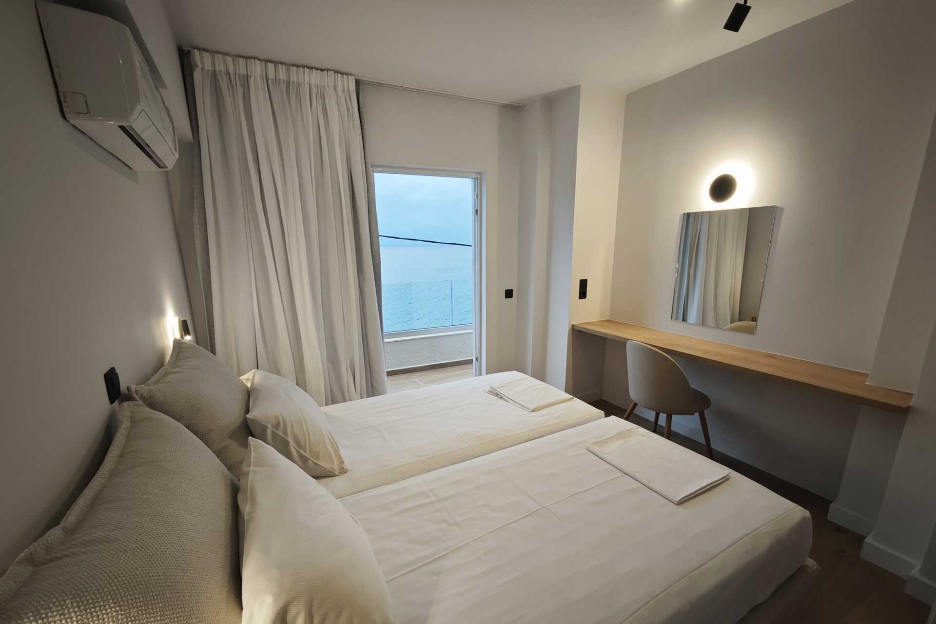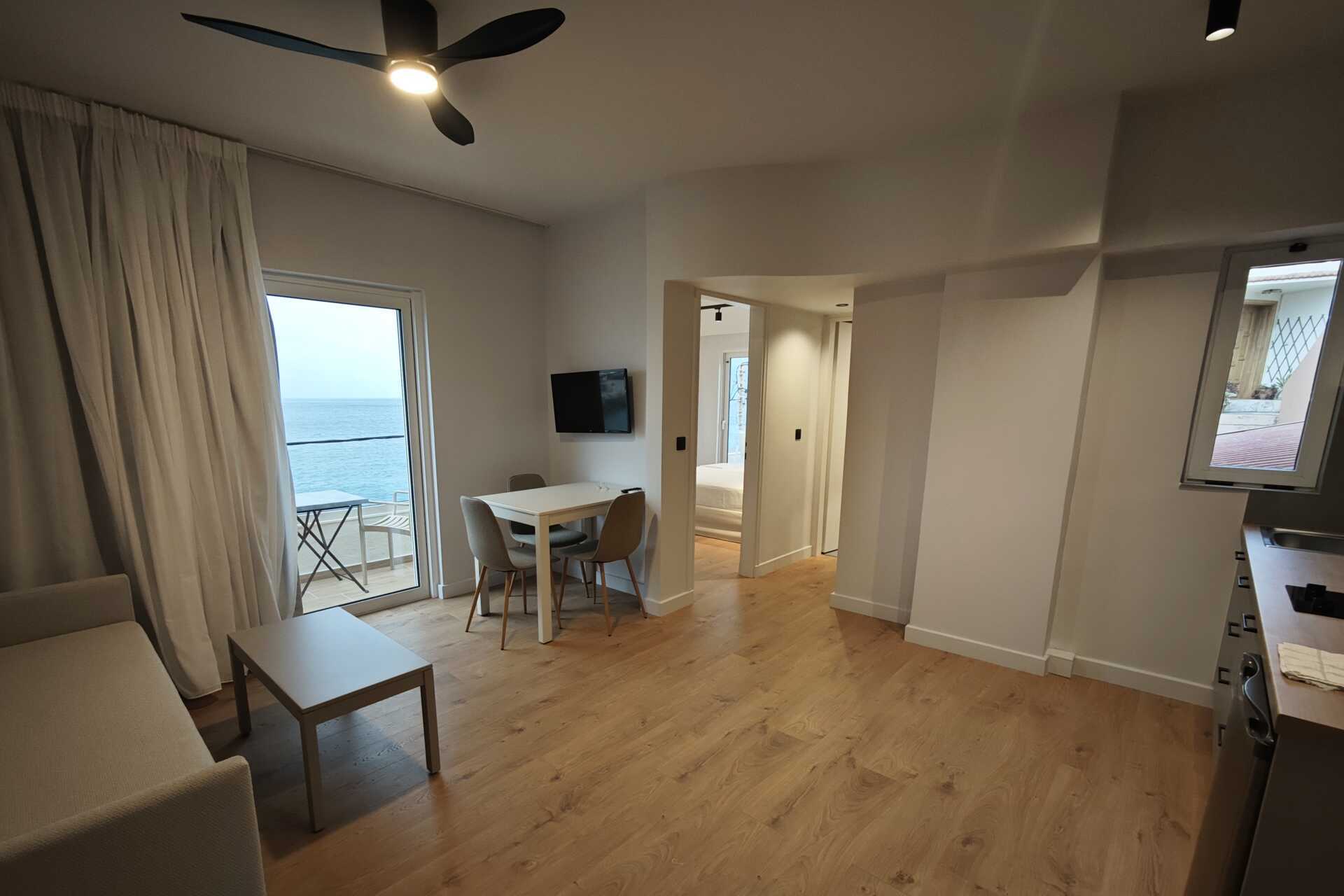 2-værelses lejligheder med balkon og havudsigt - størrelsen på balkonerne kan variere meget, med alt fra en smal balkon, hvor kun to stole og et smalt bord kan passe til en balkon med fire stole og et bord, specifik størrelse på balkonen kan ikke garanteres - eller med stor balkon eller terrasse med havudsigt. Et soveværelse og et kombineret opholdsrum med minikøkken. En dobbeltseng eller to enkeltsenge. Mulighed for opredning i sovesofa med udtræksseng. Minikøkken med kogeplader, køleskab, el-kedel, kaffemaskine og enkelt køkkenudstyr. Gratis wifi, aircondition og deponering. Tv med én lokal kanal. Hårtørrer. Badeværelse med bruser og toilet. Rengøring 6 gange om ugen.