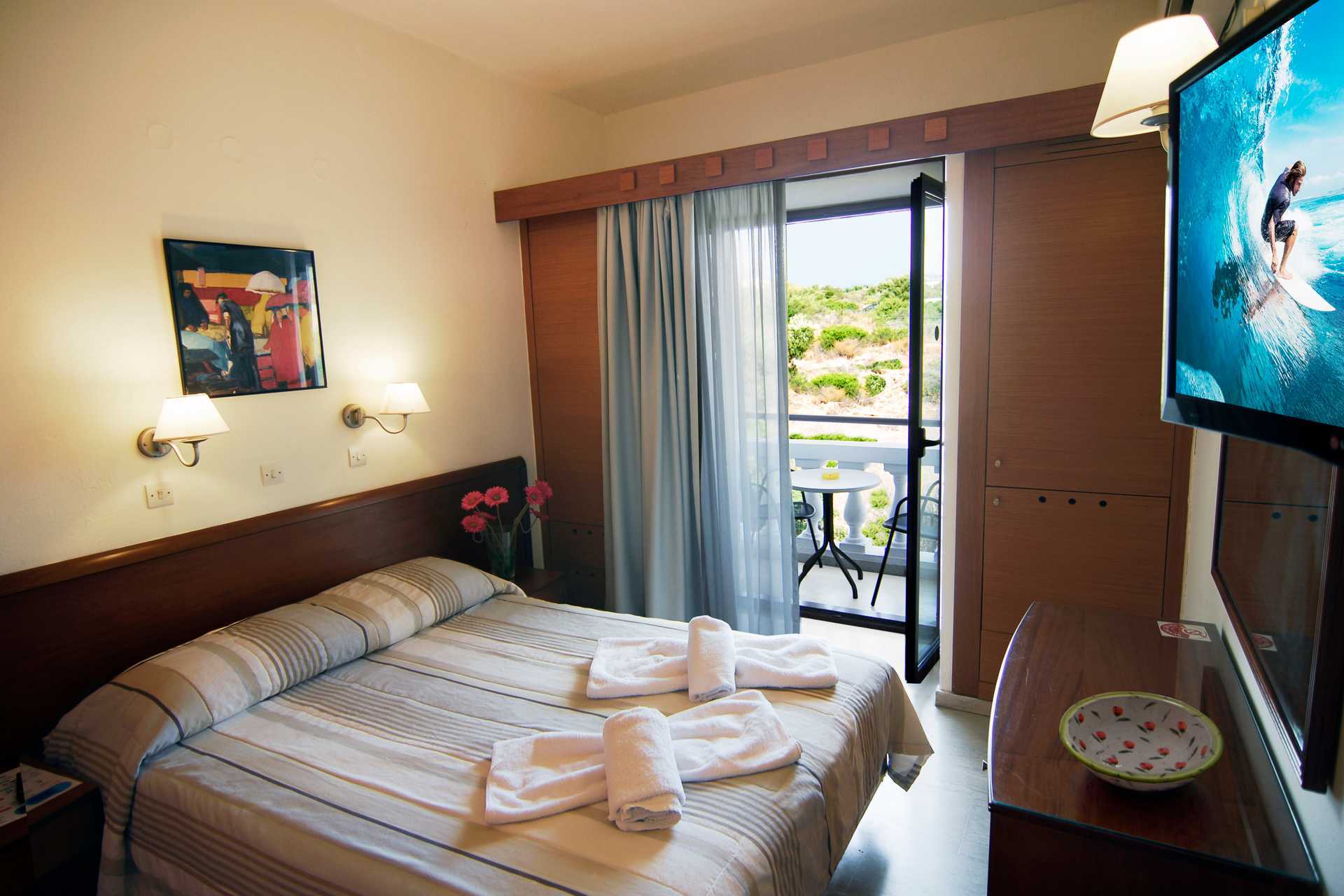 Dobbeltværelse med balkon eller terrasse. En dobbeltseng eller to enkeltsenge. Gratis wifi. Aircondition og deponering mod betaling. Køleskab. El-kedel. Tv med internationale kanaler. Hårtørrer. Badeværelse med bruser og toilet. Rengøring 6 gange om ugen.