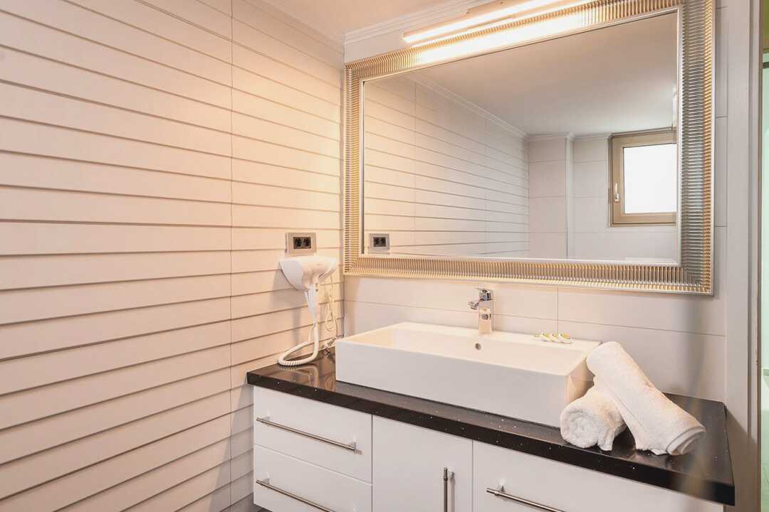 5-værelses villa i to etager med balkon og havudsigt. Fem soveværelser og et kombineret opholdsrum/køkken. Fem soveværelser med enten en dobbeltseng eller to enkeltsenge. Mulighed for ekstra opredninger i sovesofa. Køkken med komfur, to ovne, køleskab og fryser, el-kedel, kaffemaskine, køkkenudstyr, spiseplads, vaskemaskine og opvaskemaskine. Terrasse med spiseplads og gasgrill. Gratis wifi, aircondition og deponering. Der er tv med internationale kanaler på alle værelser. Hårtørrer. Fire badeværelser med bruser og toilet. Villaen rengøres før ankomst, og én rengøring om ugen er inkluderet. Håndklæder og sengelinned er inkluderet.