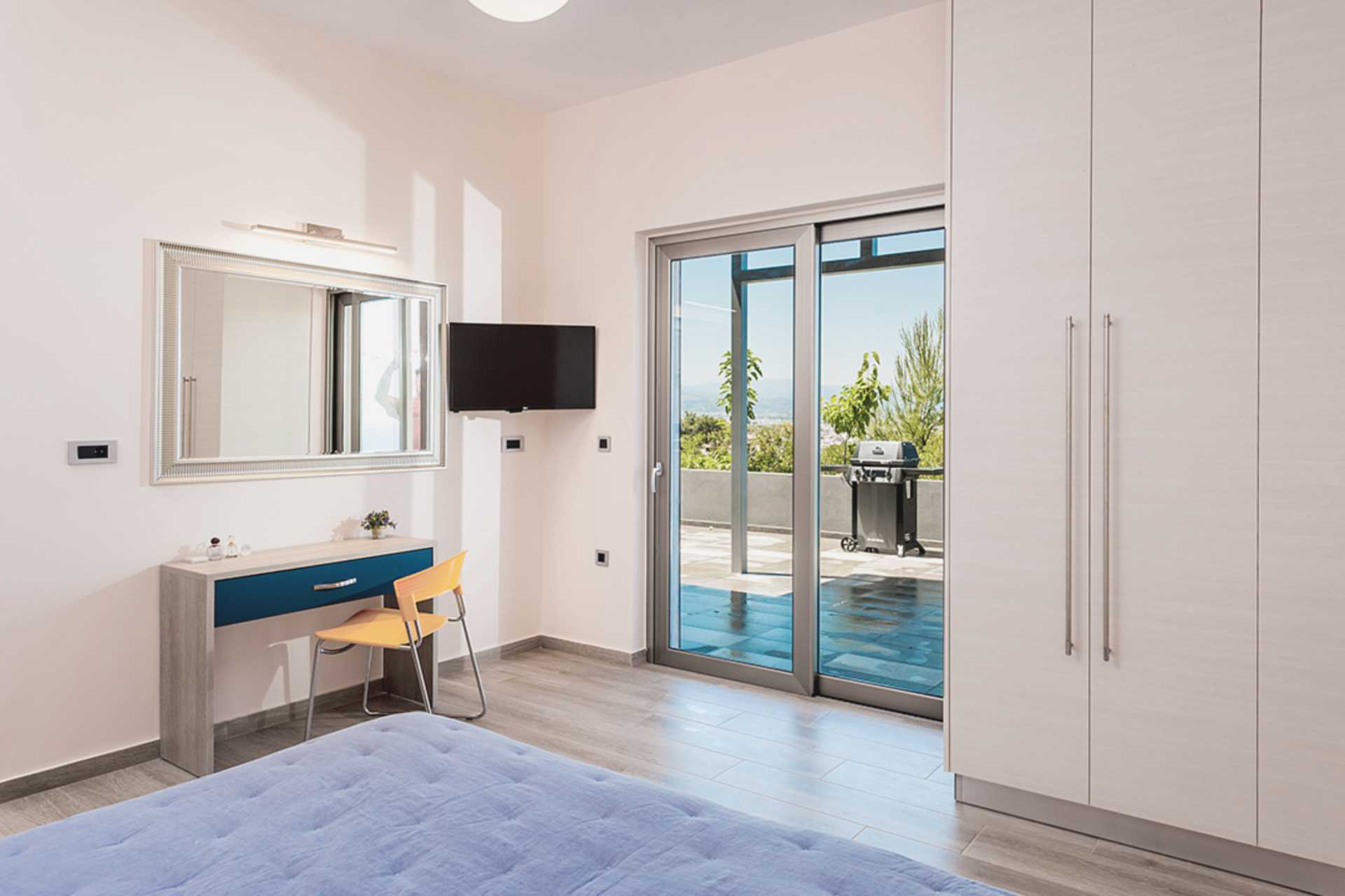 Blue Sea Chania Villa er bygget i to etager med smuk havudsigt. Balkon med havudsigt med bord, stole og gasgrill. På villaens sydside er der en pool med solstole og parasol. Bordfodbold og billard. Fem soveværelser og kombineret opholdsrum/køkken. Fem soveværelser med enten en dobbeltseng eller to enkeltsenge. Mulighed for ekstra opredninger i sovesofa. Køkken med komfur, to ovne, køleskab og fryser, el-kedel, kaffemaskine, køkkenudstyr, spiseplads, vaskemaskine og opvaskemaskine. Gratis wifi, aircondition og deponering. Der er tv med internationale kanaler på alle værelser. Hårtørrer. Fire badeværelser med bruser og toilet. Villaen rengøres før ankomst, og én rengøring om ugen er inkluderet. Håndklæder og sengelinned er inkluderet.