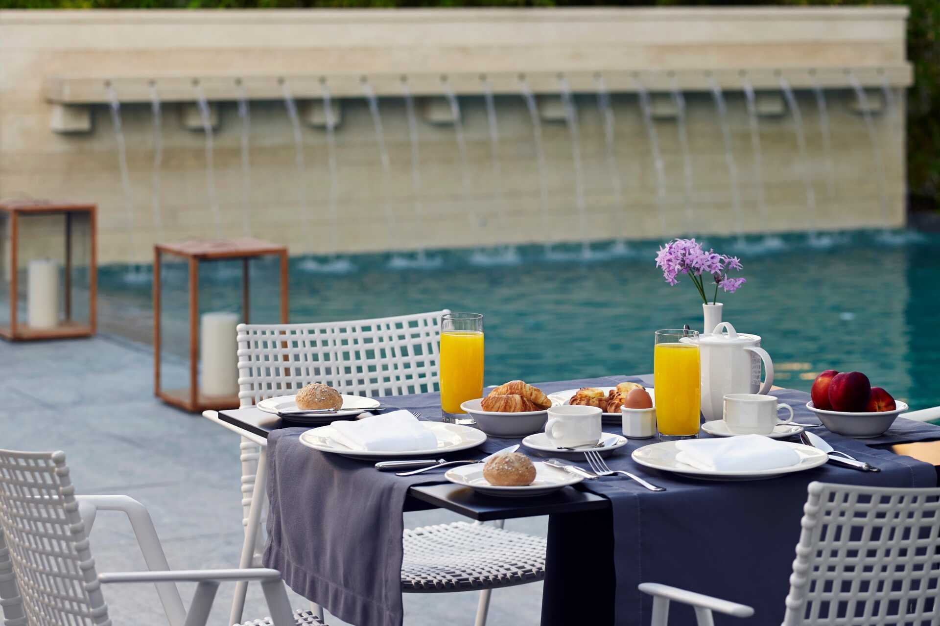 Hotellet er indrettet i en afslappet elegant stil, og allerede i lobbyen bliver du mødt af komfortable møbler og et bibliotek. Der spilles musik fra flyglet i lobbyen et par gange om ugen fra maj til oktober. Restauranten, hvor morgenmaden serveres hver morgen, byder på velsmagende retter fra middelhavskøkkenet og lokale specialiteter senere på dagen. I bistroen kan du forkæle dig selv med en kop kaffe, et glas vin og nogle lette snacks.