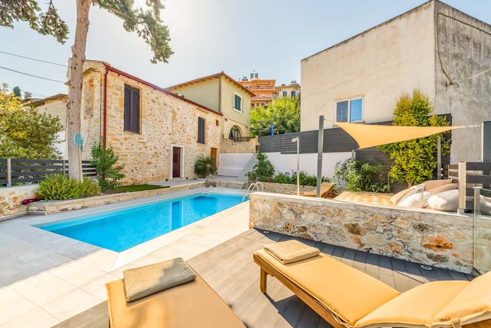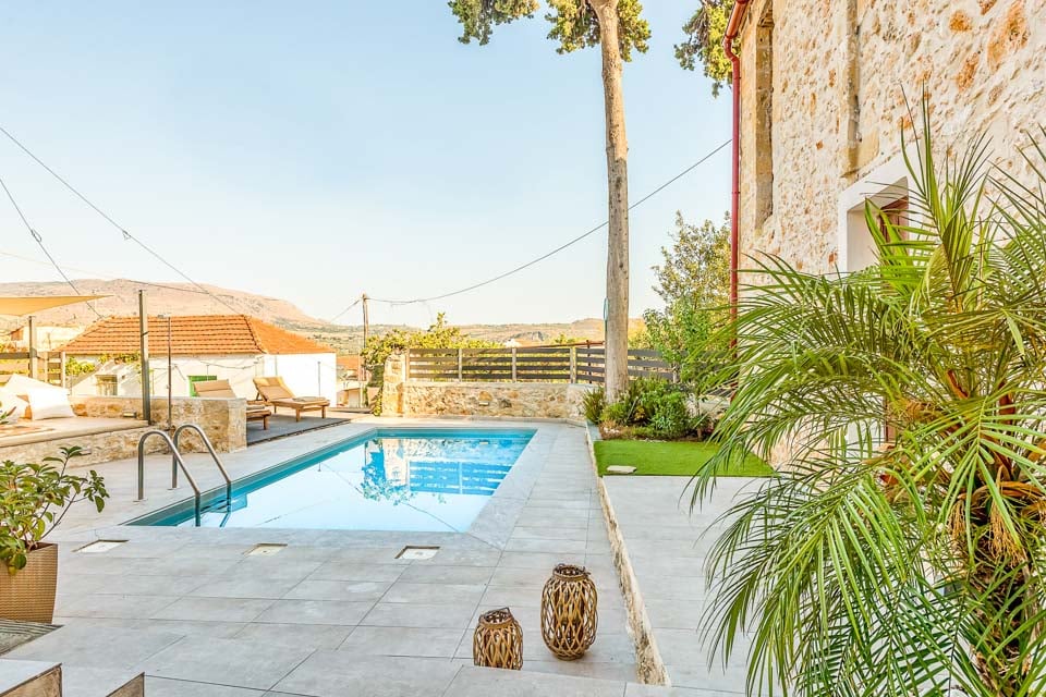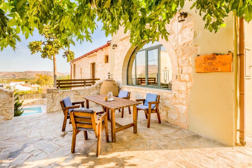Denne traditionelle stenvilla ligger i den charmerende landsby Neo Chorio i Chania-regionen og kombinerer kretensisk charme med moderne faciliteter. Dejlige sandstrande ligger inden for 10 minutters kørsel ved Kalyves og Almeryda, og fra villaens terrasser er der udsigt over det smukke omkringliggende landskab.