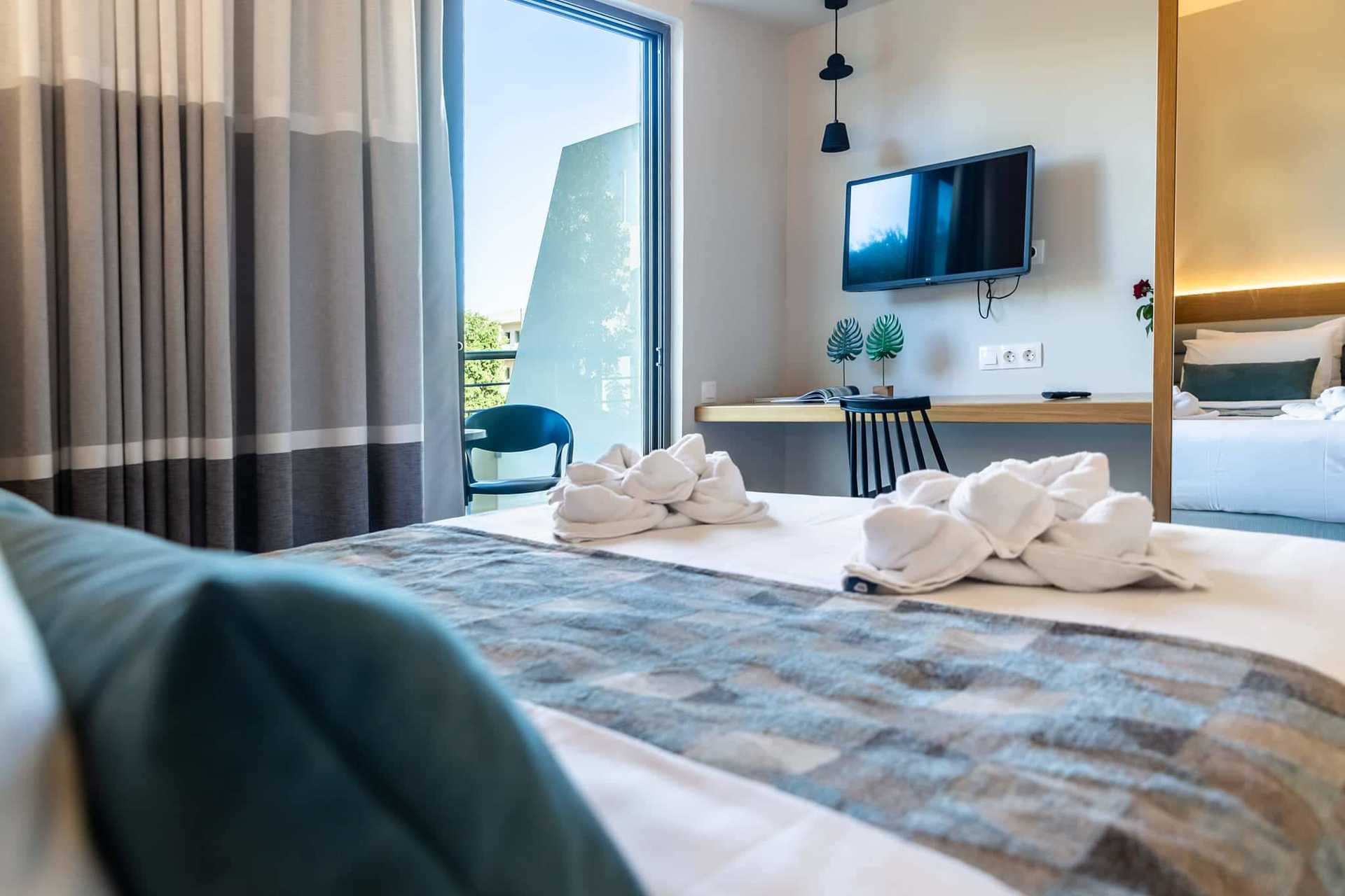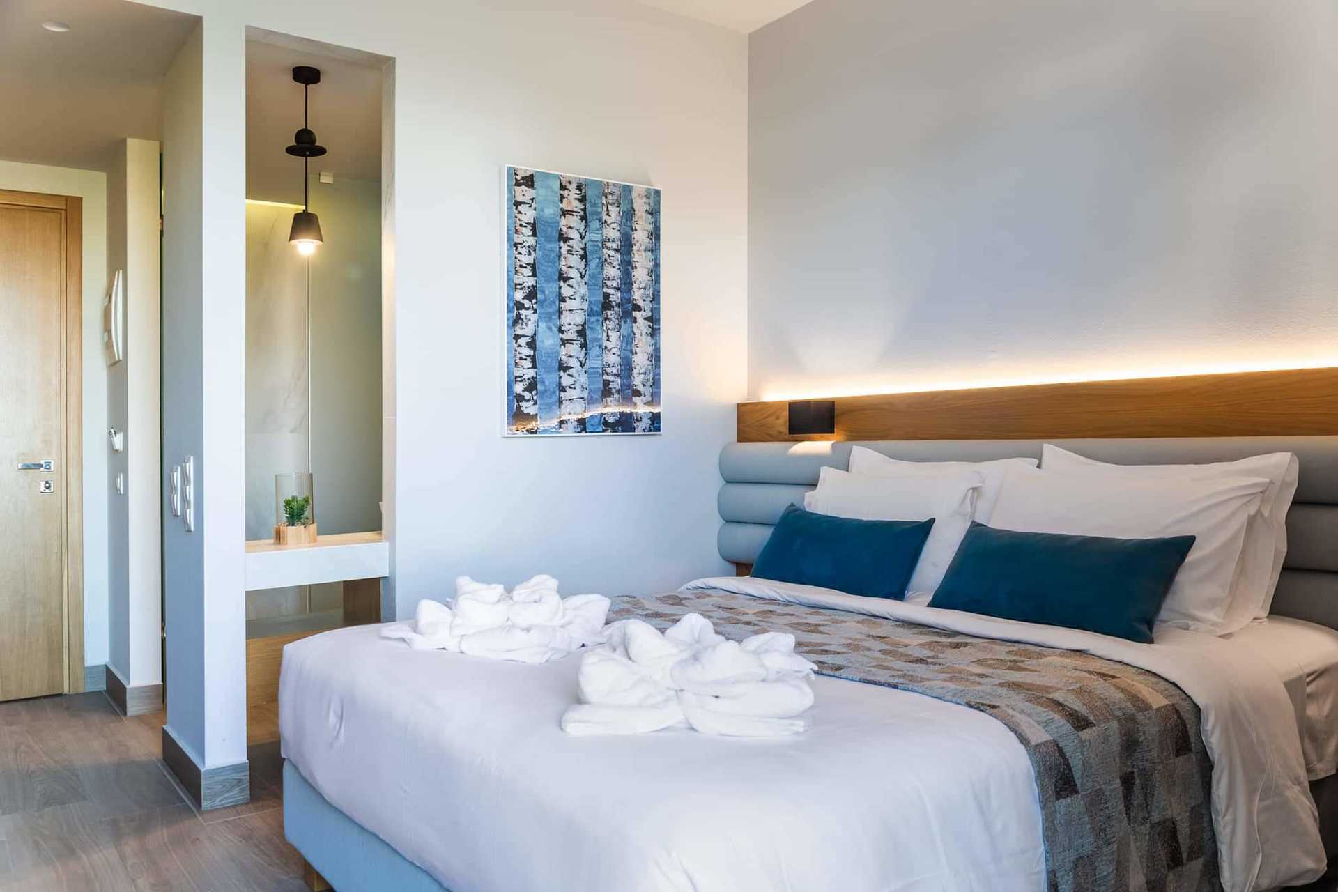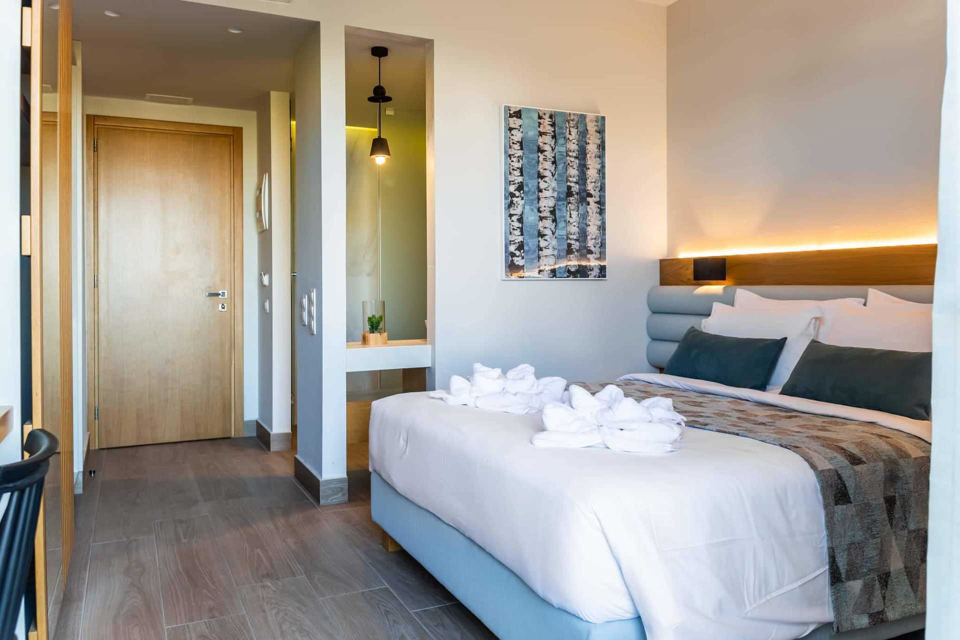1-værelses lejlighed superior med balkon. Soveværelse kombineret med minikøkken. En dobbeltseng eller to enkeltsenge. Minikøkken med kogeplader, køleskab, el-kedel, kaffemaskine og enkelt køkkenudstyr. Gratis wifi og aircondition. Deponering mod betaling. Tv med internationale kanaler. Badeværelse med bruser og toilet. Rengøring 6 gange om ugen. Børn under to år tæller med i det maksimale antal personer på værelset.