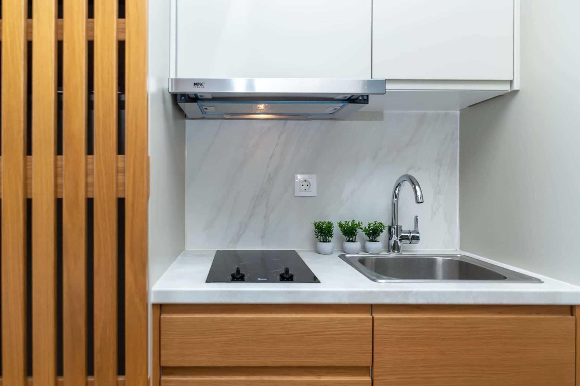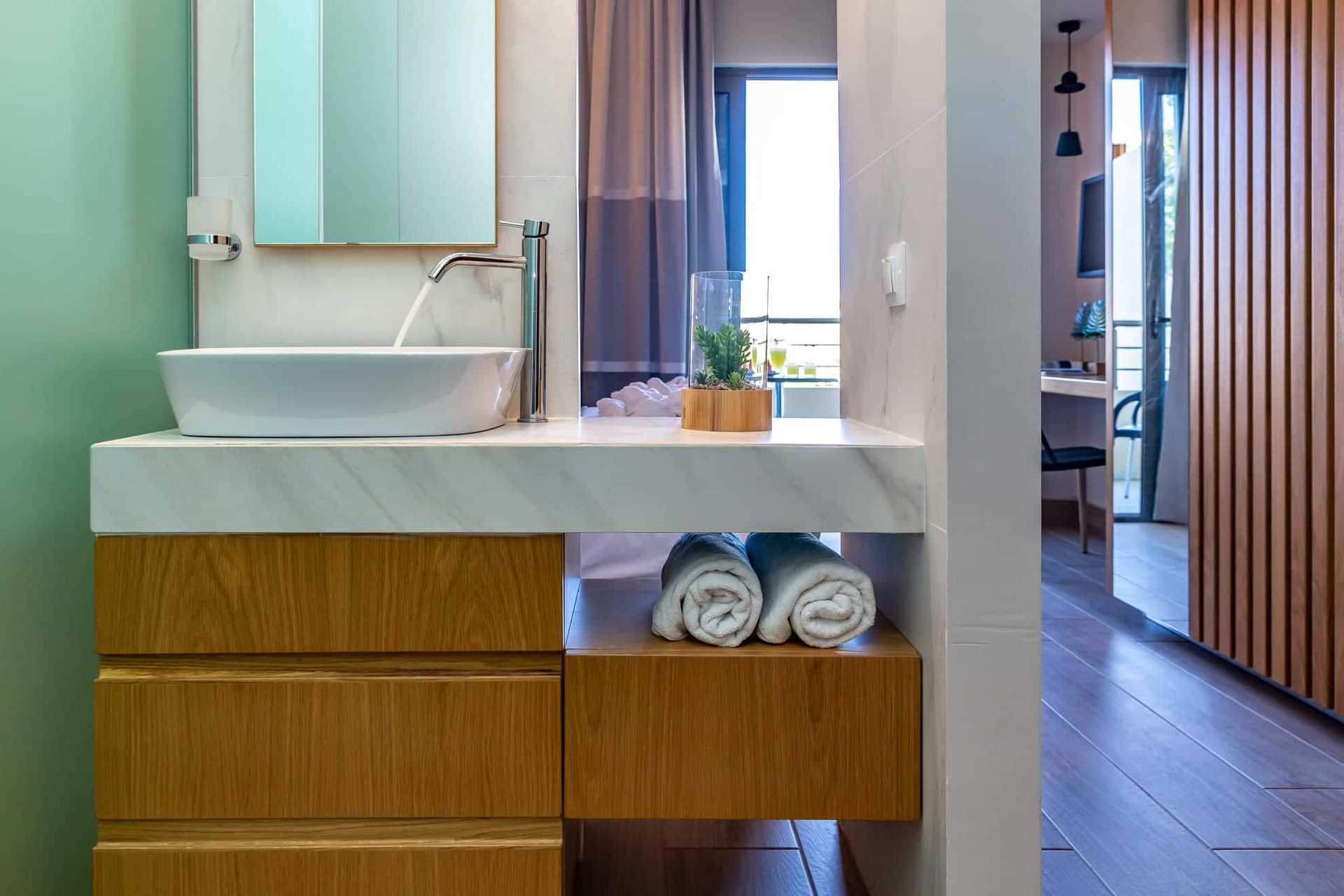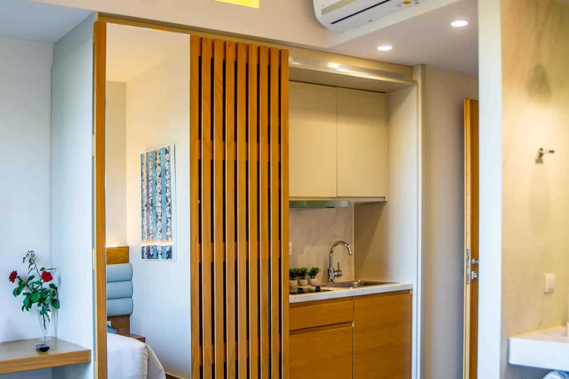 1-værelses lejlighed superior med balkon. Soveværelse kombineret med minikøkken. En dobbeltseng eller to enkeltsenge. Minikøkken med kogeplader, køleskab, el-kedel, kaffemaskine og enkelt køkkenudstyr. Gratis wifi og aircondition. Deponering mod betaling. Tv med internationale kanaler. Badeværelse med bruser og toilet. Rengøring 6 gange om ugen. Børn under to år tæller med i det maksimale antal personer på værelset.