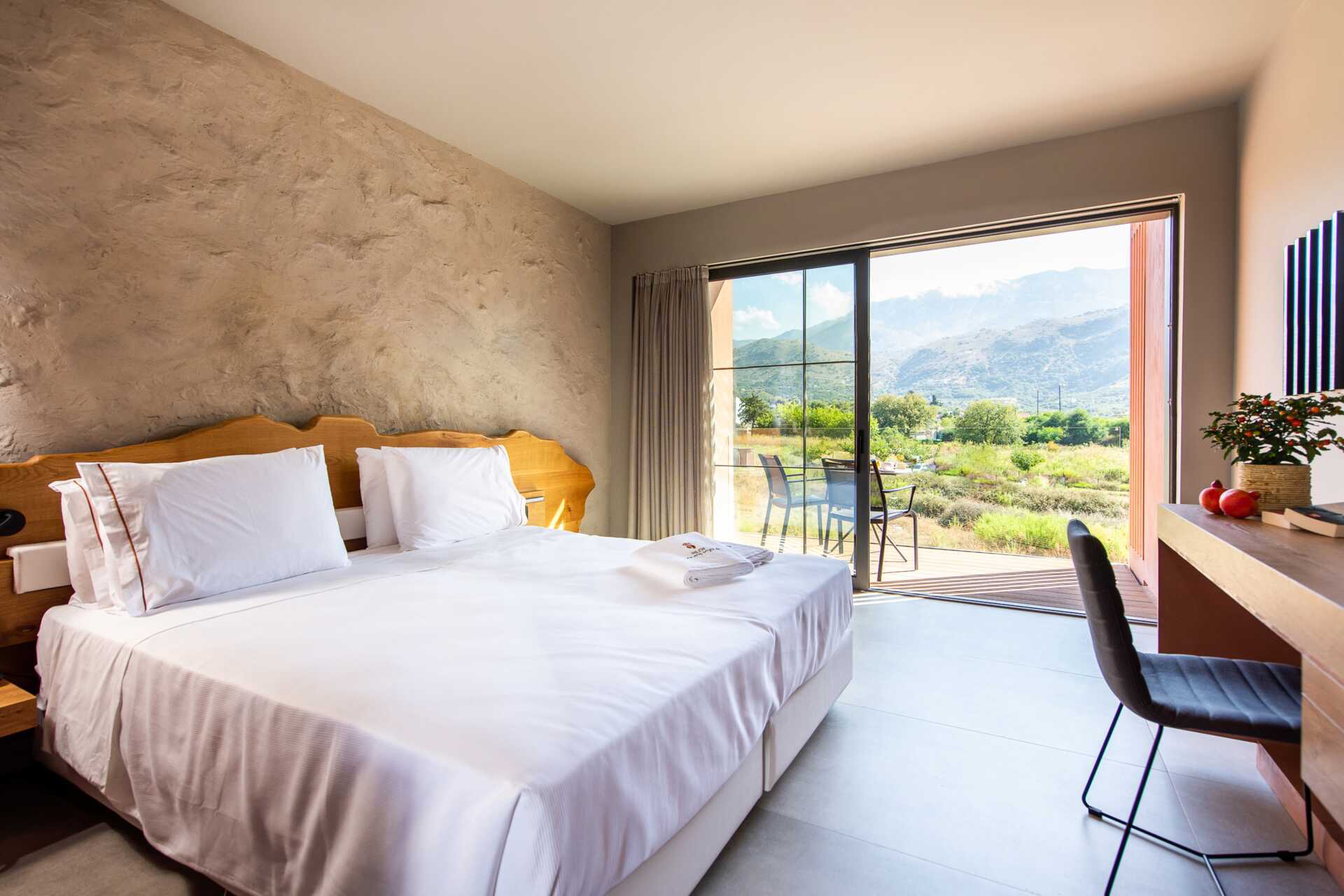 Dobbeltværelser med balkon eller terrasse. En dobbeltseng eller to enkeltsenge. Gratis wifi, aircondition og deponering. Minibar. Nespresso maskine, kapsler medfølger. Tv med internationale kanaler. Hårtørrer. Glasdør mellem soveværelse og badeværelse. Matterede glasvægge til bruser og toilet. Rengøring 7 gange om ugen.