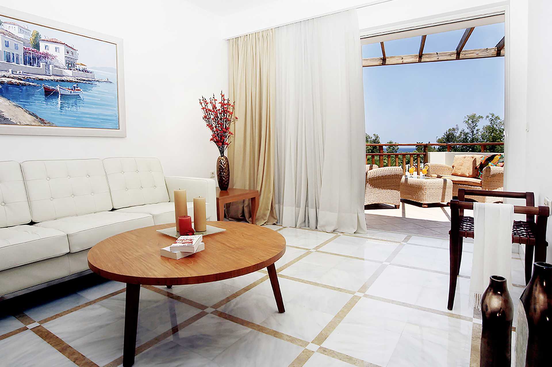 2-værelses suiter med balkon eller terrasse med pooludsigt. Soveværelse og opholdsrum. En dobbeltseng. Mulighed for ekstra opredninger i sovesofa. Gratis wifi, aircondition og deponering. Køleskab. El-kedel og kaffe/te. Tv med internationale kanaler. Hårtørrer. Badekåber og tøfler. Badeværelse med badekar og bruser og toilet. Rengøring 7 gange om ugen.