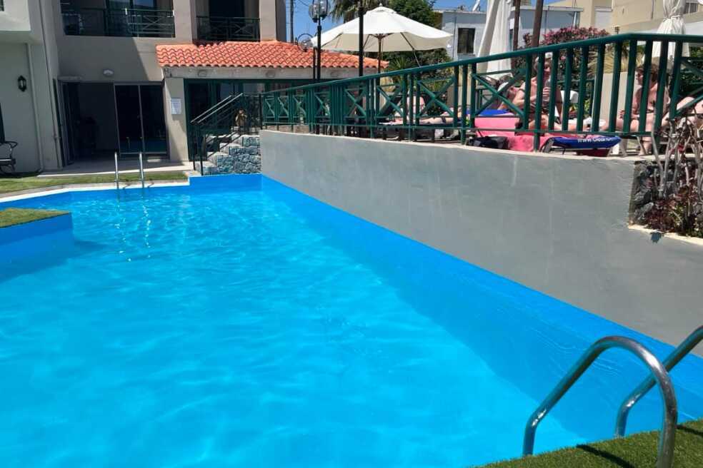 1-værelses lejligheder med balkon eller terrasse i stueplan. Soveværelse kombineret med minikøkken. En dobbeltseng eller to enkeltsenge Mulighed for en ekstra opredning for 3. person. Køleskab, kogeplader, kaffemaskine og enkelt køkkenudstyr. Gratis wifi og aircondition. Deponering mod betaling. Badeværelse med badekar eller bruser samt toilet. Rengøring 5 gange om ugen. Børn under to år tæller med i det maksimale antal personer i lejligheden.