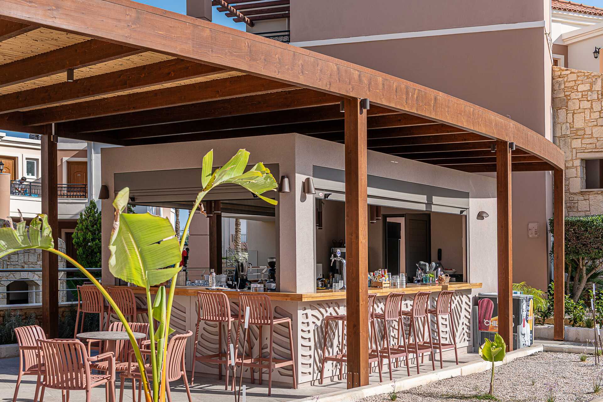 Hotellet ligger lige ved en dejlig sandstrand. Der er et mindre udvalg af barer og restauranter i nærheden af hotellet. Ønskes et bredere udvalg af butikker, restauranter og barer, kan disse findes i gåafstand til Platanias på ca. 15-20 minutter eller i Chania by, hvor du kan tage den lokale bus, ca. 14 km. Den lokale bus stopper tæt på hotellet og kører gennem Platanias på vej til Chania.