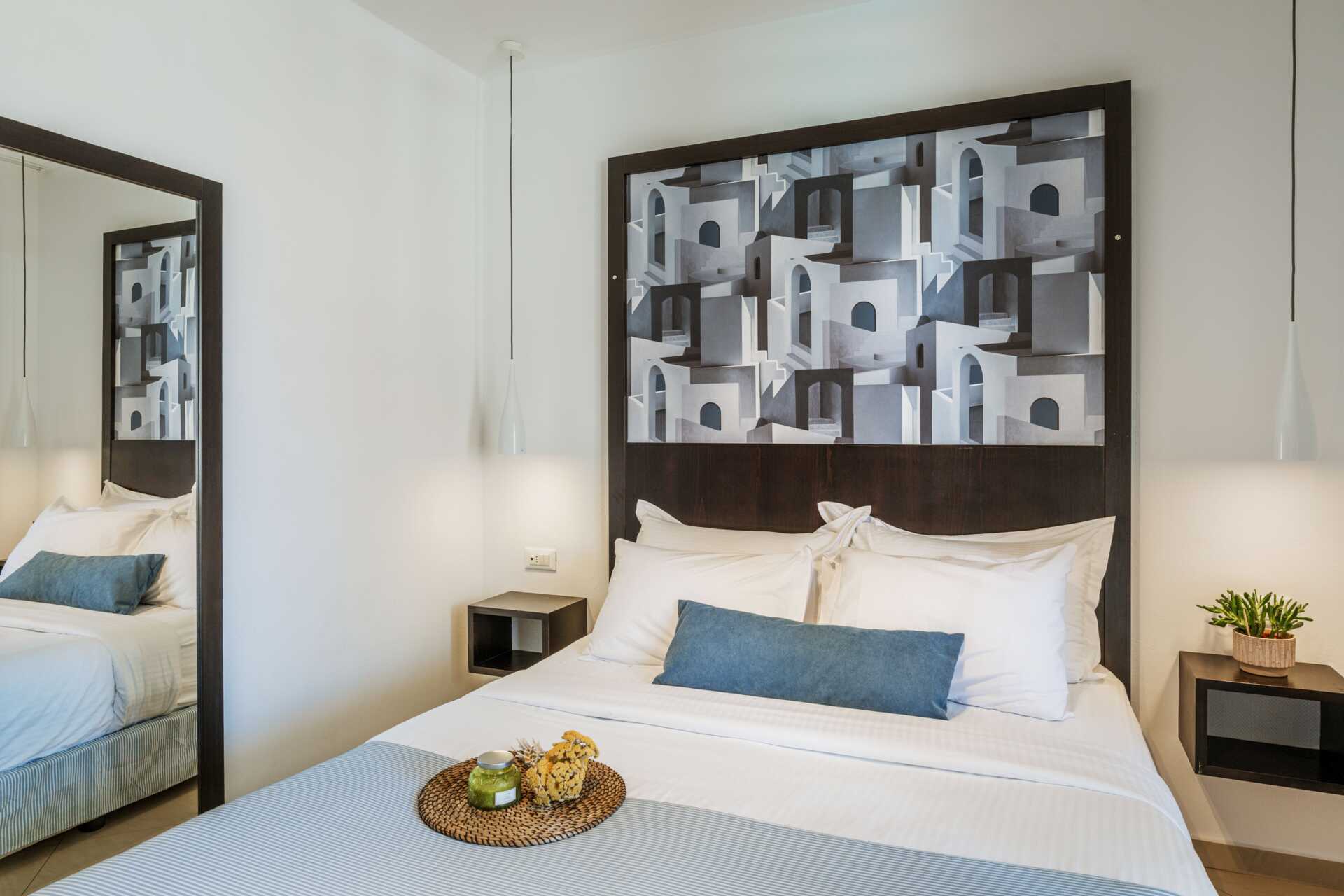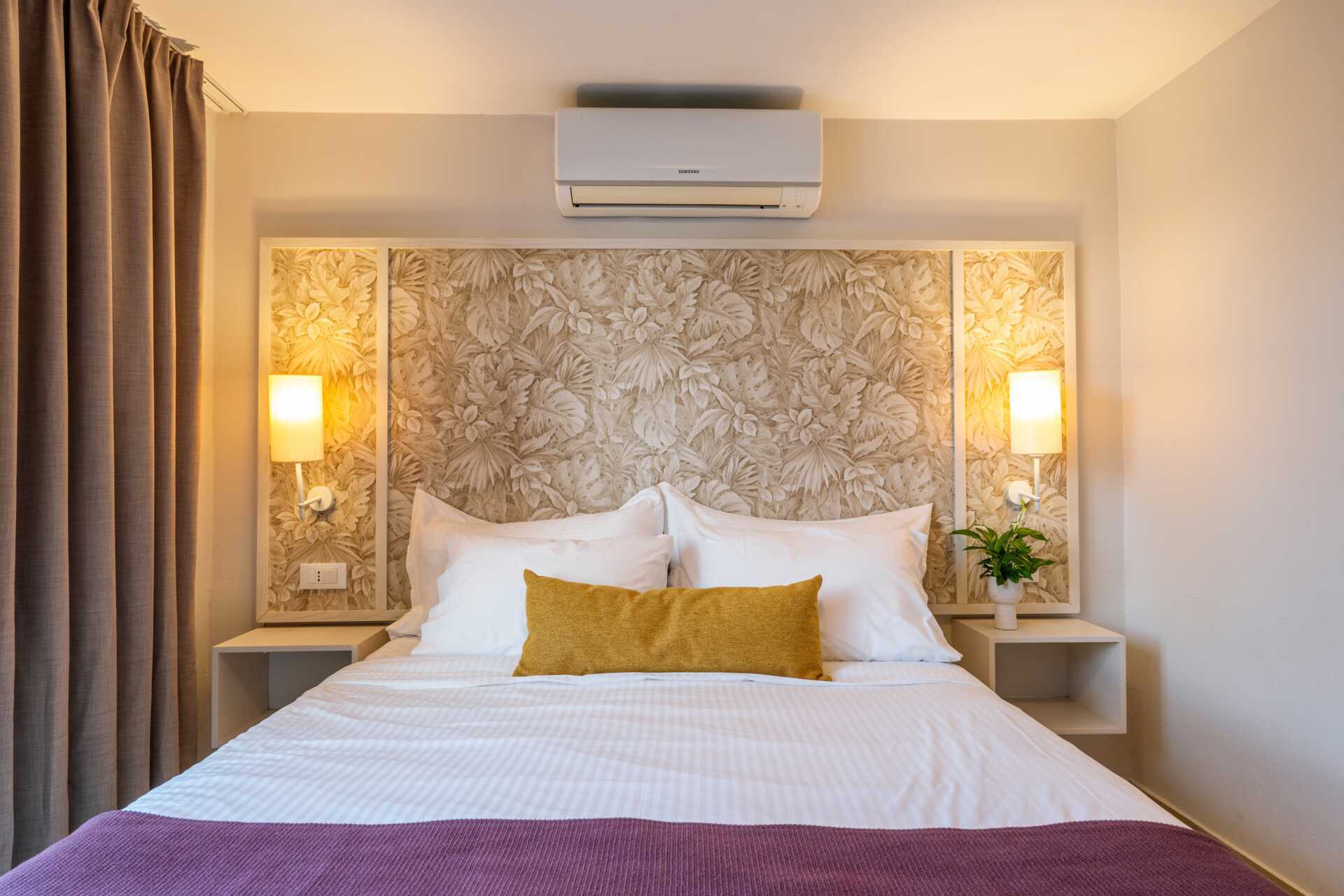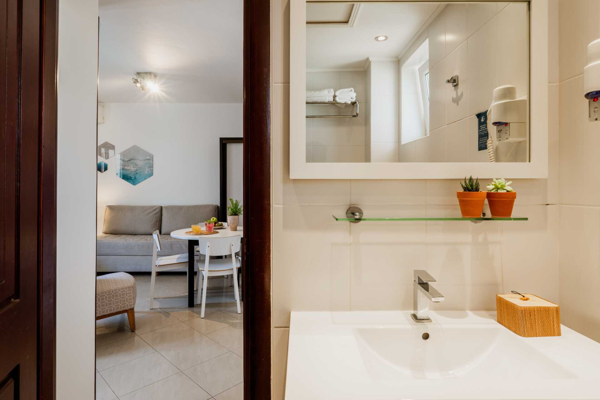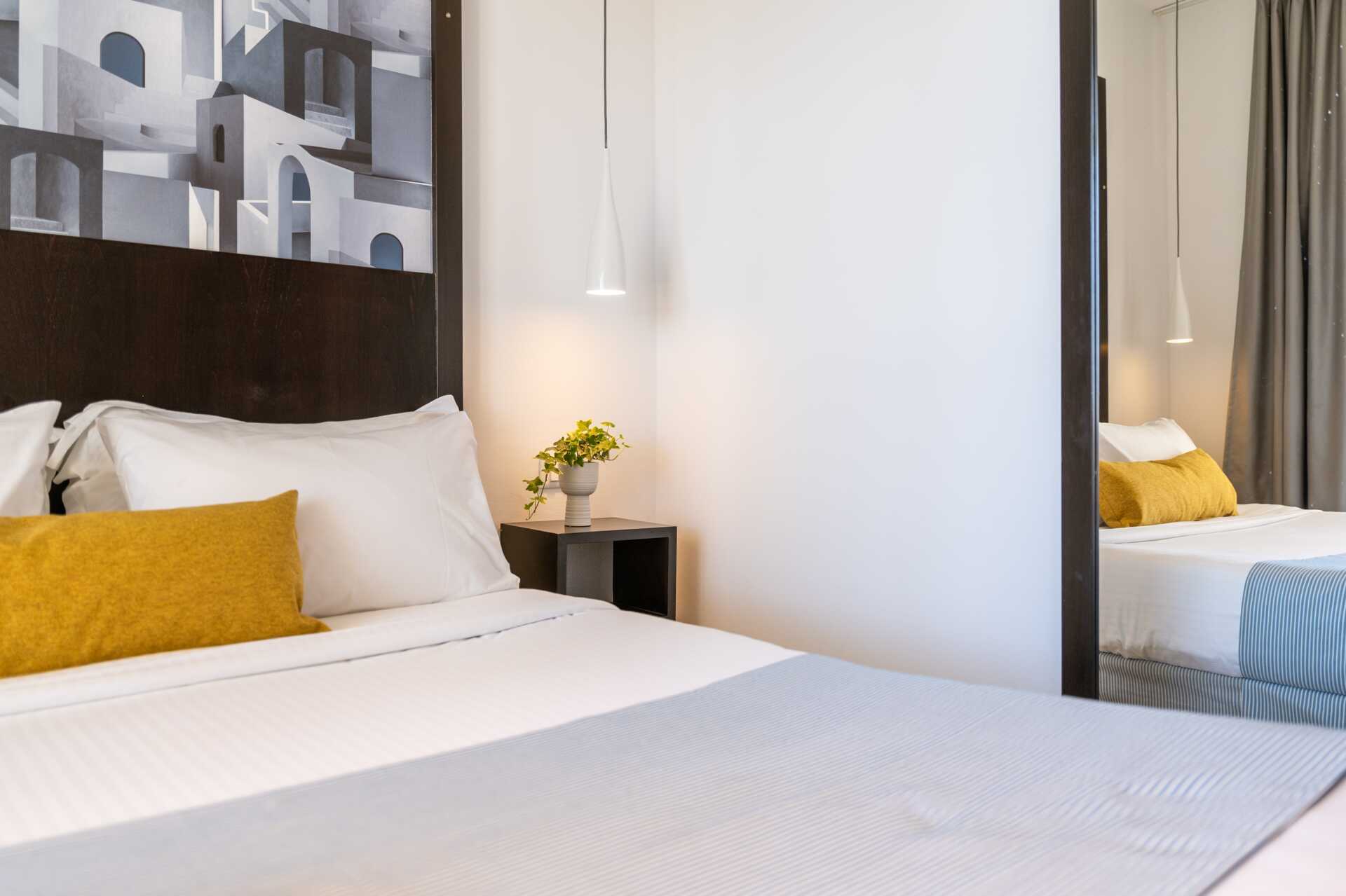 2-værelses lejlighed med balkon, nogle med havudsigt eller med delvis havudsigt. Lejlighederne er beliggende i Aphrodite-delen af hotellet tættere på havet. Værelserne for op til tre personer er ca. 28-30 kvm, værelserne for op til fire personer på omkring 30-40 kvm. Soveværelse og kombineret opholdsrum/minikøkken. En dobbeltseng. Mulighed for ekstra opredning i sovesofa. Minikøkken med køleskab, kogeplader, kaffemaskine, el-kedel, brødrister og enkelt køkkenudstyr. Gratis wifi, aircondition og deponering. Tv med internationale kanaler. Hårtørrer. Badeværelse med bruser og toilet. Rengøring 6 gange om ugen.