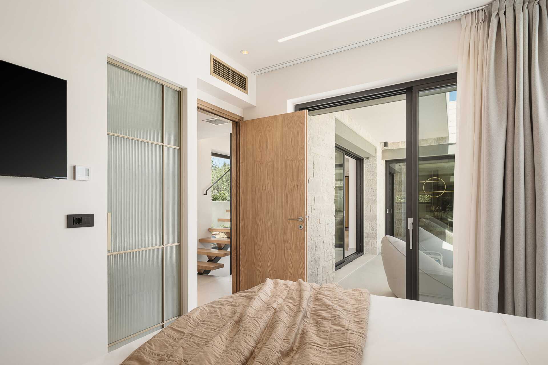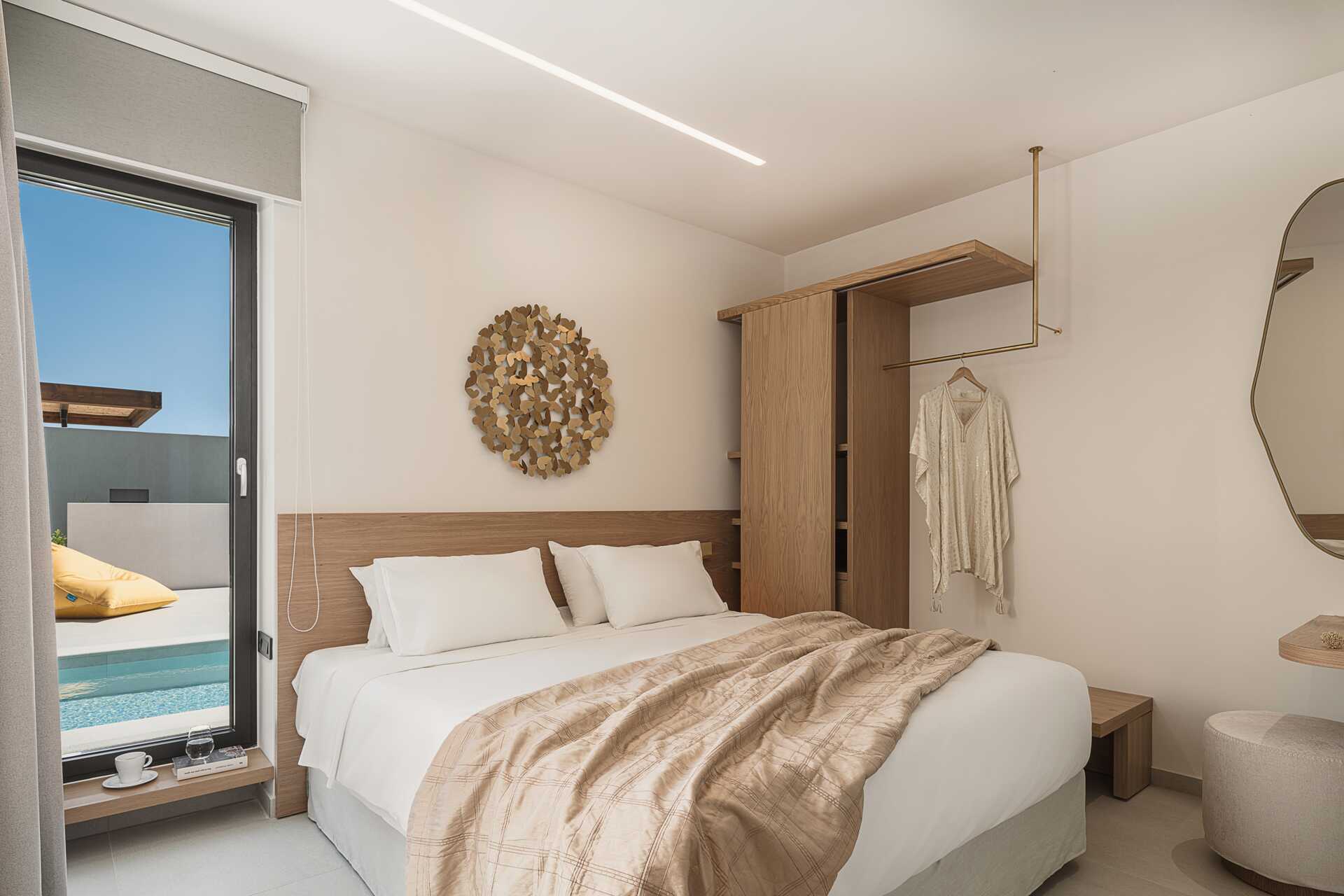 På entréetagen er der desuden to soveværelser og hvert soveværelse er udstyret med Tv med Smart-tv og internationale kanaler, badeværelse med bruser og toilet samt åbent klædeskab. Et soveværelse med dobbeltseng og et soveværelse med to enkeltsenge. Ovenpå er der et større soveværelse med dobbeltseng, badeværelse med bruser og toilet samt smart-tv og internationale kanaler. Der er også en stor møbleret terrasse med jacuzzi for op til fem personer.