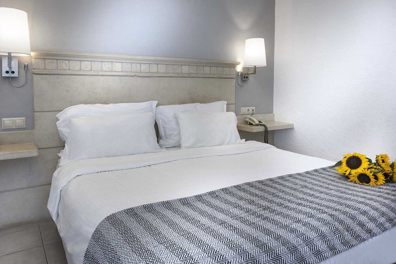 Dobbeltværelse med balkon. To enkeltsenge eller en dobbeltseng. Mulighed for ekstra opredning i enkeltseng eller i sovesofa. Gratis wifi og aircondition. Deponering mod betaling. Køleskab. El-kedel. Tv med internationale kanaler. Hårtørrer. Badeværelse med badekar eller bruser samt toilet. Rengøring 7 gange om ugen.