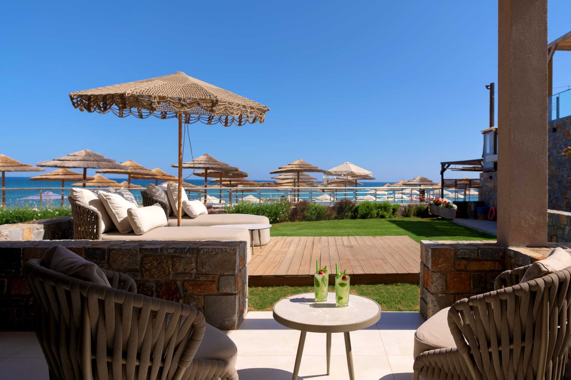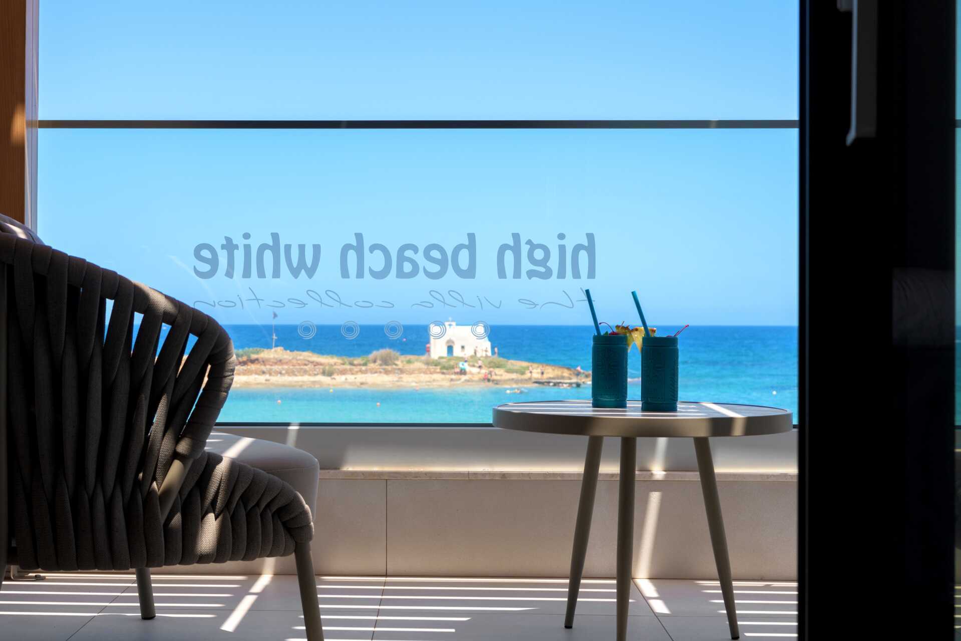 Junior-suite Seafront og balkon eller terrasse. Værelserne ligger ved stranden og har en fantastisk havudsigt. En dobbeltseng. Gratis wifi, deponering og aircondition. Køleskab - en flaske vand indgår og genopfyldes hver dag. El-kedel og kaffe/te. Nespresso-maskine, kapsler indgår. Tv med internationale kanaler. Badekåber og tøfler. Badeværelse med badekar og seperat bruser samt toilet. Rengøring 7 gange om ugen.