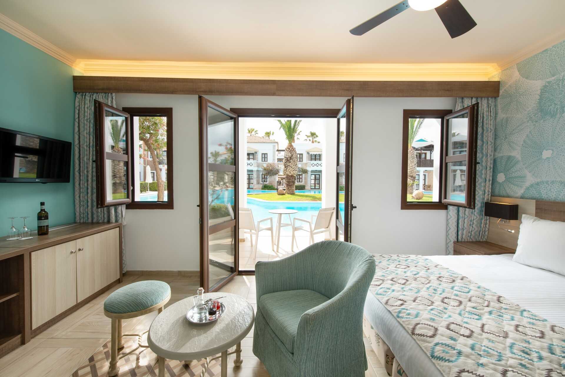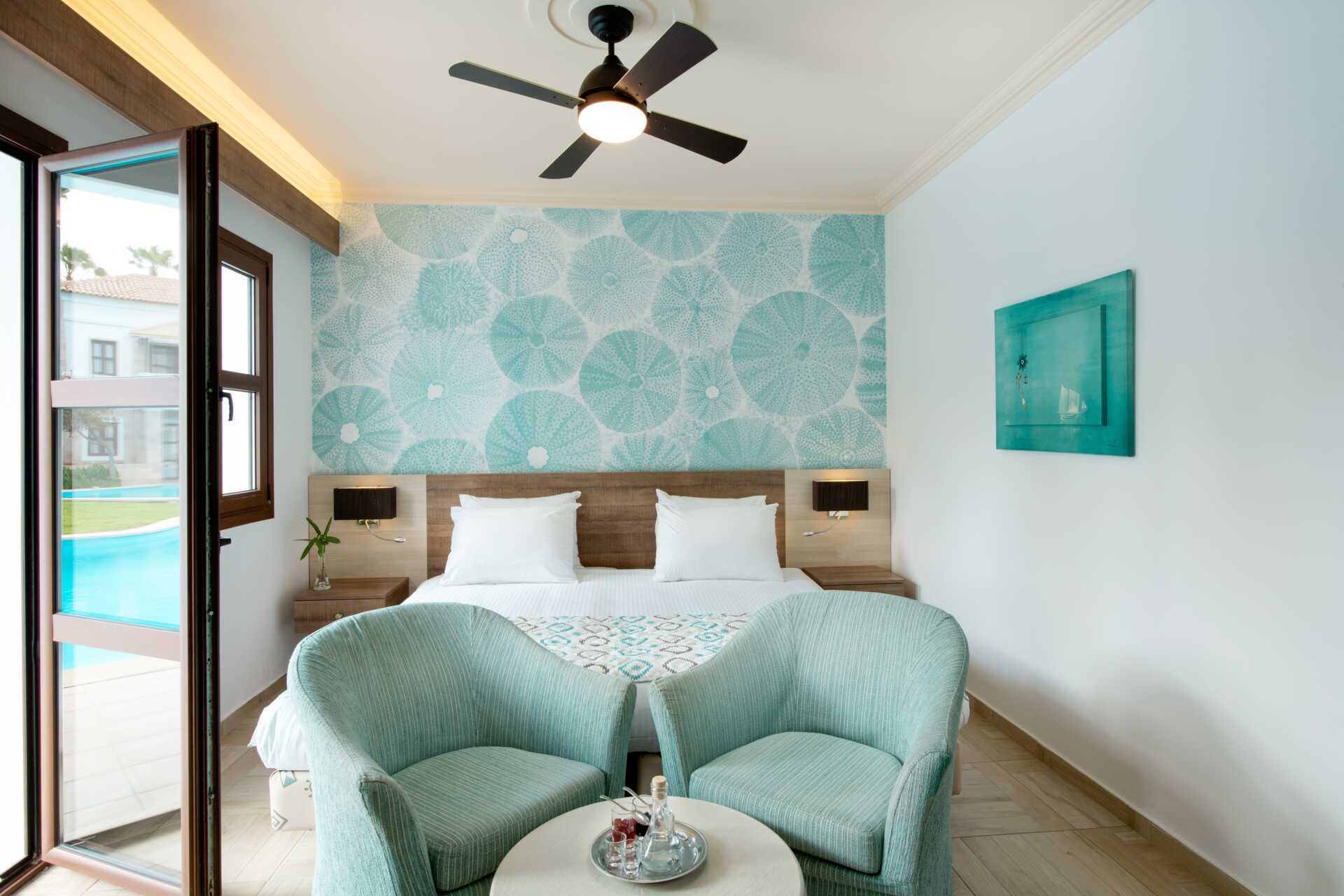 Dobbeltværelse i bungalow med balkon eller terrasse, nogle med havudsigt eller delvis havudsigt. En dobbeltseng eller to enkeltsenge. Mulighed for ekstra opredning i sovesofa. Gratis wifi, aircondition og deponering. Minibar, en flaske vin er inkluderet ved ankomst og læskedrikke, der genopfyldes hver dag. El-kedel og kaffe/te. Tv med internationale kanaler. Badekåber og tøfler. Hårtørrer. Badeværelse med badekar eller bruser samt toilet. Rengøring 7 gange om ugen. Børn under to år tæller med i det maksimale antal personer på værelset.