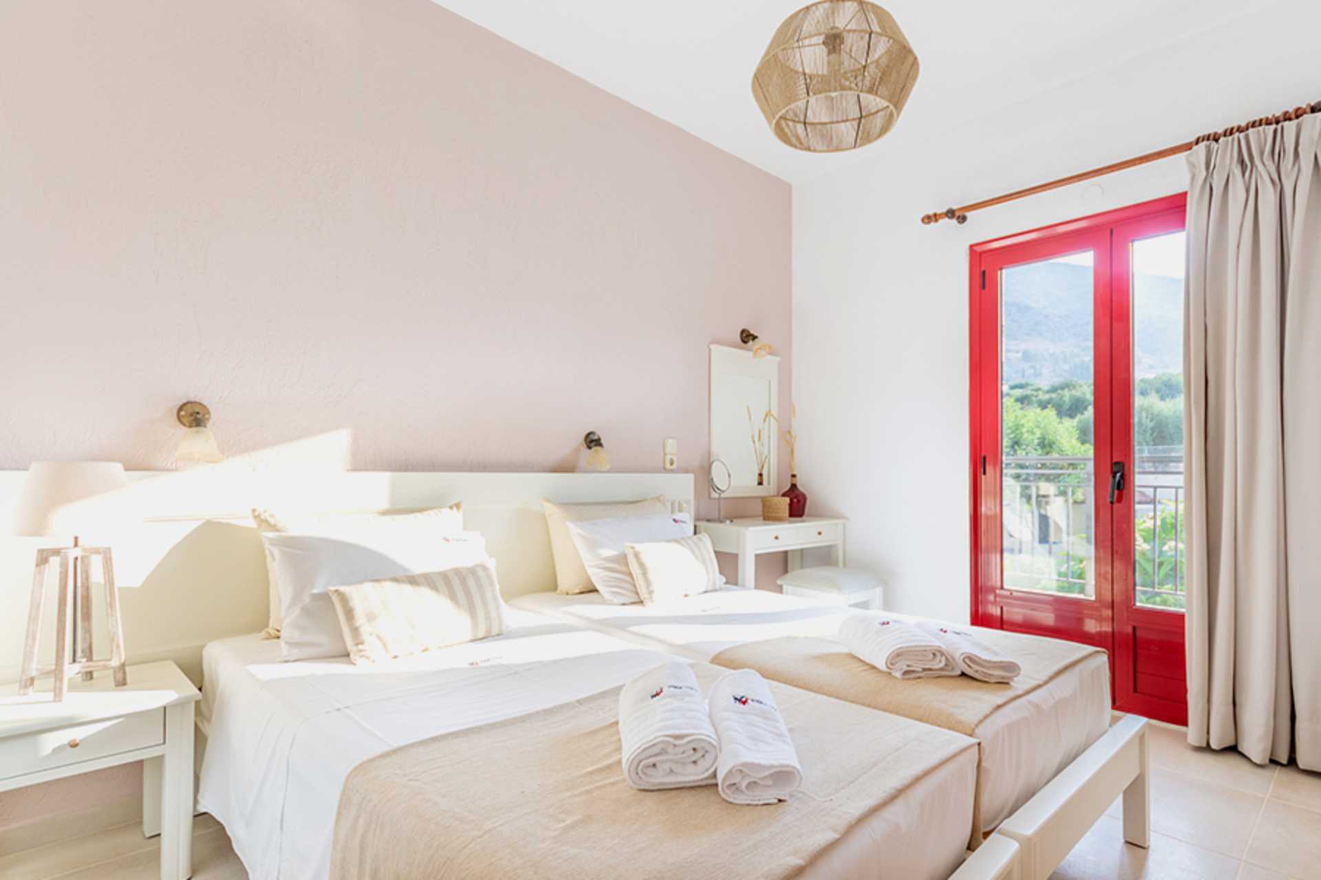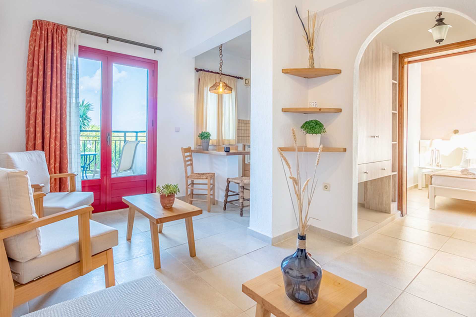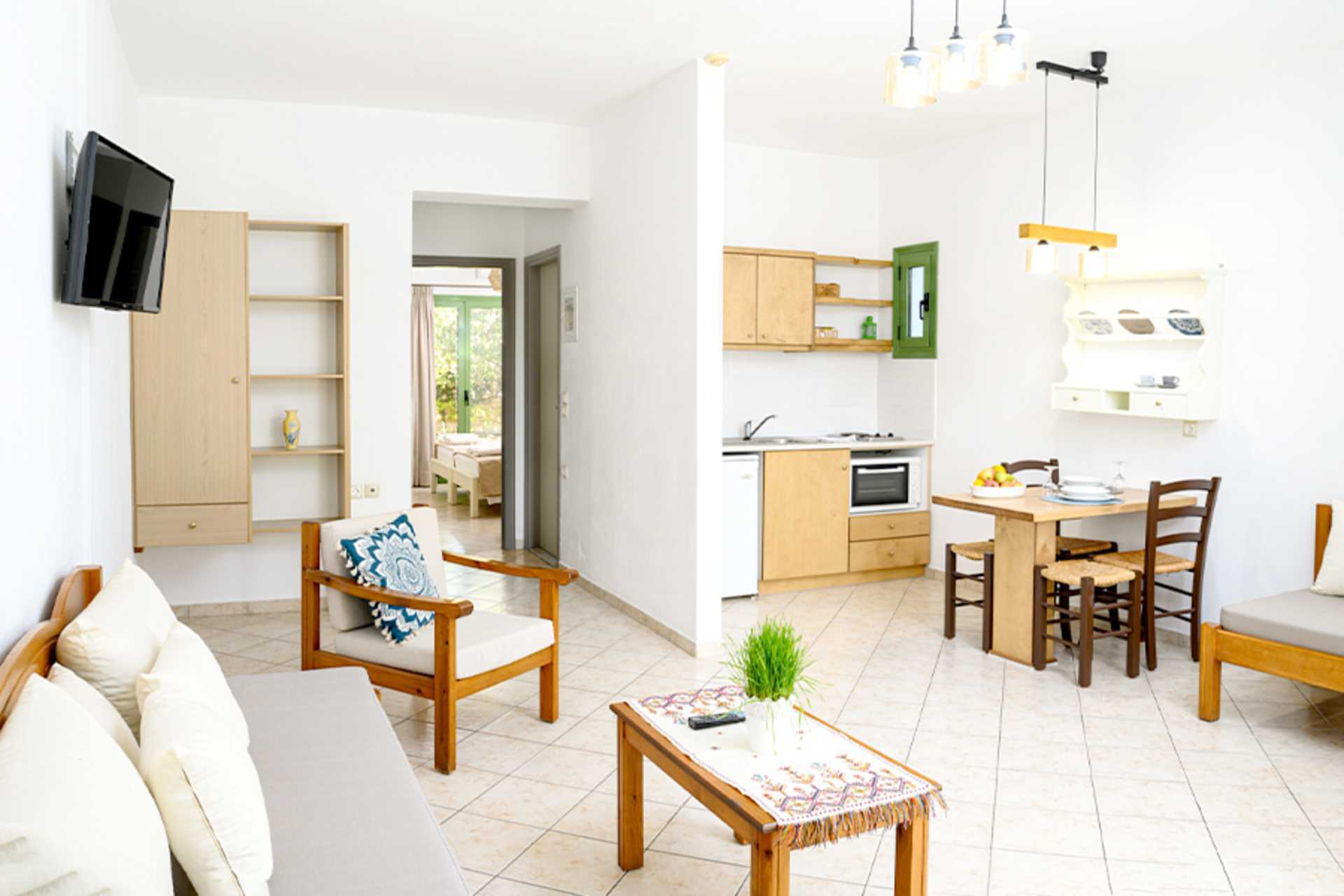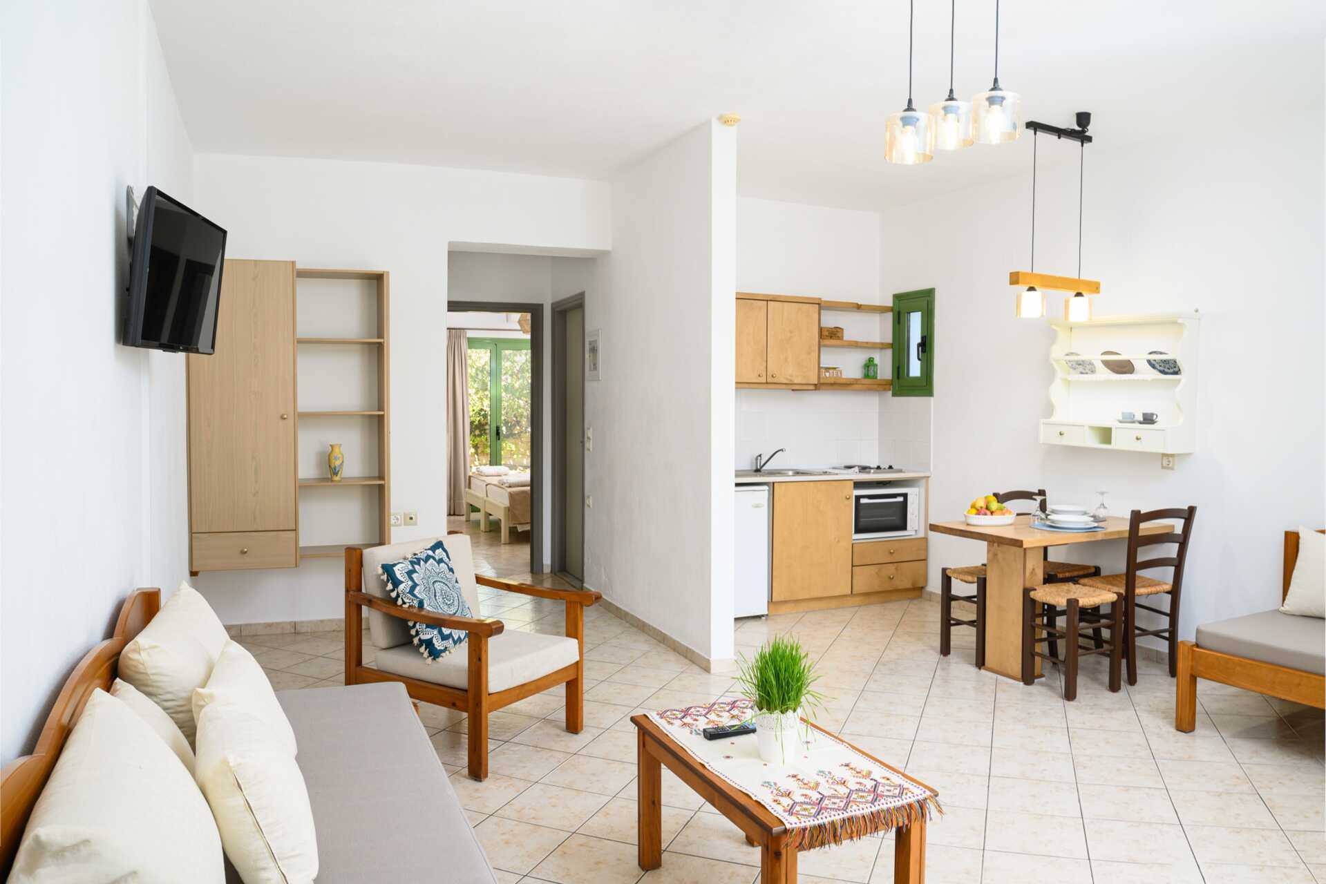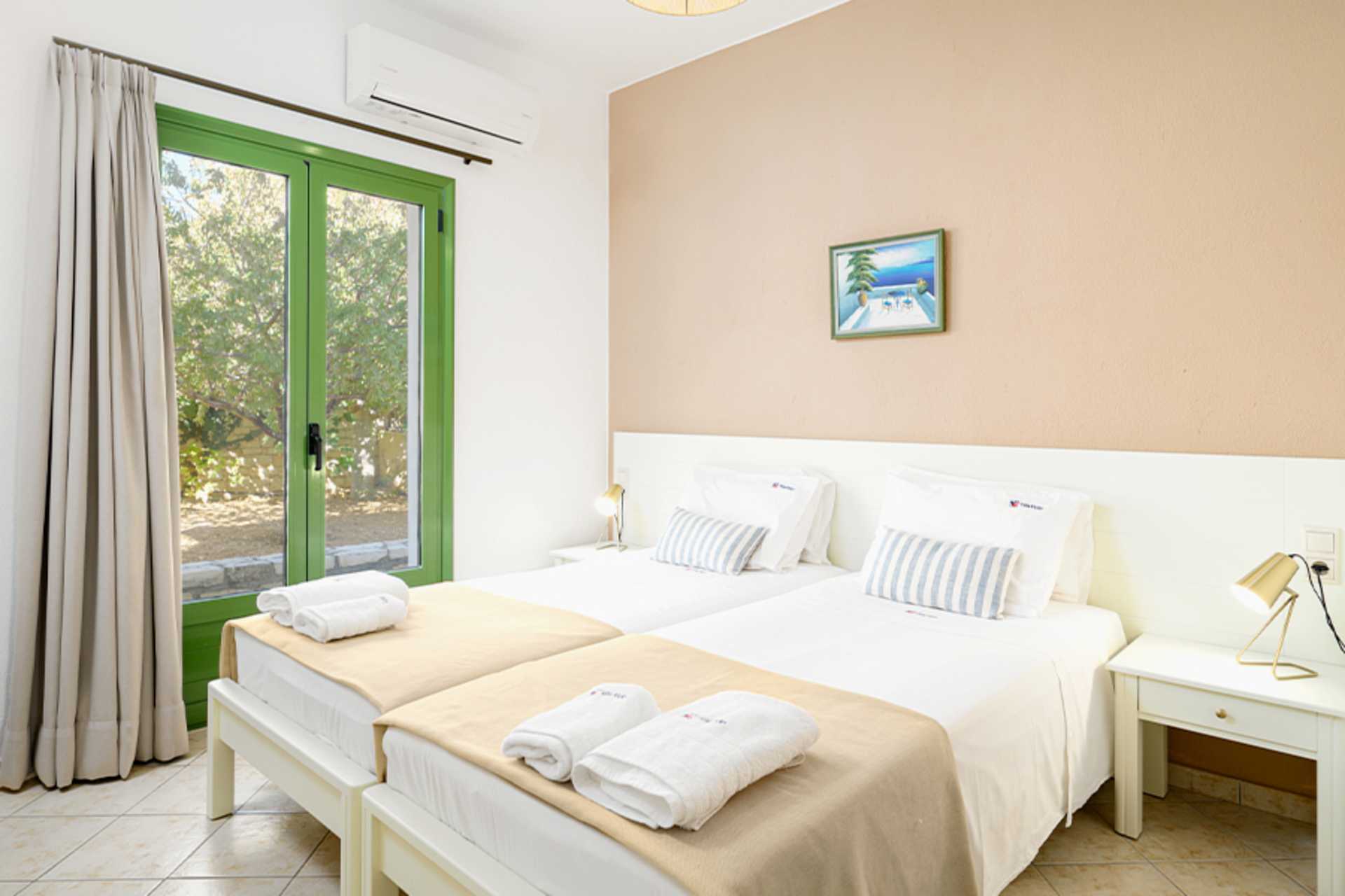 2-værelses lejligheder i forskellige størrelser med balkon eller terrasse. Et soveværelse og et kombineret opholdsrum med minikøkken. To enkeltsenge. Mulighed for ekstra opredninger i sovesofa. Minikøkken med kogeplader, køleskab, el-kedel, kaffemaskine og brødrister samt enkelt køkkenudstyr. Gratis wifi og deponering. Aircondition mod betaling. Hårtørrer. Badeværelse med bruser og toilet. Rengøring 6 gange om ugen.