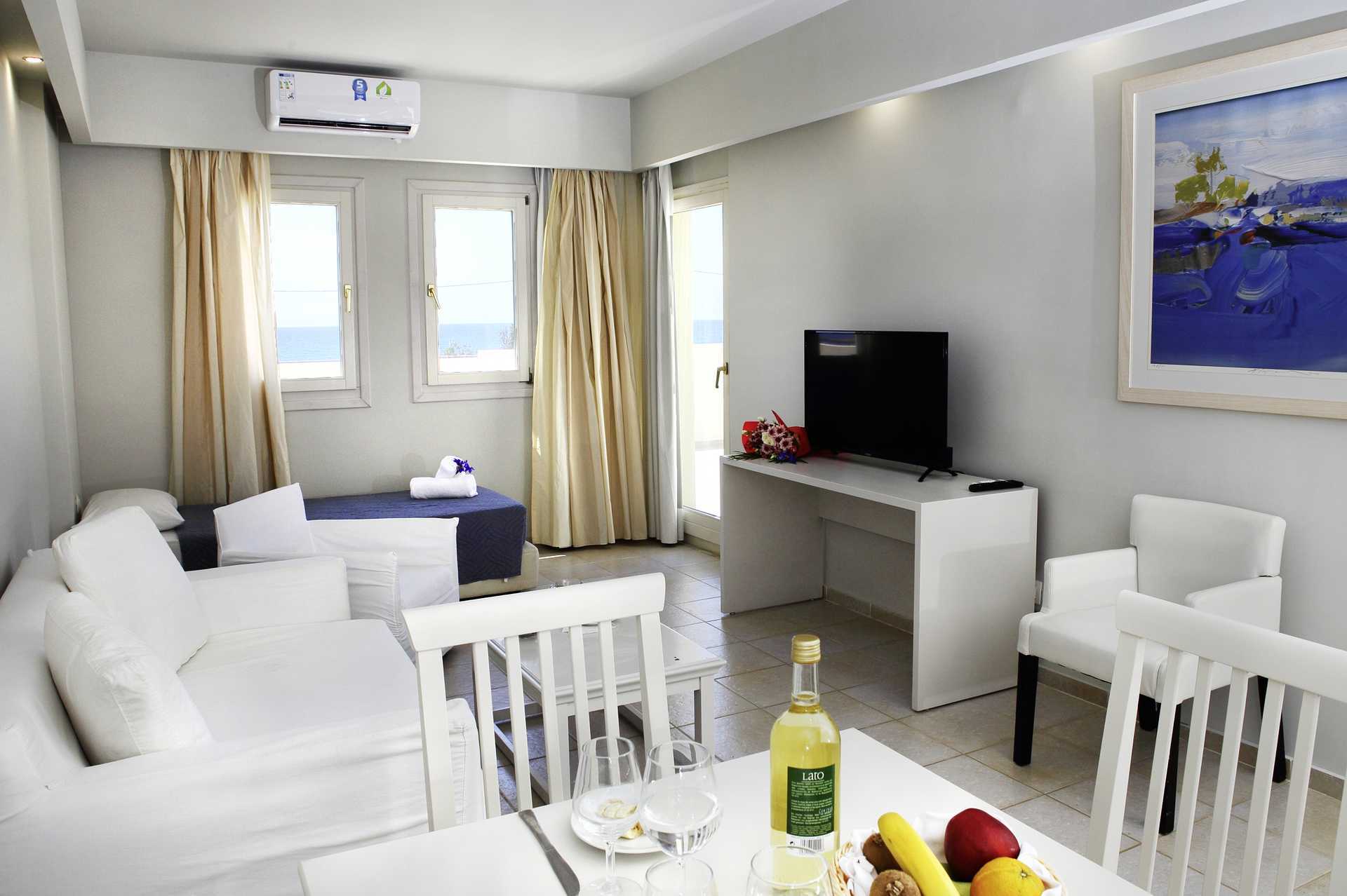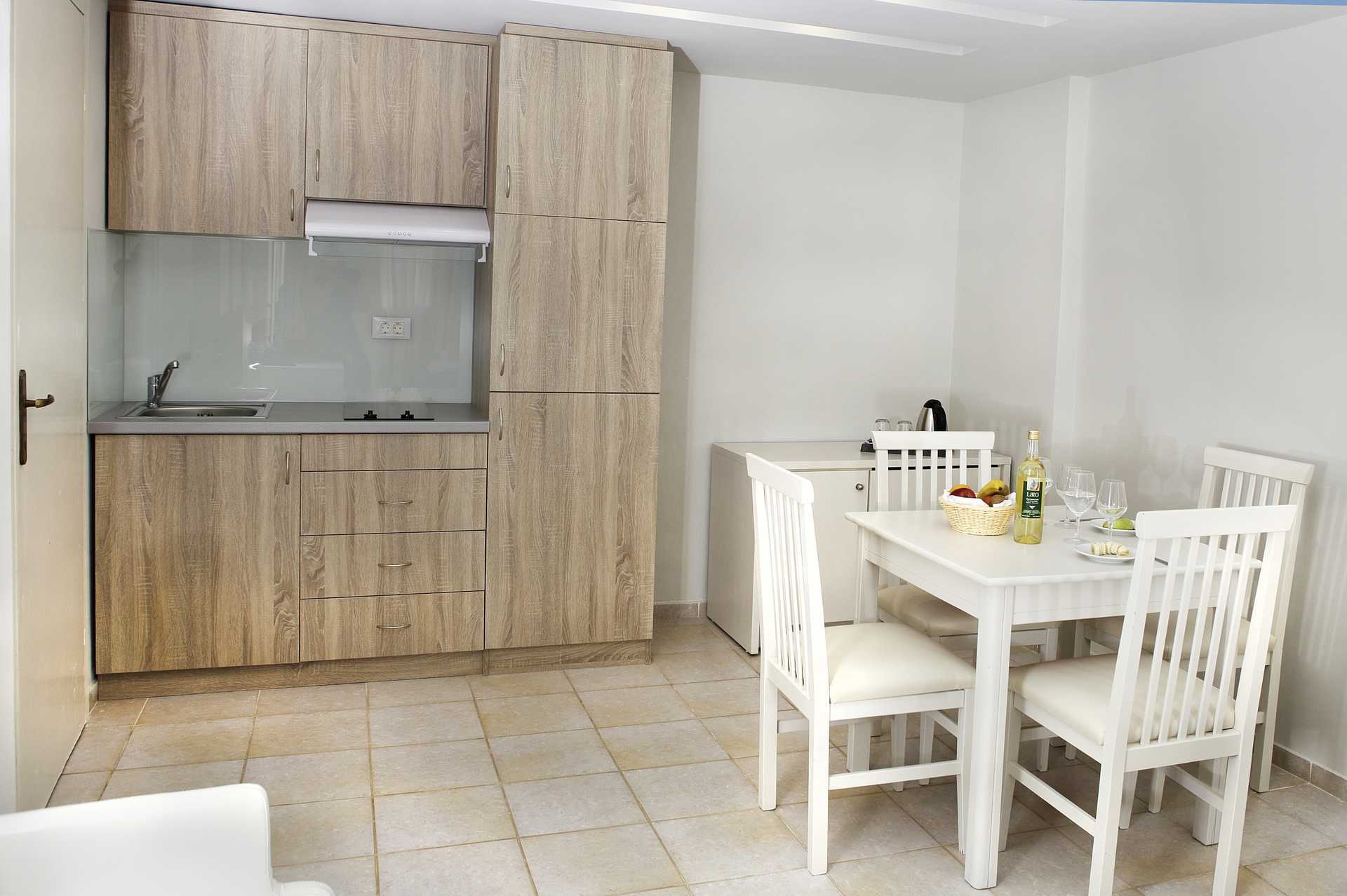 2-værelses lejligheder med balkon, nogle med delvis havudsigt. Balkonerne varierer i størrelse. Et soveværelse og kombineret opholdsrum og minikøkken. To enkeltsenge. Mulighed for ekstraopredning i sovesofa. Minikøkken med kogeplader, køleskab og enkelt køkkenudstyr. Mikroovn kan lånes mod forespørgsel (begrænset antal). El-kedel samt kaffe og te. Gratis wifi, aircondition og deponering. Hårtørrer. Tv med internationale kanaler. Hårtørrer. Bad/brus og toilet. Rengøring 7 gange om ugen.