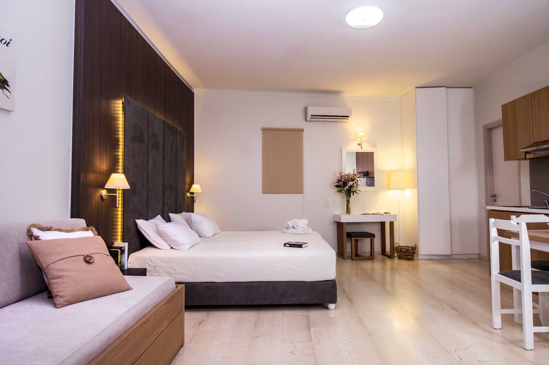 1-værelses lejligheder med balkon, terrasse, fælles terrasse eller uden udeplads. Terrasserne varierer i størrelse. Lejlighederne på nederste etage er tilgængelige via trapper. Kombineret soveværelse og minikøkken. En dobbeltseng eller to enkeltsenge. Mulighed for ekstra opredning i sovesofa. Minikøkken med kogeplader, køleskab, kaffemaskine, sandwichgrill, el-kedel og enkelt køkkenudstyr. Gratis wifi. Aircondition og deponering mod betaling. Tv med internationale kanaler. Hårtørrer. Badeværelse med badekar eller bruser og toilet. Rengøring 6 gange om ugen.