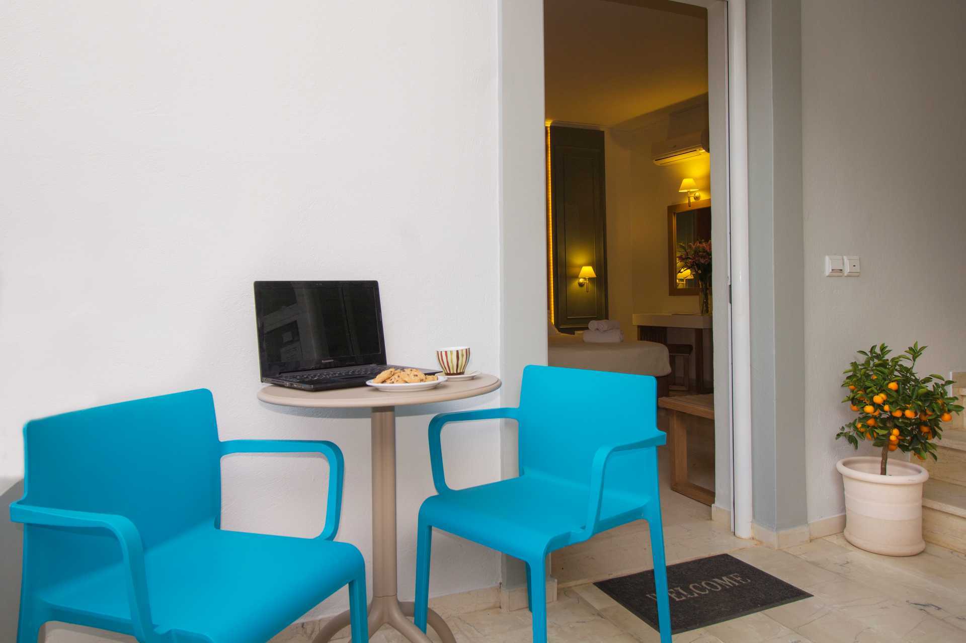 1-værelses lejlighed med balkon, terrasse, delt udeplads eller uden udeplads. Udepladserne varierer i størrelse. Lejlighederne på den nederste etage er tilgængelige via trapper. Kombineret soveværelse og minikøkken. En dobbeltseng eller to enkeltsenge. Mulighed for ekstra opredning i sovesofa. Minikøkken med kogeplader, køleskab, kaffemaskine, sandwichgrill, el-kedel og enkelt køkkenudstyr. Gratis wifi. Aircondition og deponering mod betaling. Tv med internationale kanaler. Hårtørrer. Badeværelse med badekar eller bruser samt toilet. Rengøring 6 gange om ugen.