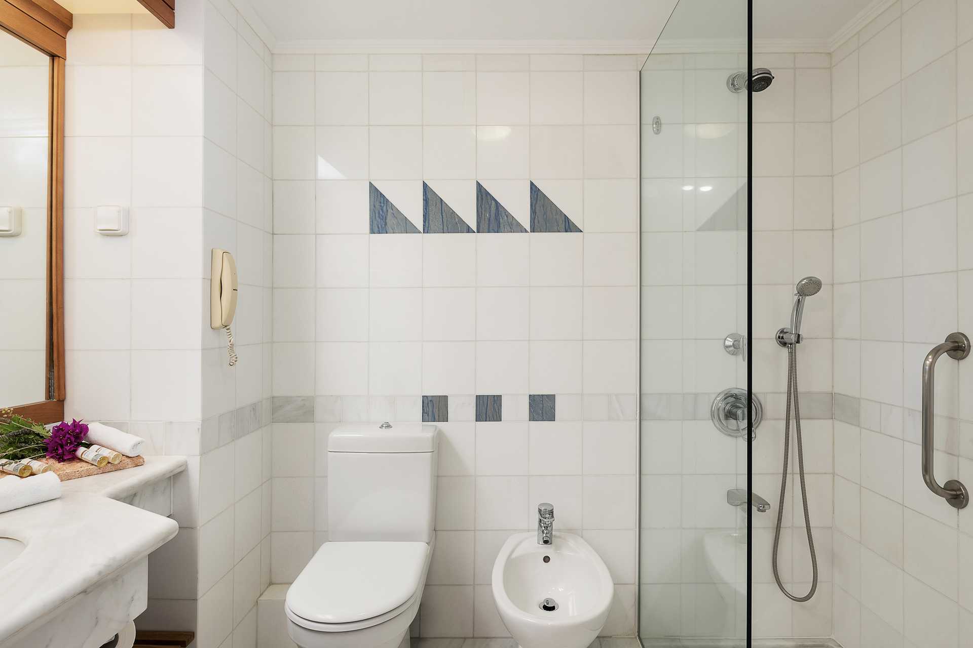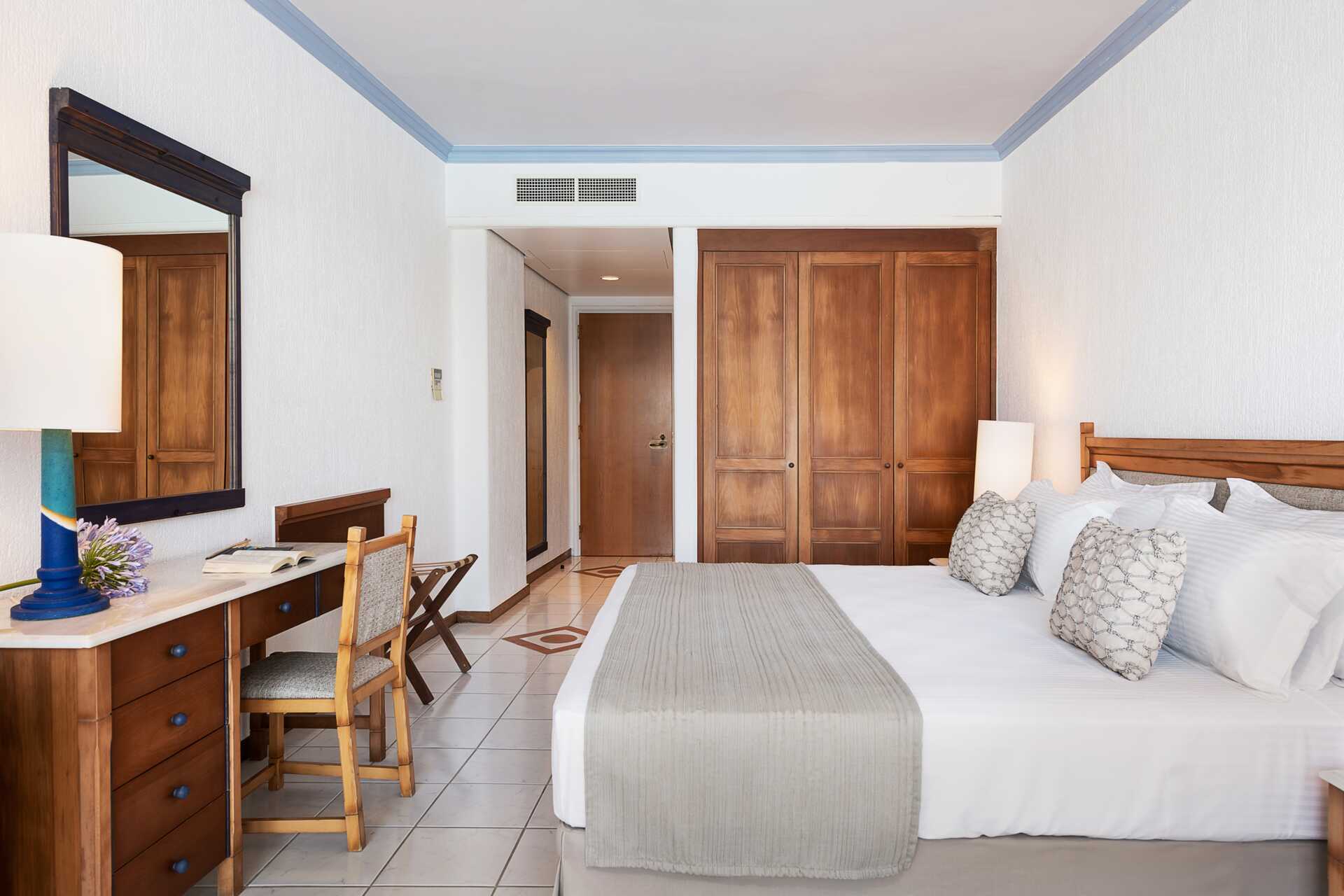 Dobbeltværelser med balkon eller terrasse, nogle balkoner med havudsigt eller begrænset havudsigt. En stor dobbeltseng. Mulighed for en ekstra opredning i en konvertibel lænestol, sovesofa eller enkeltseng. I nogle rum bliver der trængsel, når der bor tre personer. Gratis wifi, aircondition og deponering. Minibar mod betaling. El-kedel og kaffe/te. Tv med internationale kanaler. Hårtørrer. Badeværelse med badekar eller bruser og toilet. Rengøring 7 gange om ugen.