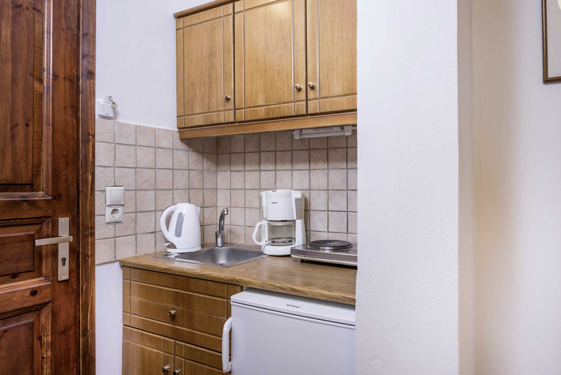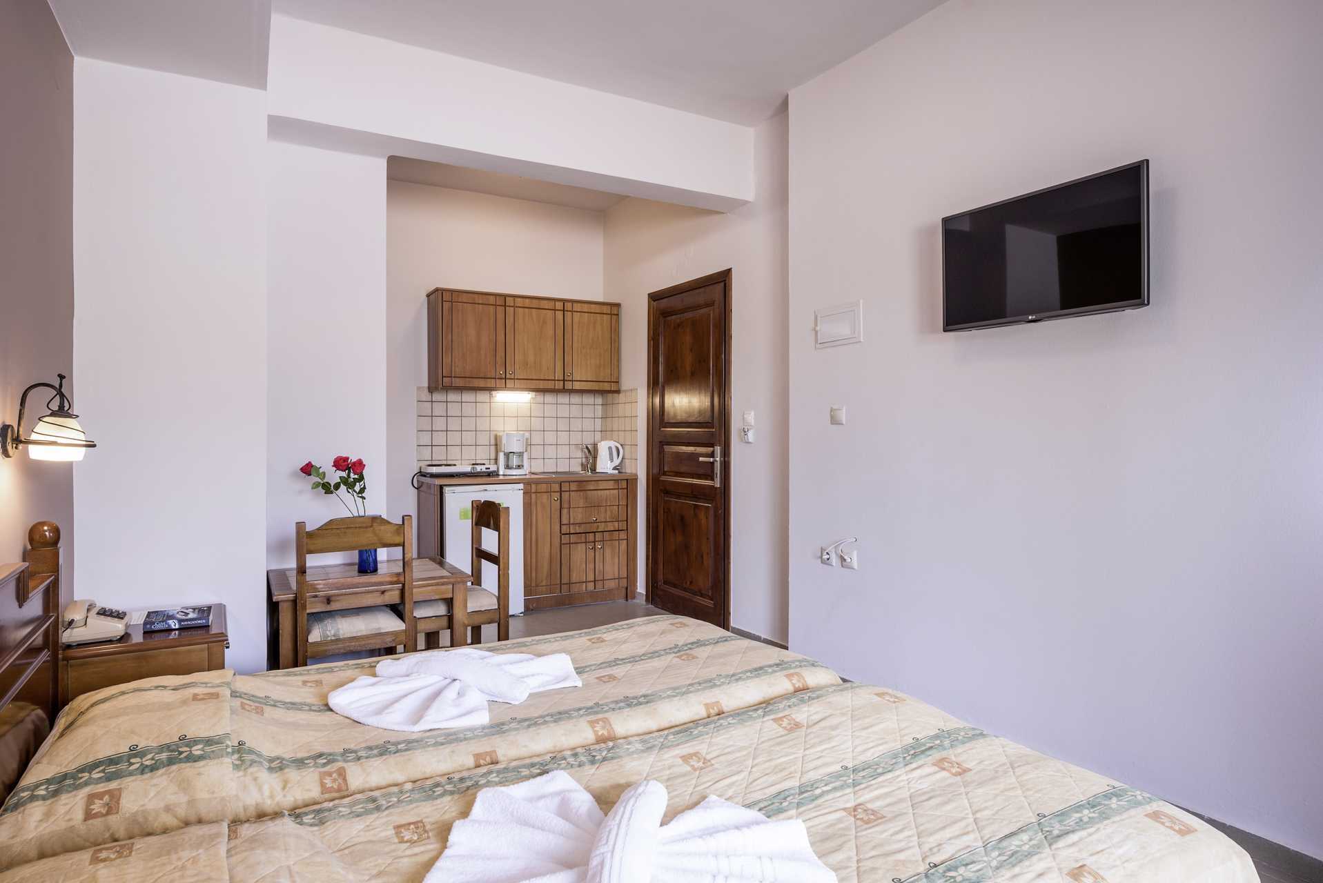 1-værelses lejlighed med balkon eller balkon i stueplan, nogle med havudsigt eller begrænset havudsigt. Myggenet i balkondørene. Kombineret soveværelse med opholdsrum og minikøkken. To enkeltsenge. Mulighed for ekstra opredning i sovesofa. Minikøkken med kogeplader, køleskab, kaffemaskine, el-kedel og enkelt køkkenudstyr. Spiseplads på balkonen. Gratis wifi, aircondition og deponering. Tv med internationale kanaler. Badeværelse med bruser og toilet. Rengøring 6 gange om ugen.