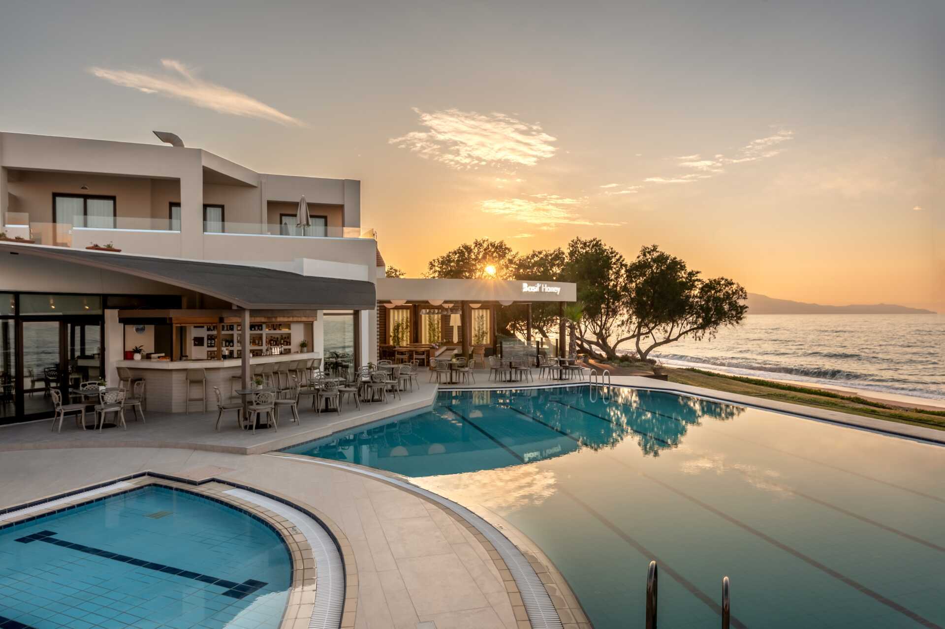 Hvis du lander i Chania Lufthavn (CHQ), er den effektive køretid til hotellet i Platanias ca. 50 minutter. Hvis du lander i Heraklion Lufthavn (HER), er den effektive køretid til hotellet i Platanias ca. 2 timer og 15 minutter. Rejsetiden varierer afhængigt af ruten, antallet af hotelstop og trafikken i området. Transfers er normalt ikke ledsaget af Apollos personale.