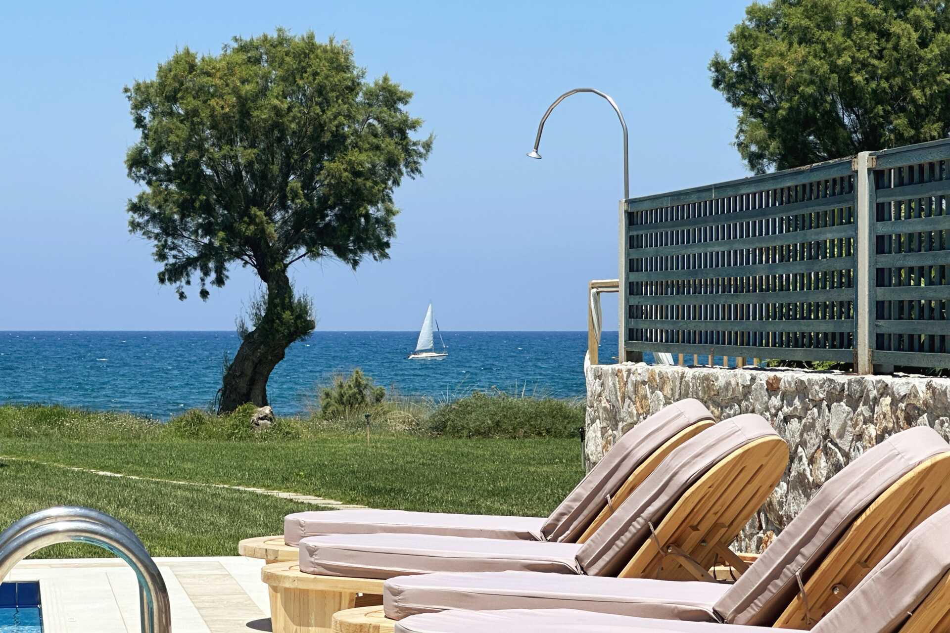 2-værelses lejlighed i etplansvillaer med privat pool og delvis havudsigt fra terrassen i stueplan. På terrassen er der spiseplads og solstole, og hver lejlighed har sin egen balisseng på græsplænen. Soveværelse og kombineret opholdsrum/minikøkken. En dobbeltseng. Mulighed for ekstra opredninger i fold ud-lænestole. Veludstyret køkken med komfur og ovn, køleskab og fryser, opvaskemaskine, kaffemaskine, saftpresser, mikroovn og enkelt køkkenudstyr. El-kedel på forespørgsel. Gratis wifi, aircondition og deponering. Tv med internationale kanaler. Hårtørrer. Badeværelse med bruser og toilet. Rengøring 6 gange om ugen.