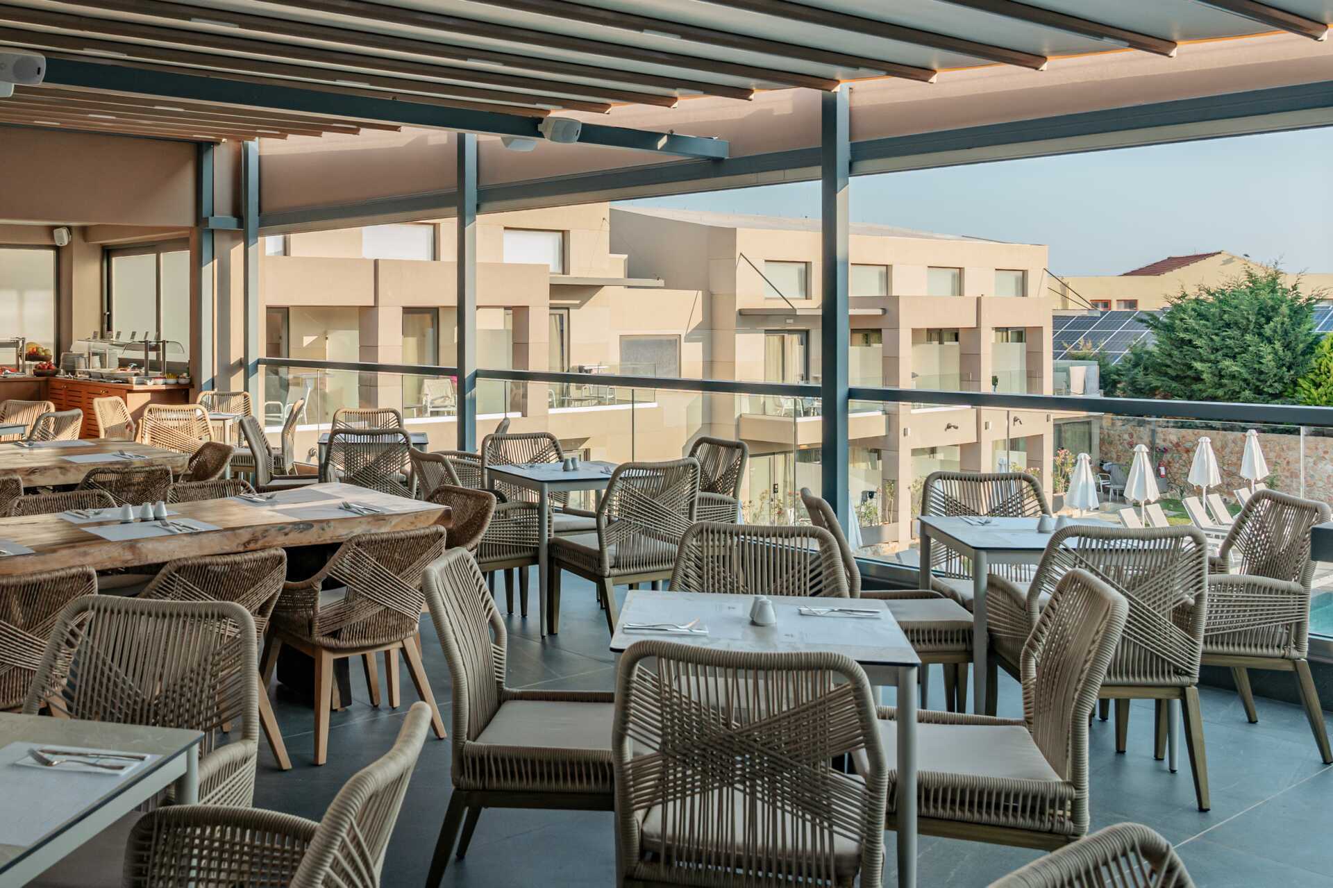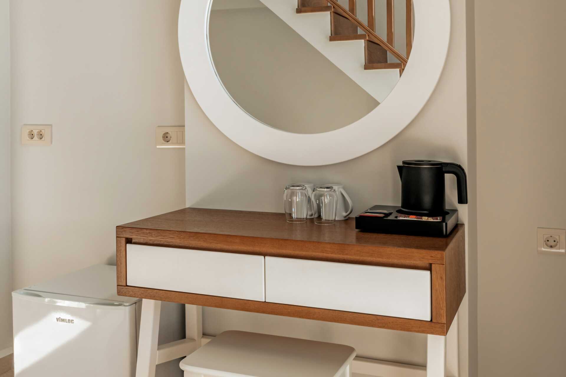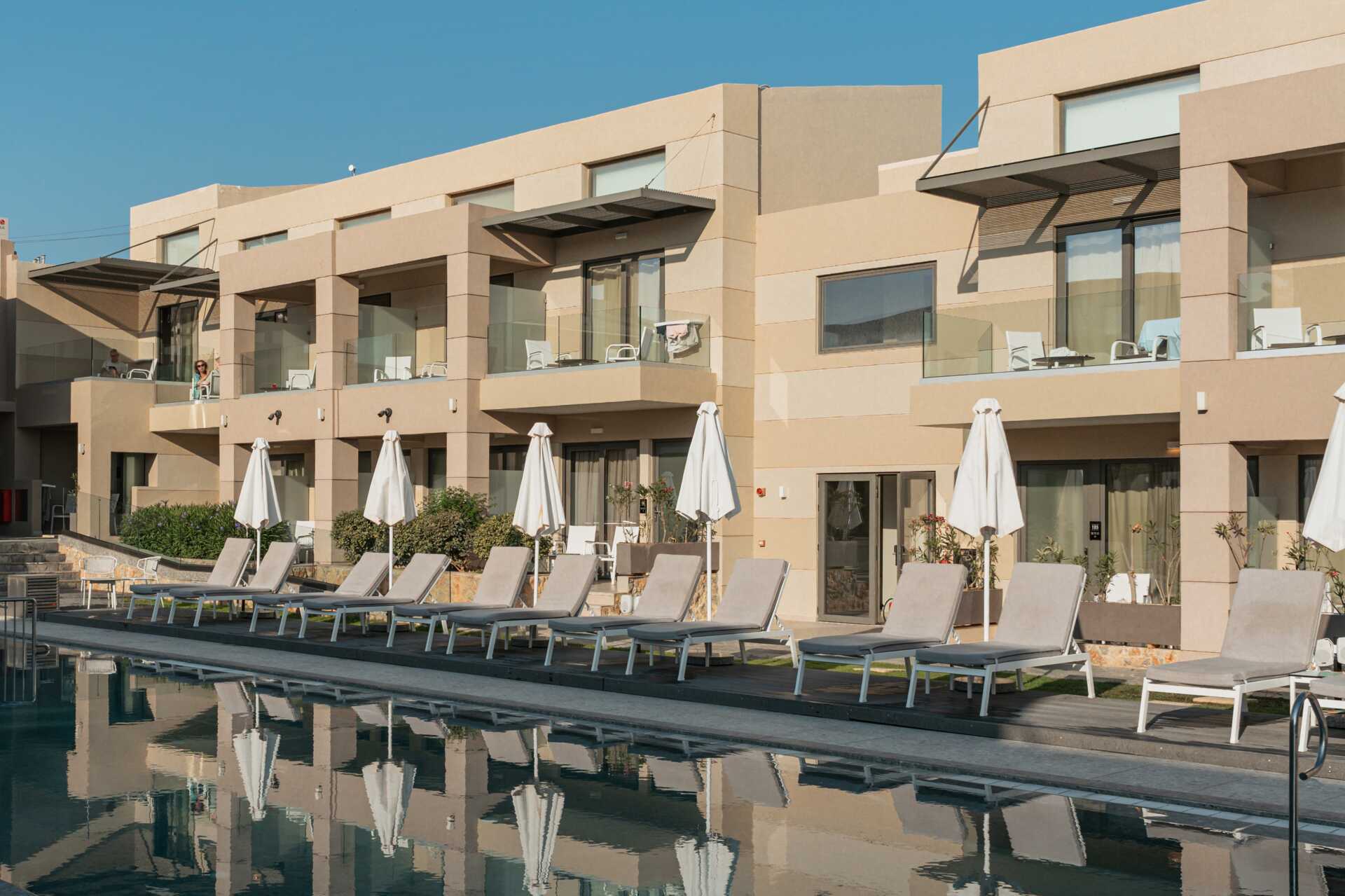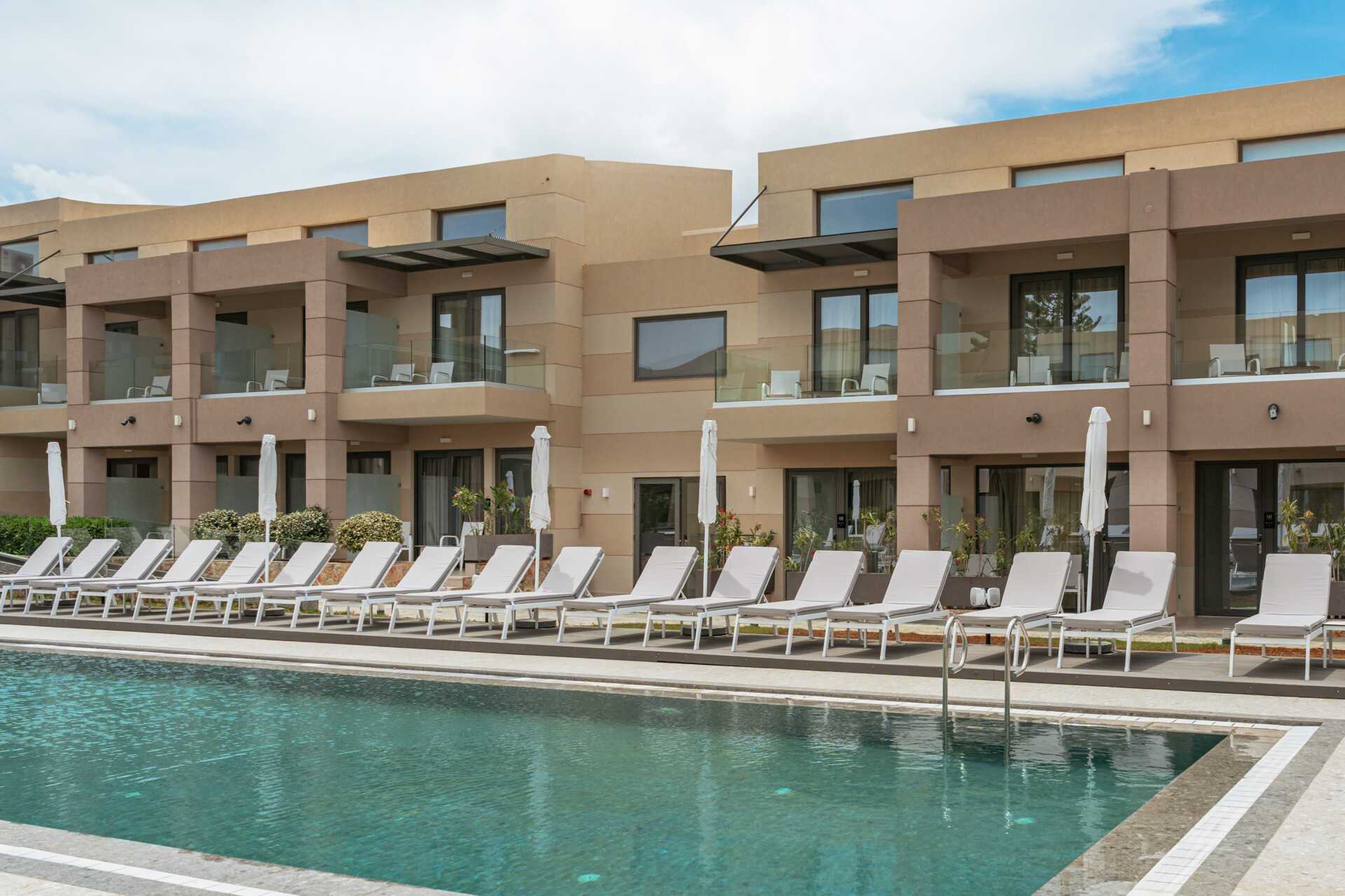 Dobbeltværelse i etage med balkon, nogle med havudsigt eller pooludsigt eller med stor balkon. Værelset har en åben planløsning. I stueetagen er der et badeværelse og et lille opholdsrum. Ovenpå er der hems med dobbeltseng eller to enkeltsenge. Gratis wifi, aircondition og deponering. Køleskab, der kan fyldes som minibar og er så mod betaling. El-kedel. Tv med internationale kanaler. Badeværelse med bruser og separat toilet. Rengøring 6 gange om ugen.