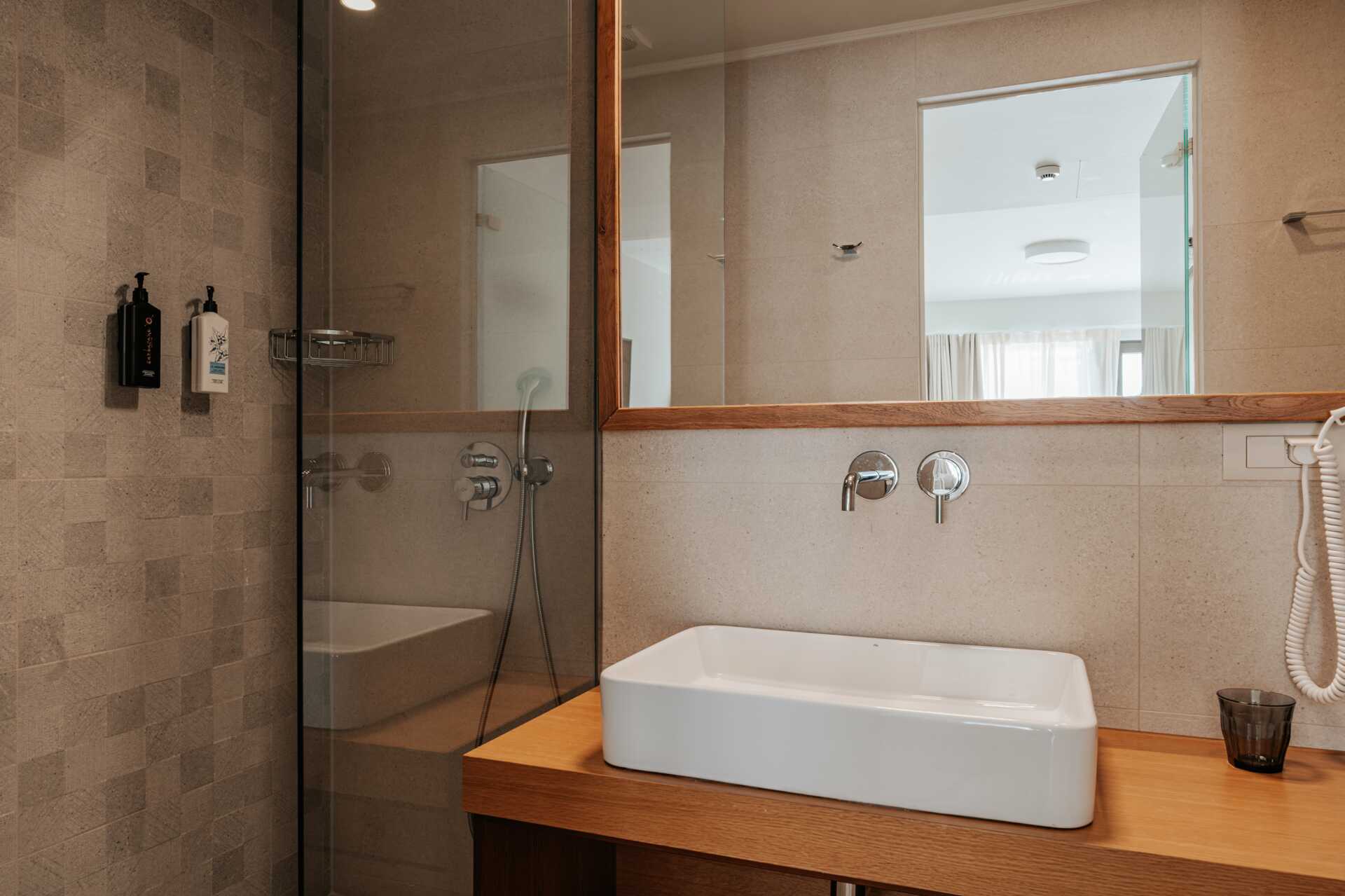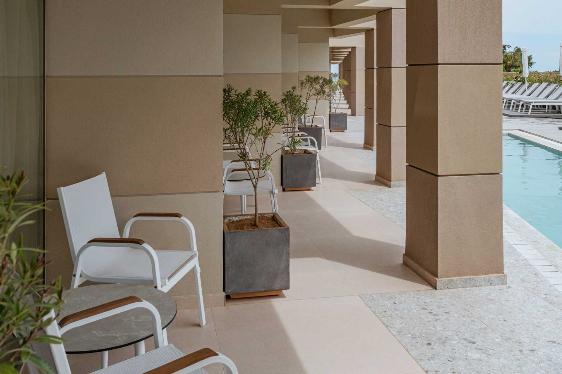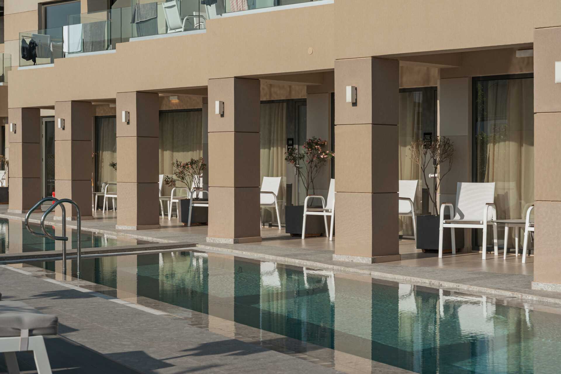Dobbeltværelse med udgang til delt pool. En dobbeltseng eller to enkeltsenge. I nogle værelser er der mulighed for en ekstra seng til en tredje person. Gratis wifi, aircondition og deponering. Køleskab, der kan fyldes som minibar mod betaling. El-kedel. Tv med internationale kanaler. Badeværelse med bruser og separat toilet. Rengøring 6 gange om ugen.
